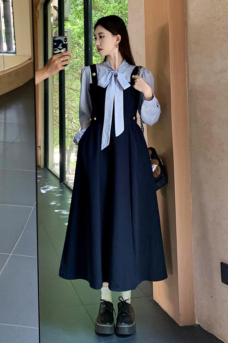 실사 빅 사이즈 여성 의류 레트로 드레스 봄 배 모양 몸 디자인 센스 슬립 드레스 지방 mm 슬림해 보이는 A라인 스커트