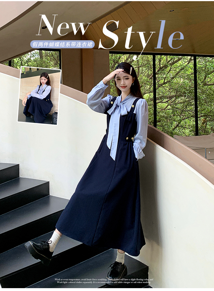실사 2026 봄 새로운 디자인 센스 연령 감소 슬림해 보이는 하이웨이스트 셔츠 페이크 레이어드 빅 사이즈 드레스 롱 스커트