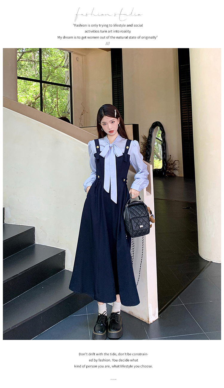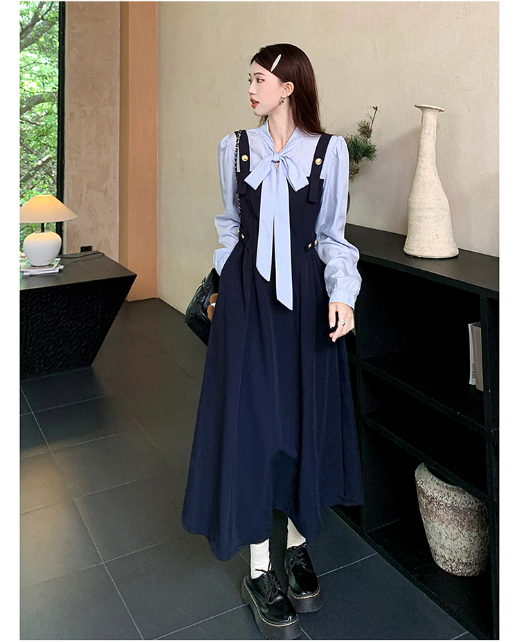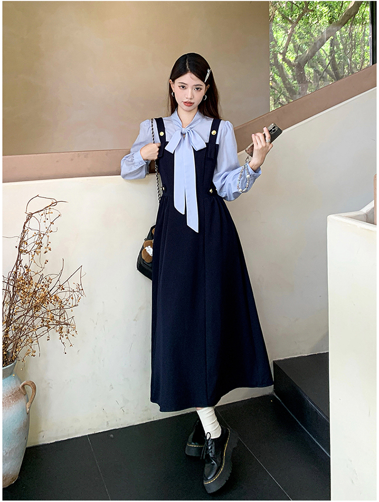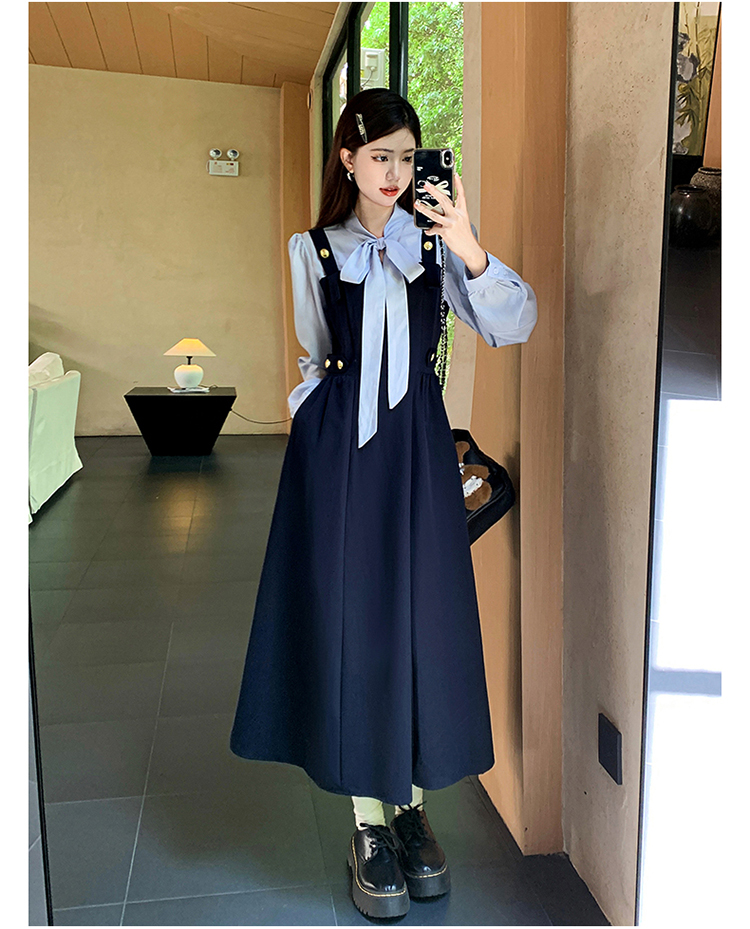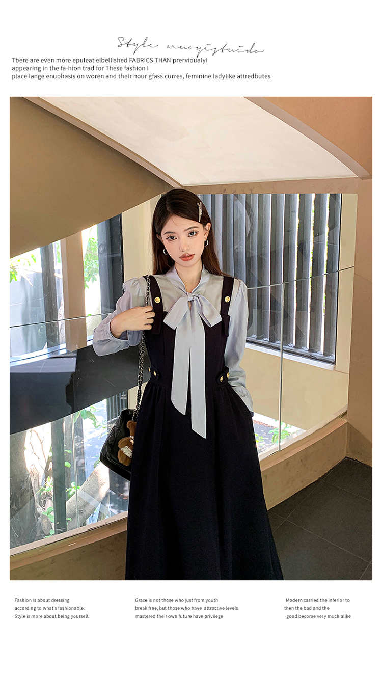 실사 가을 프랑스식 고급 센스 V넥 긴팔 드레스 2026 이른 봄 새로운 아름다운 치마 허리 수축 롱 스커트