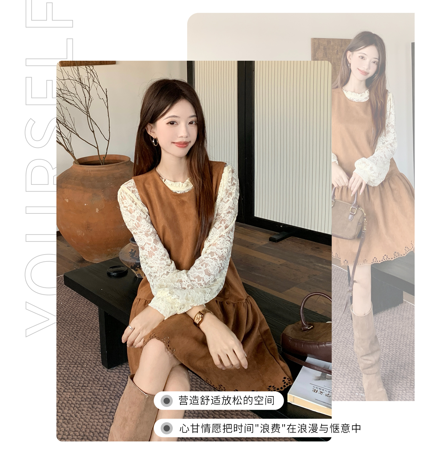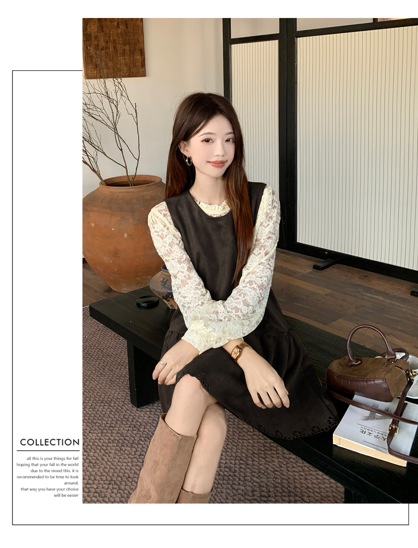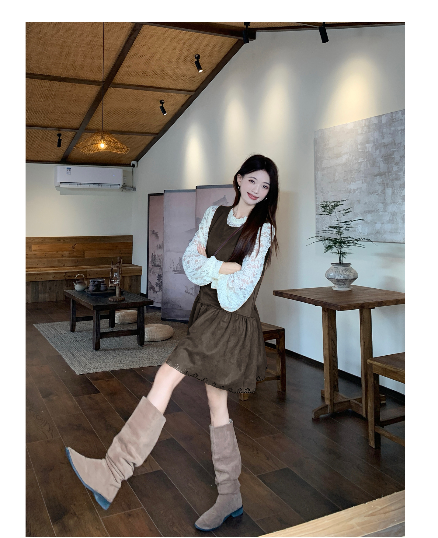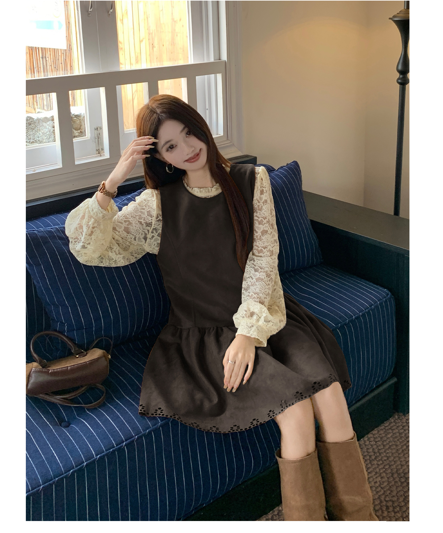 실사 작은 키 레이스 바지를 입는 셔츠 맨위 투피스 드레스 새로운 빅 사이즈 스웨이드 원단 조끼 스커트