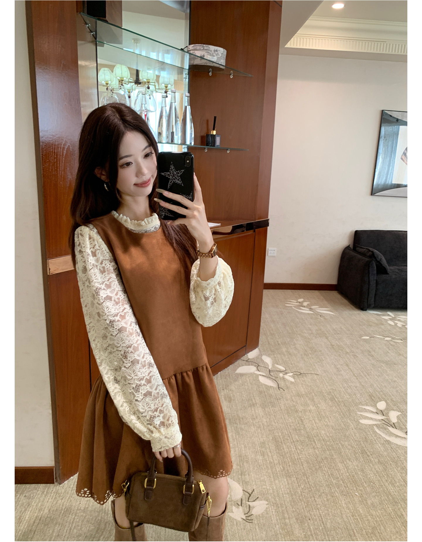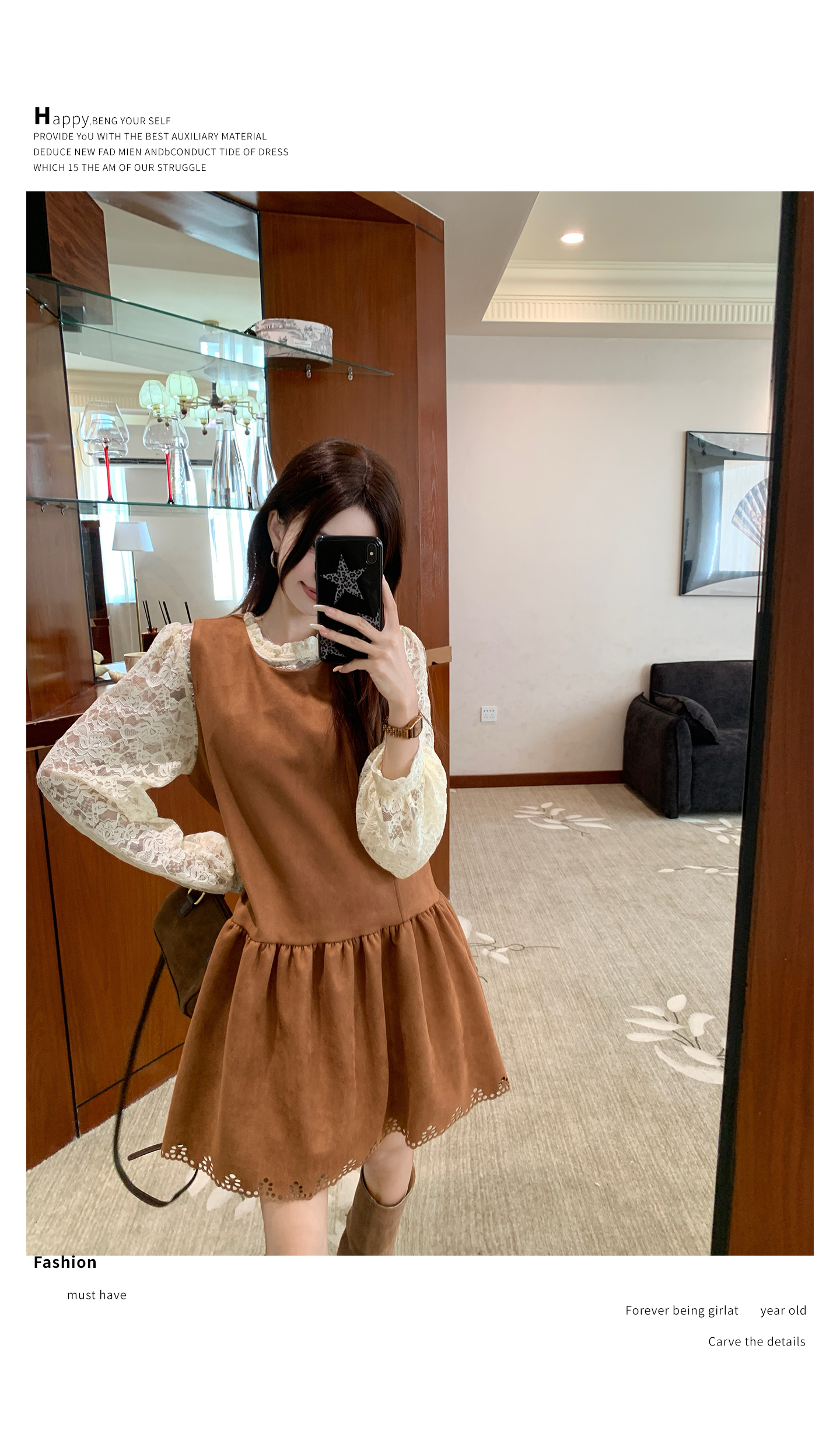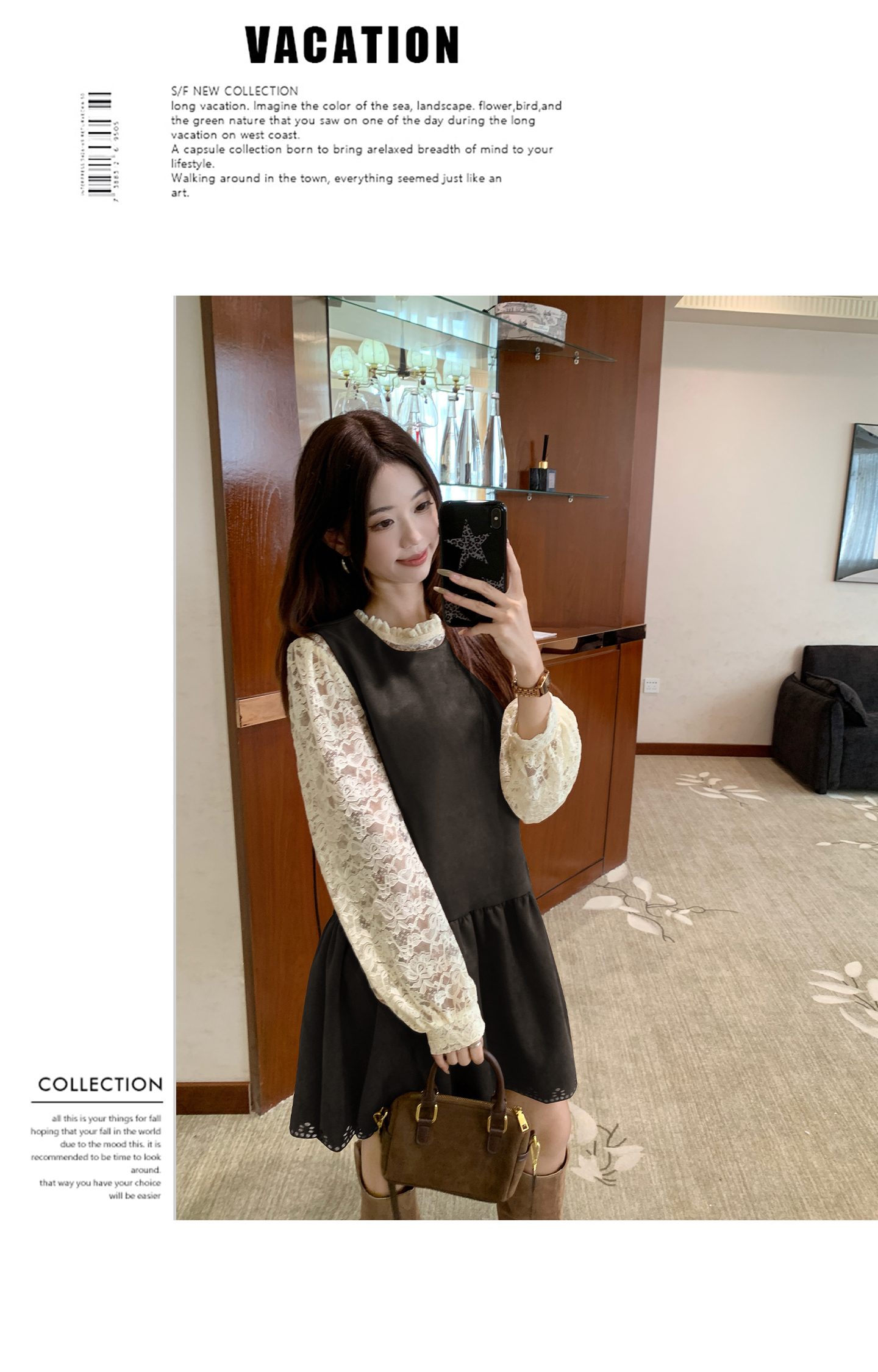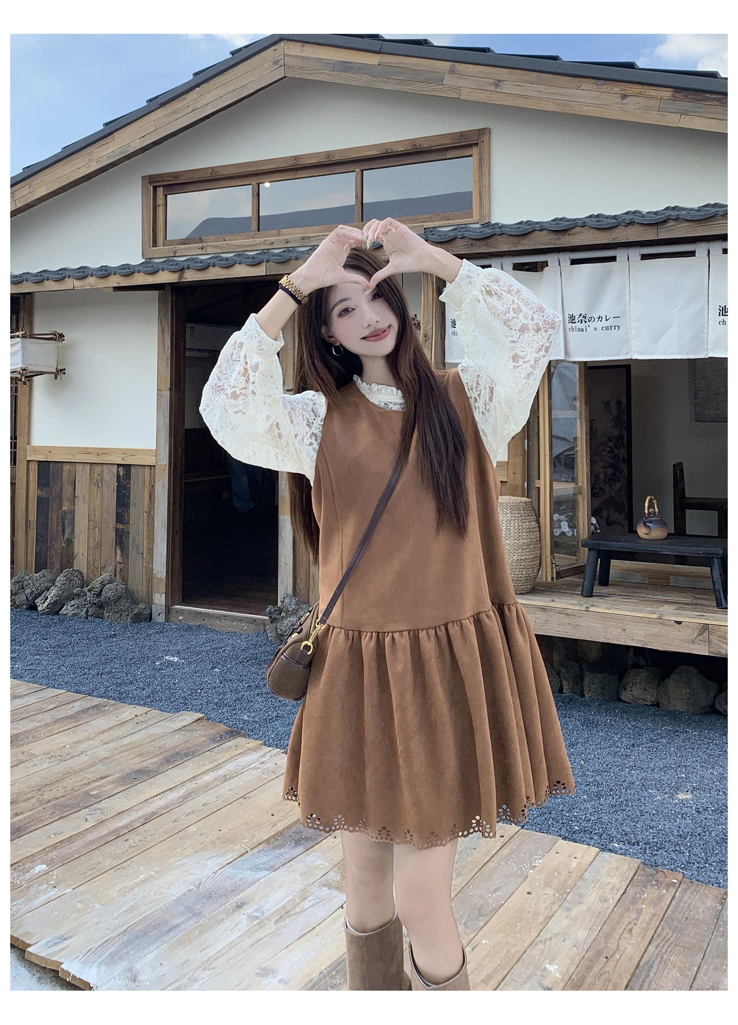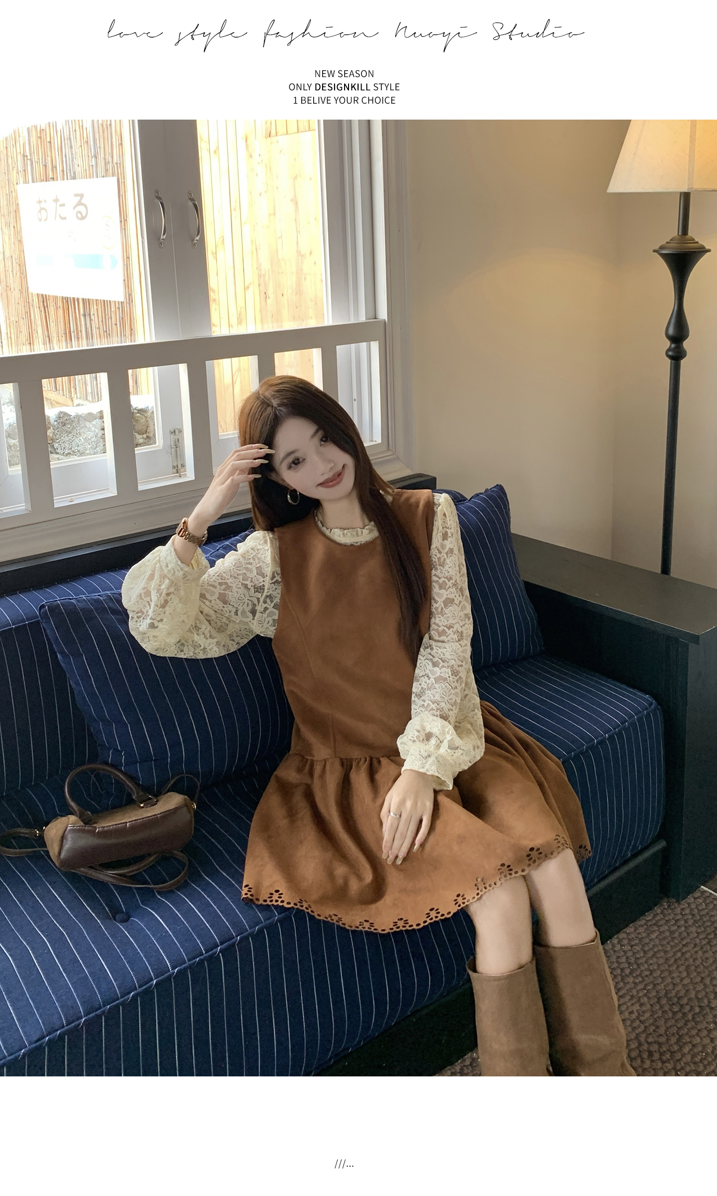 실사 작은 키 레이스 바지를 입는 셔츠 맨위 투피스 드레스 새로운 빅 사이즈 스웨이드 원단 조끼 스커트