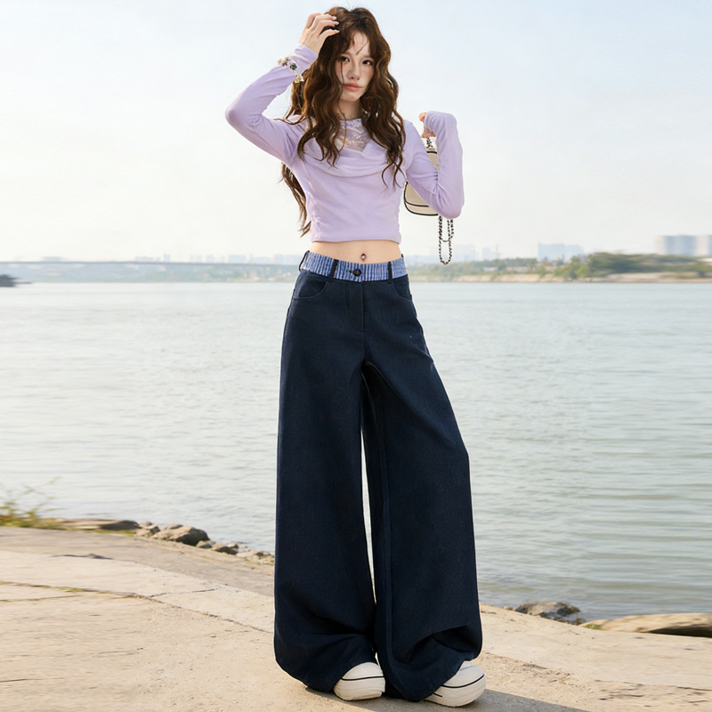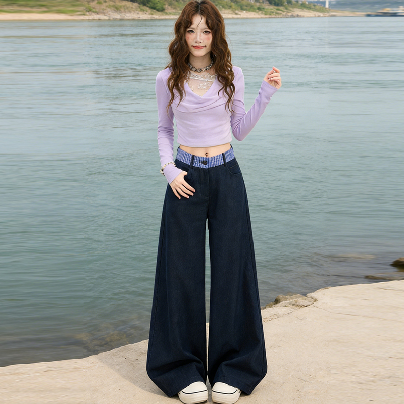 실사 Gypsophila 플래시 훈련 봄 새로운 하이웨이스트 아메리칸 좁은 에디션 스트레이트 넓은 다리 청바지 여성 루즈핏 바닥 청소 바지