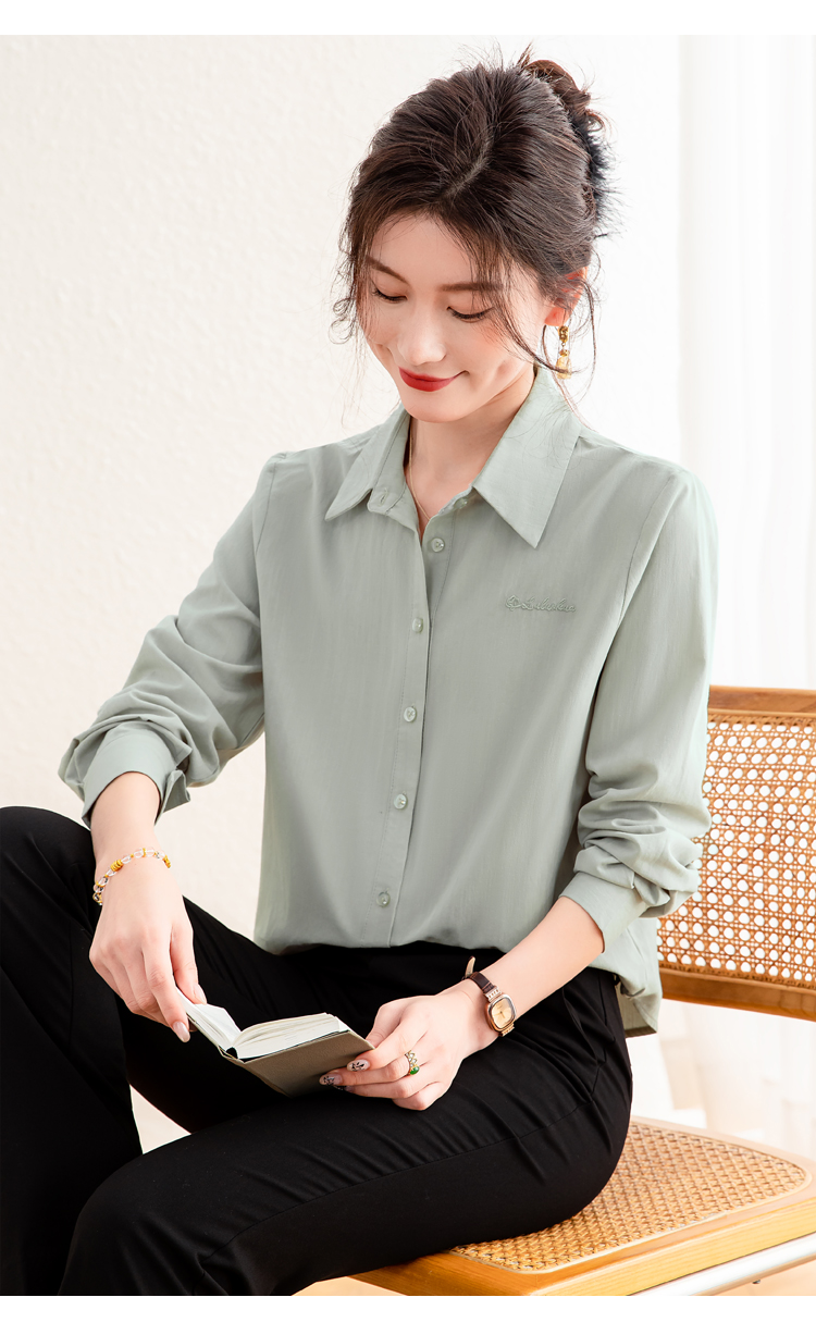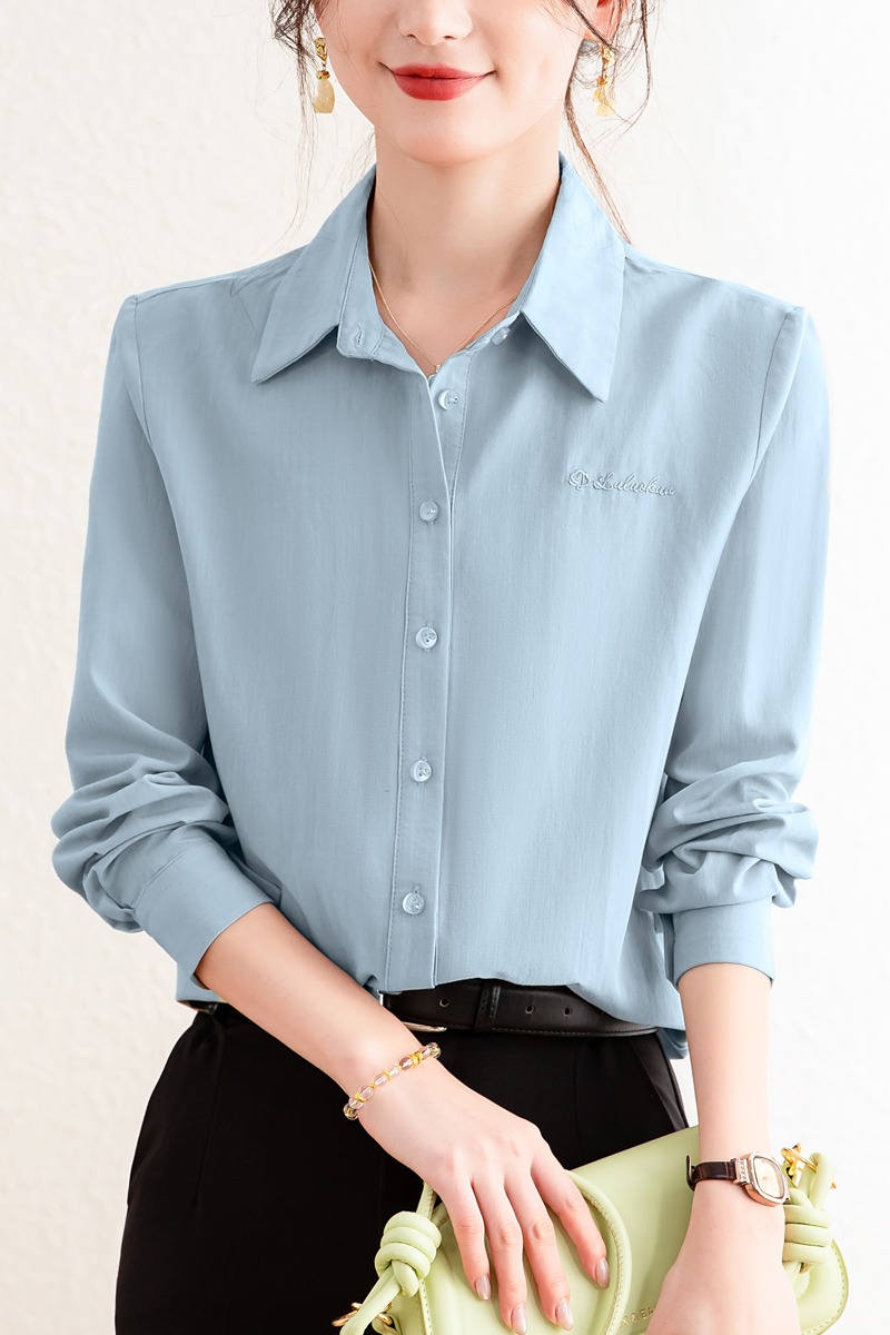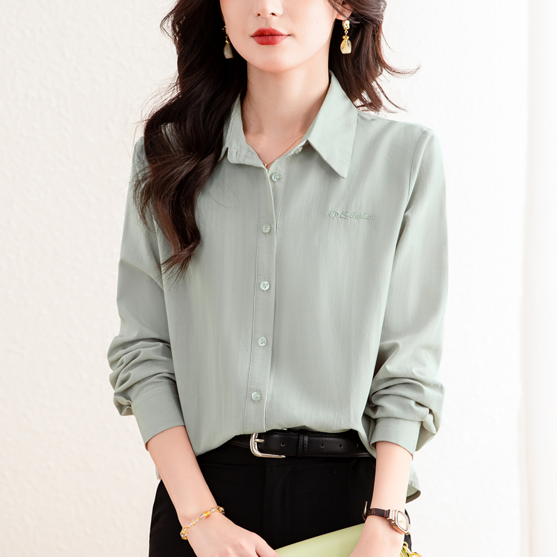실사 미니멀리즘 출퇴근 자수 긴팔 여성 셔츠 2026 봄 경력 다용도 루즈핏 슬림해 보이는 셔츠