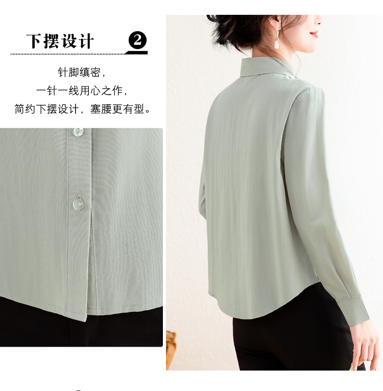 실사 프린트 체크무늬 뽕나무 누에 실크 긴팔 봄 프릴 스탠드 칼라 여성 셔츠 외국 가스 다용도 긴팔 맨위