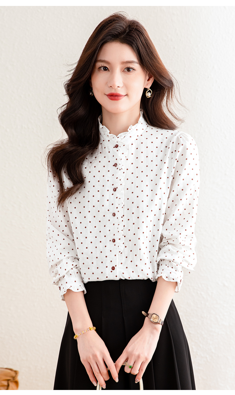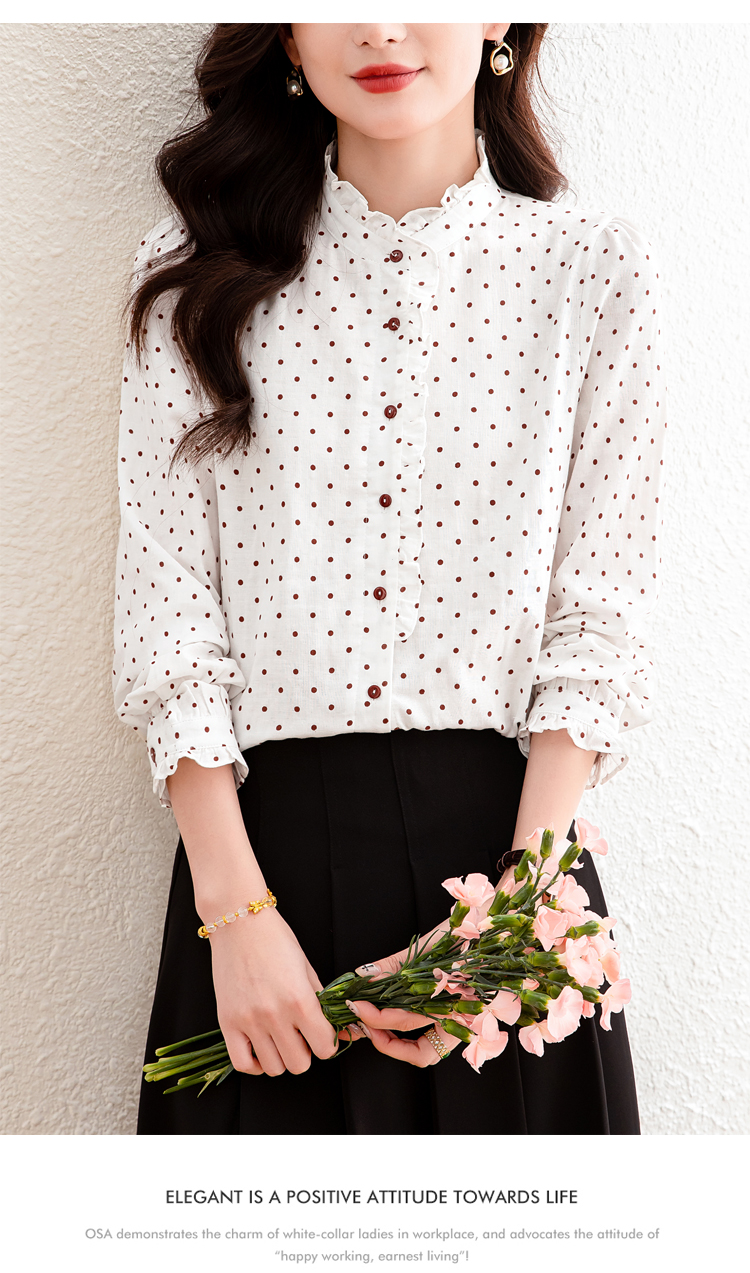 2026 여름 새로운 프랑스식 출퇴근 바람 화이트 도트 무늬 반팔 여성 셔츠 프릴 품격 다용도 맨위