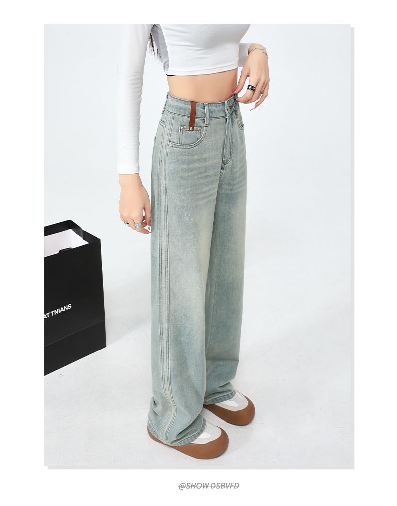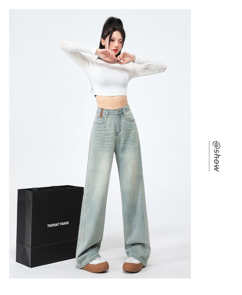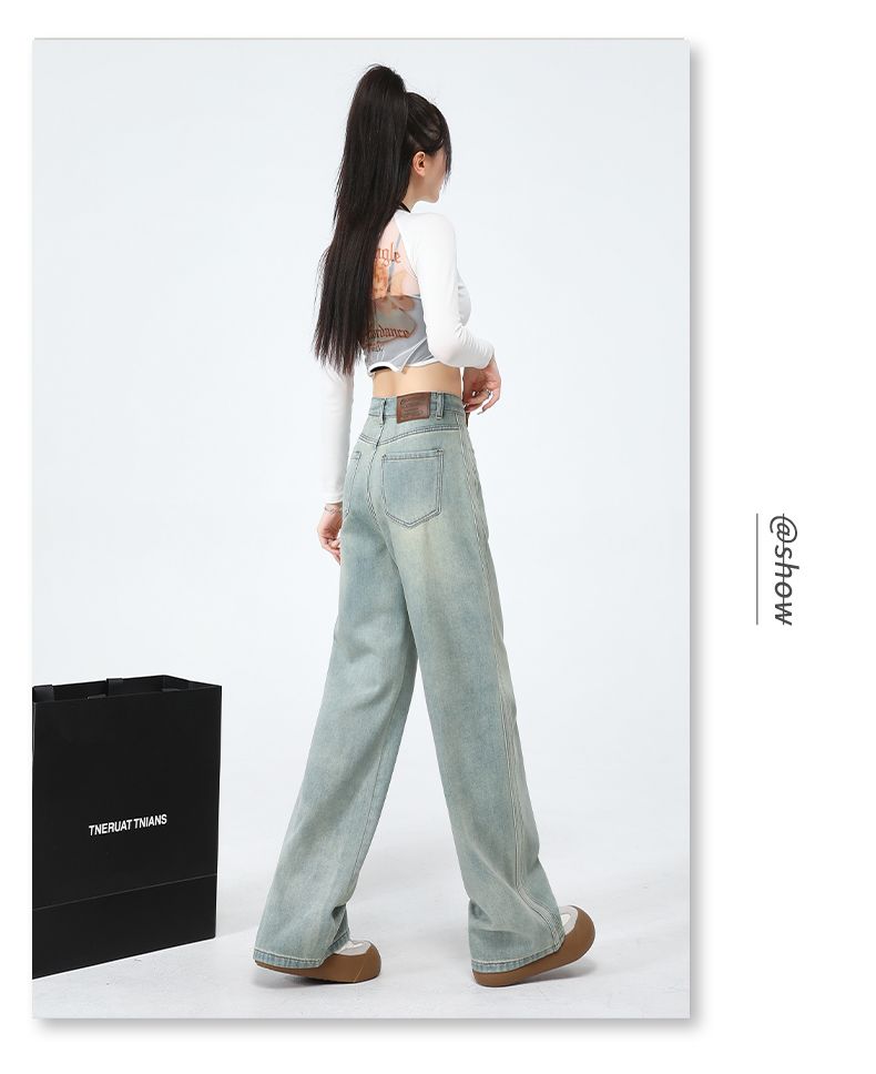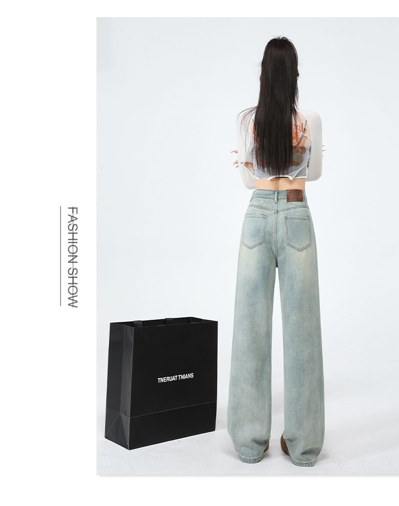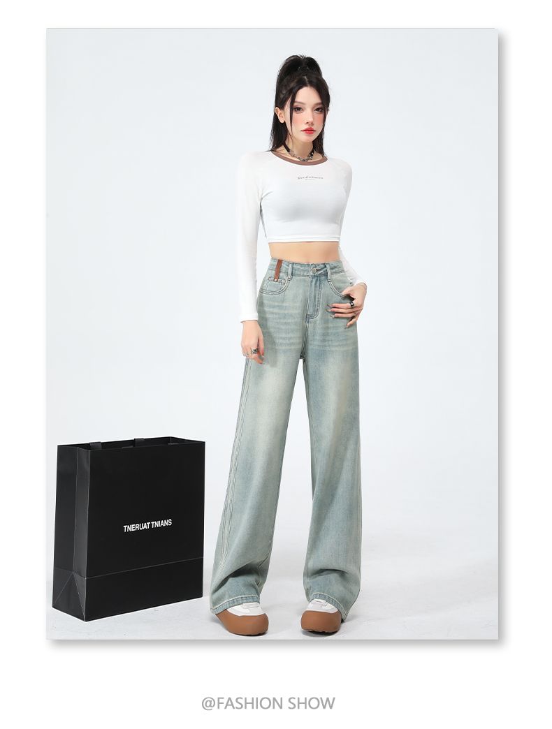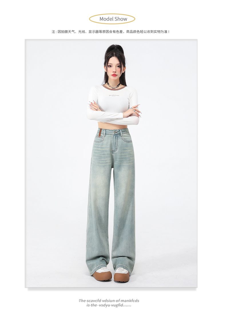 실사 Gypsophila 플래시 훈련 봄 새로운 하이웨이스트 아메리칸 좁은 에디션 스트레이트 넓은 다리 청바지 여성 루즈핏 바닥 청소 바지