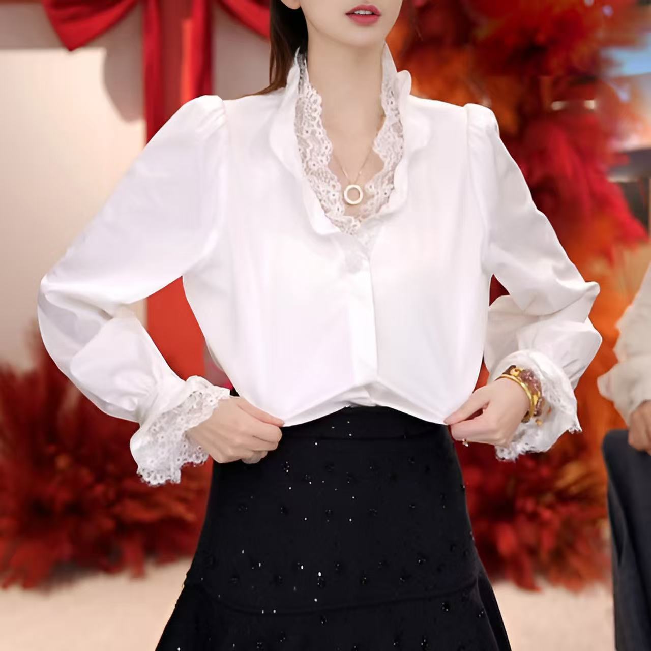 프랑스식 레이스 레이스 칼라 다용도 셔츠 2026 봄과 가을 패션 작은 대중 아니요 명중 셔츠 디자인 맨위