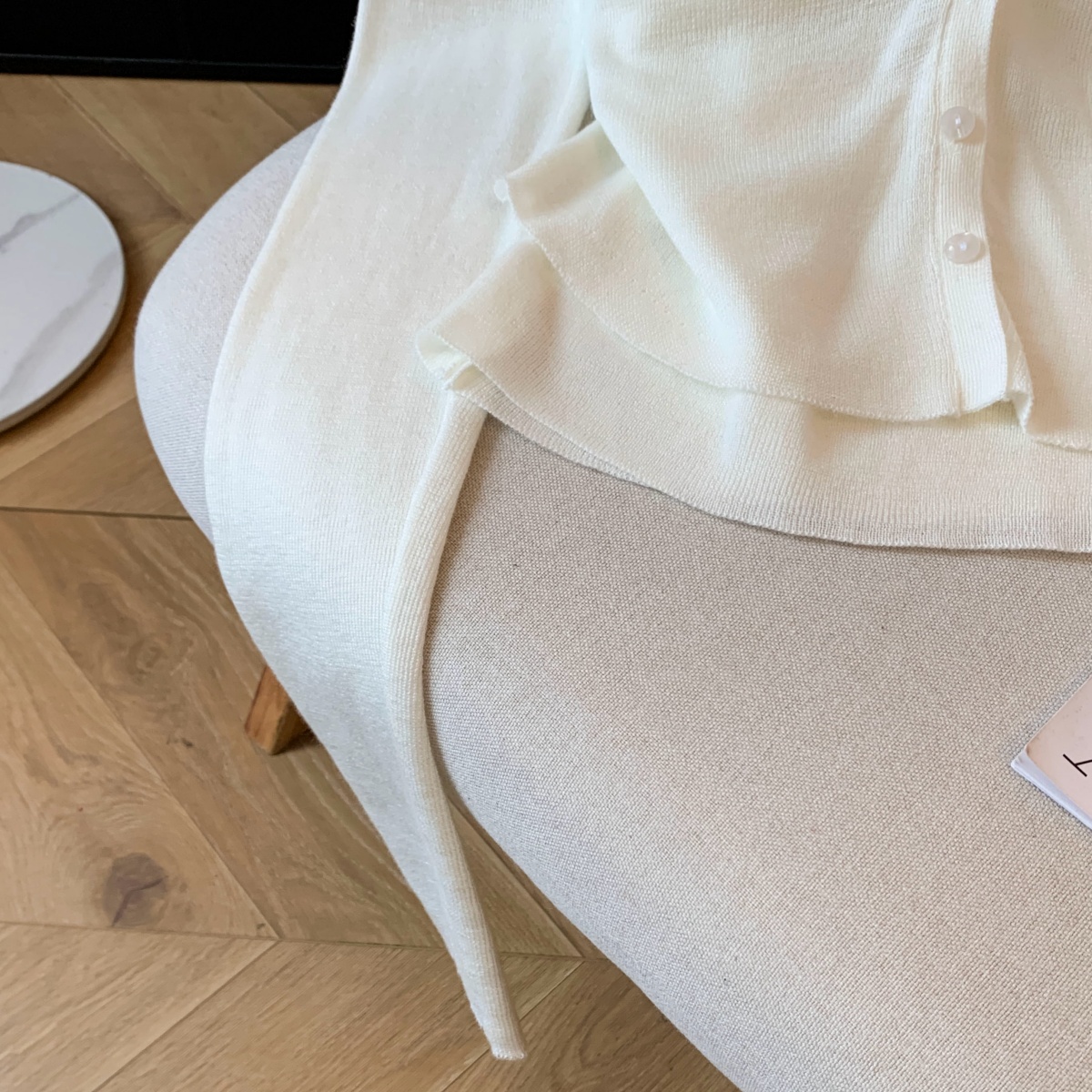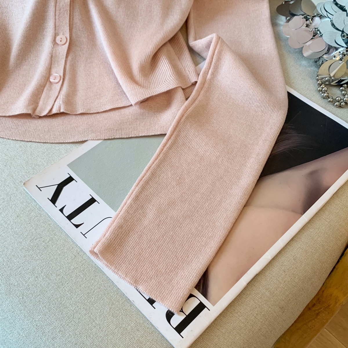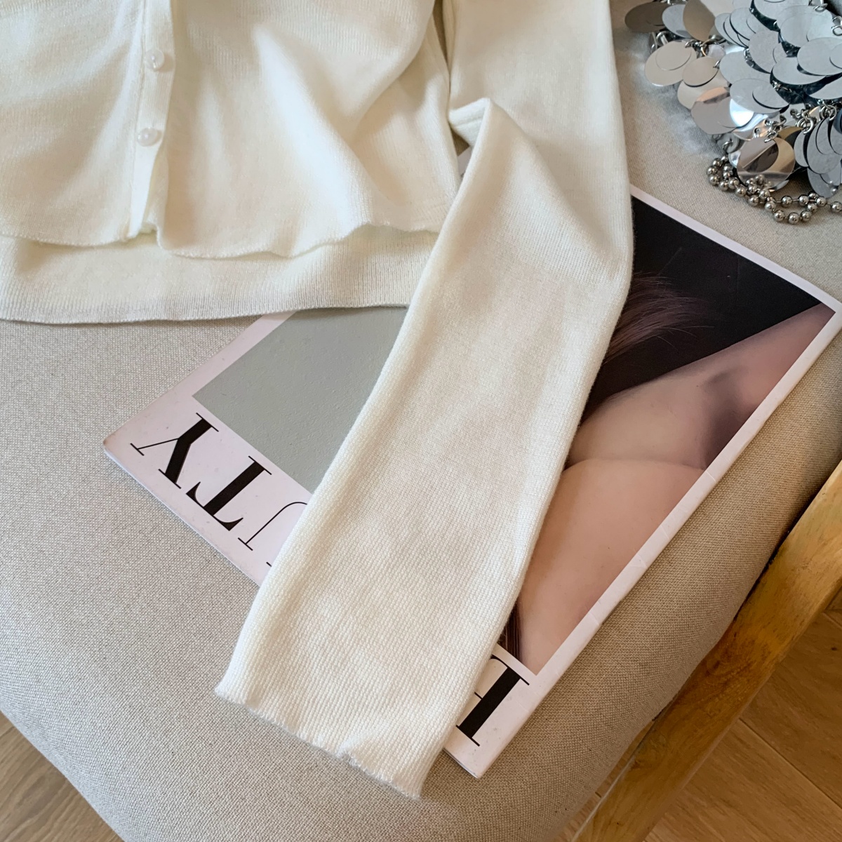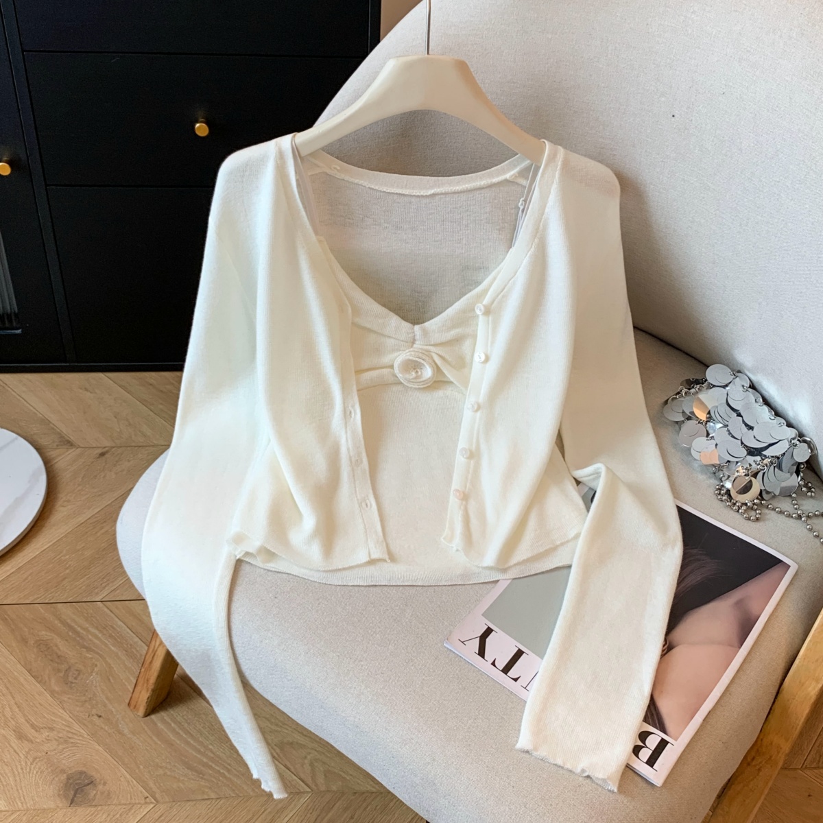 실사 부드러운 바람 화이트 긴팔 니트 오픈 가디건 여성 코트 인사이드 가져 가라. 민소매 꽈배기 캐미솔 세트