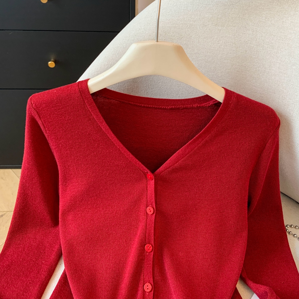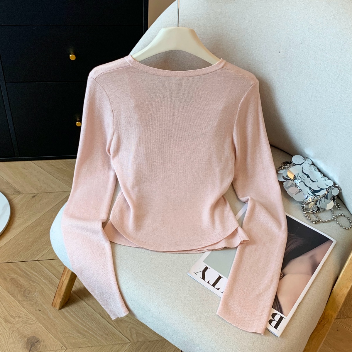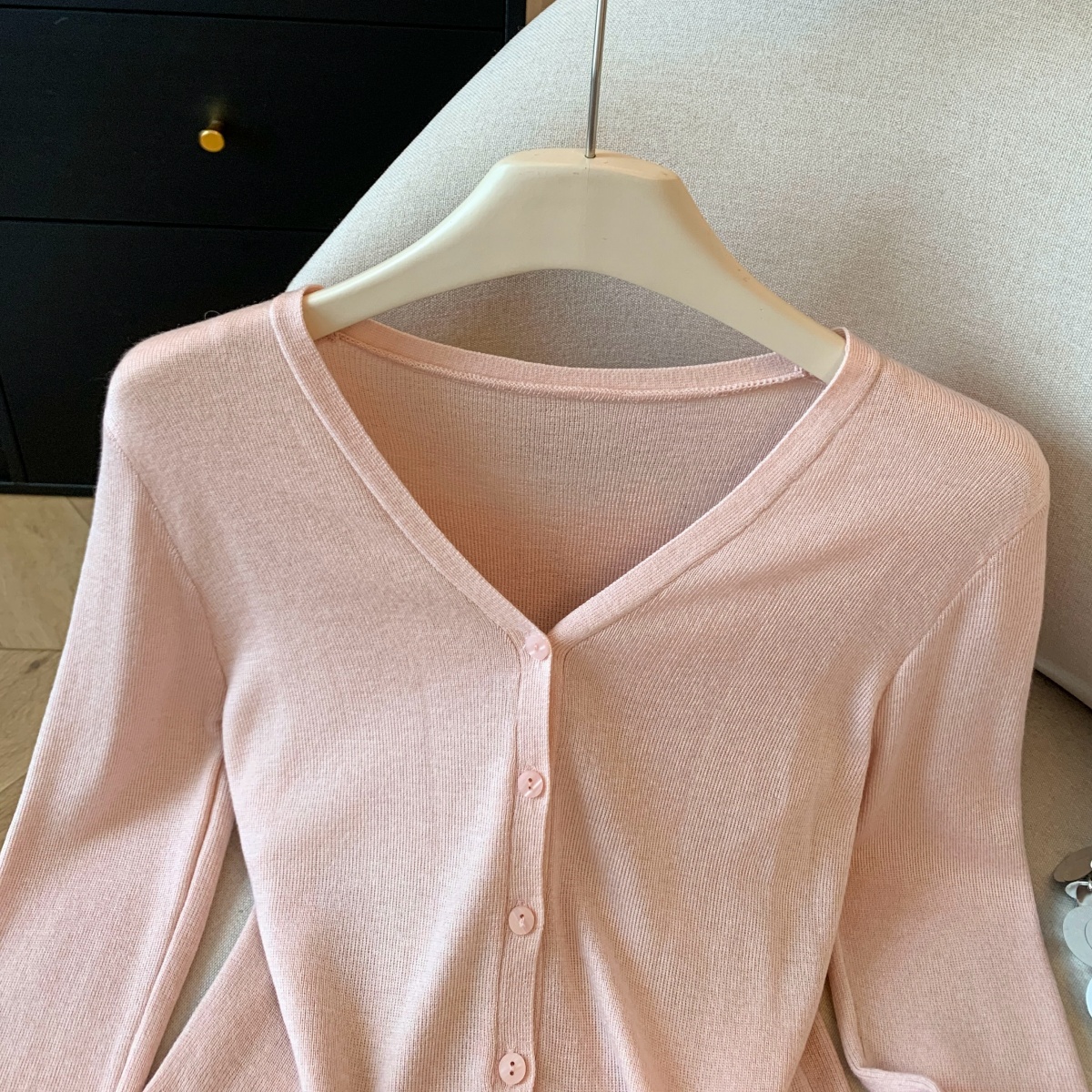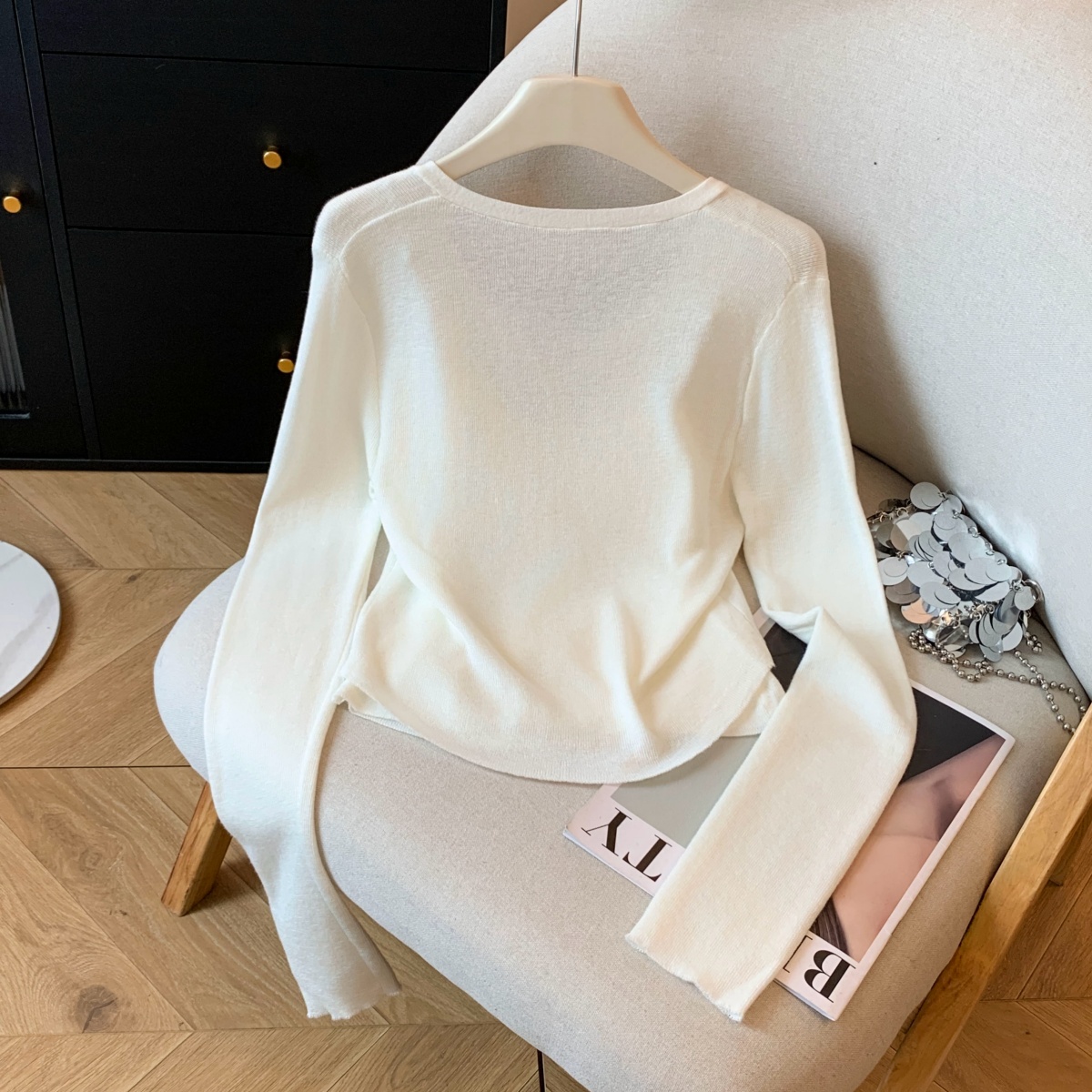 실사 V넥 니트 기본 셔츠 여성 인사이드 가져 가라. 가을 얇은 스타일 2025 새로운 디자인 센스 작은 대중 아니요 명중 섹션 맨위