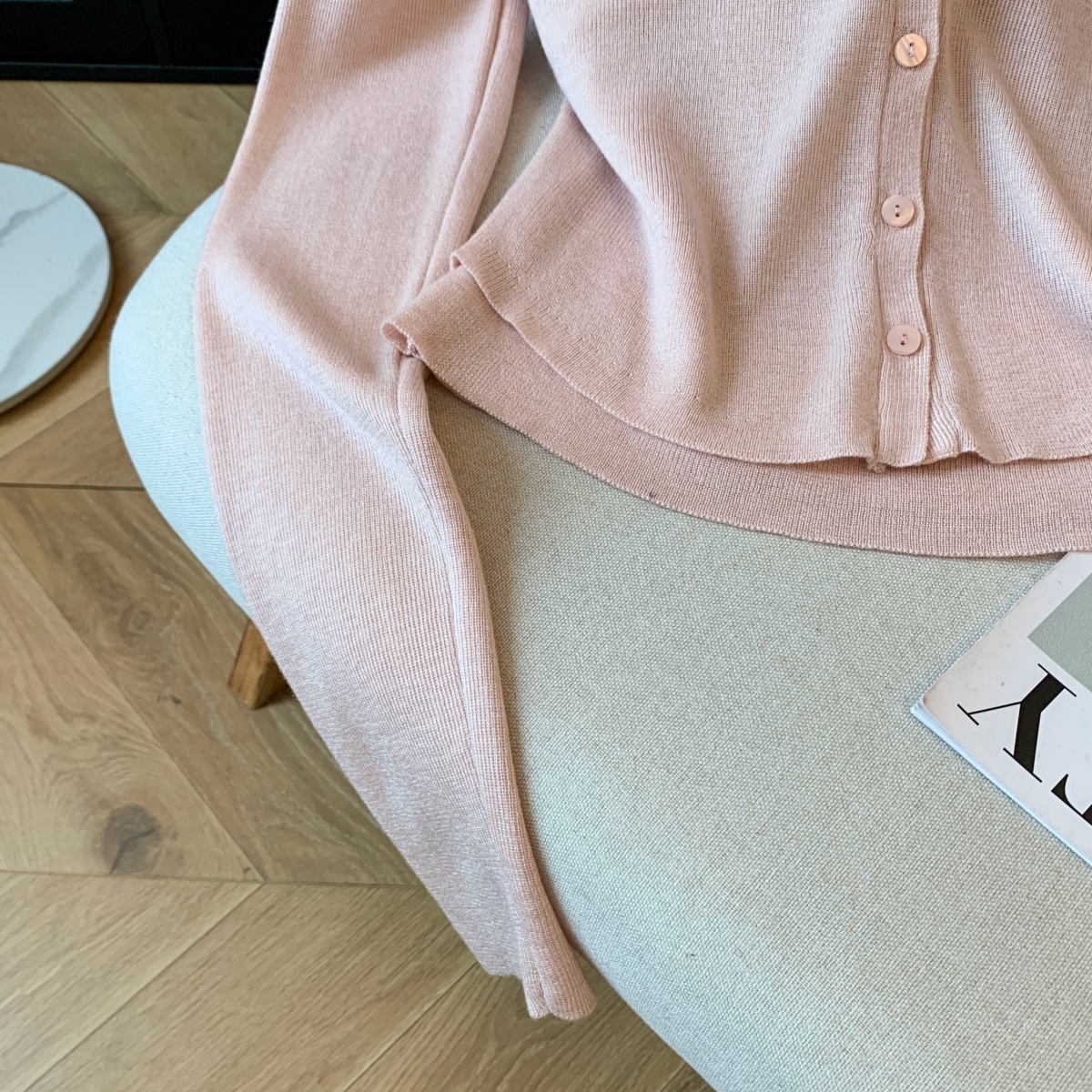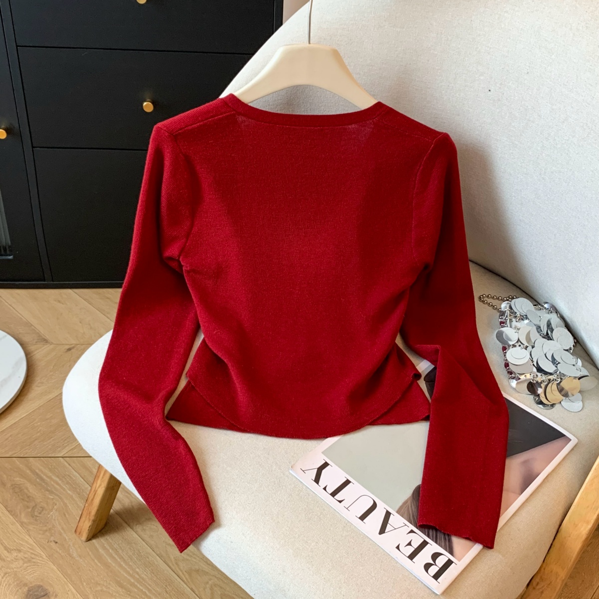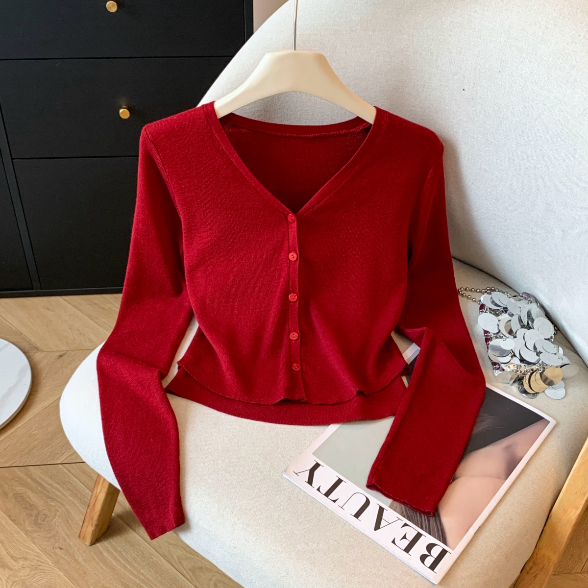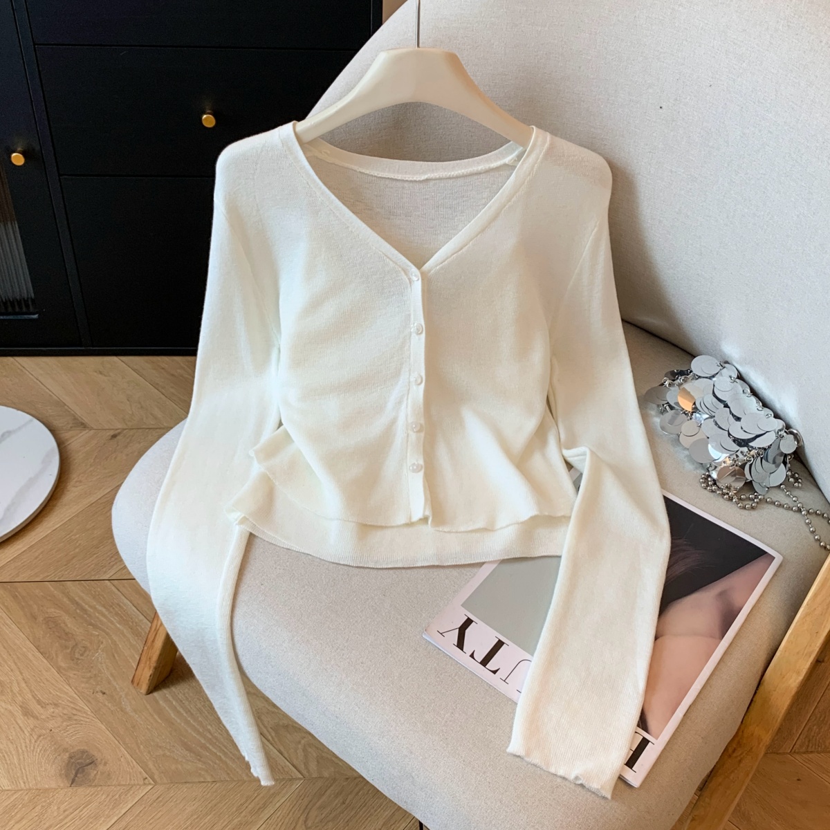 실사 V넥 니트 기본 셔츠 여성 인사이드 가져 가라. 가을 얇은 스타일 2025 새로운 디자인 센스 작은 대중 아니요 명중 섹션 맨위