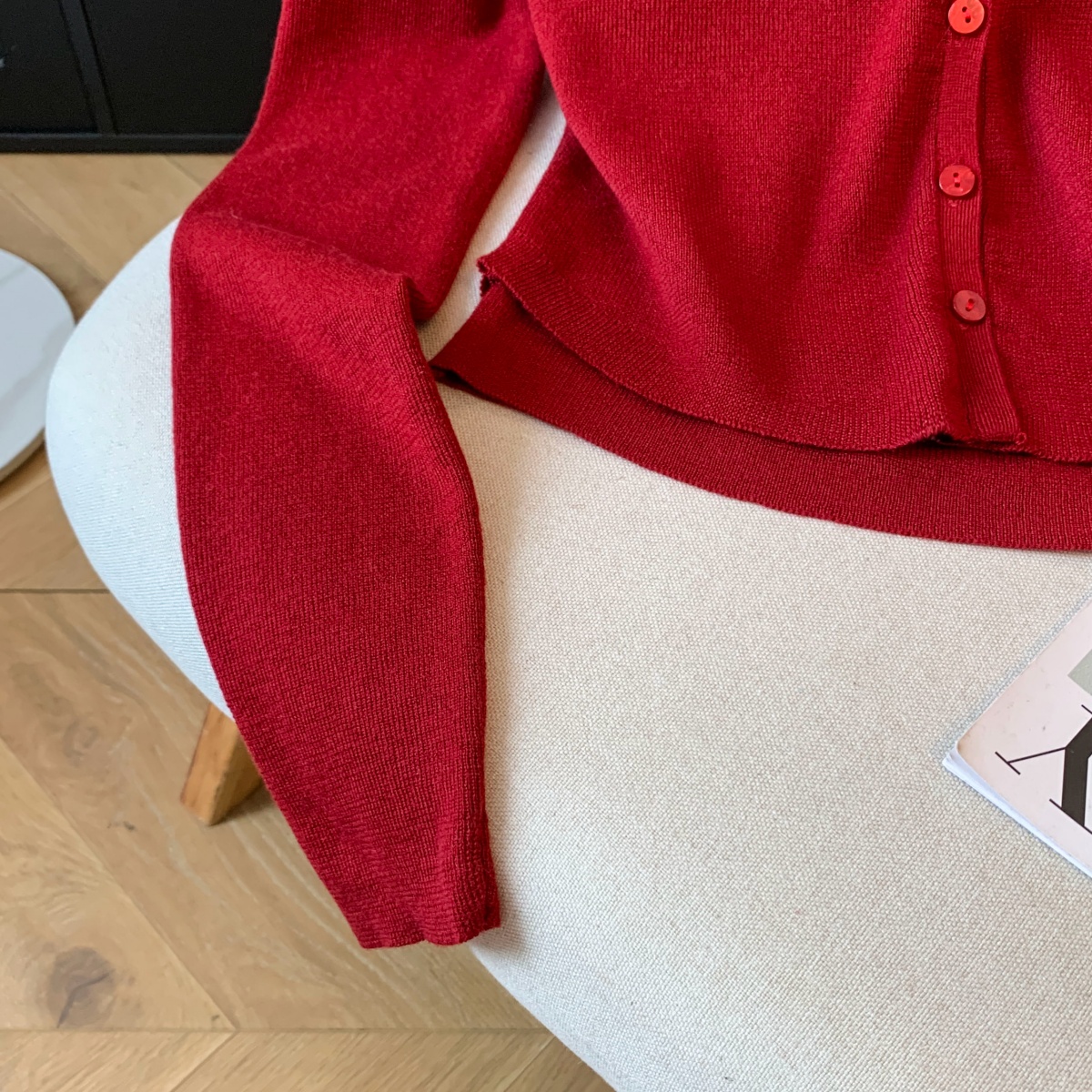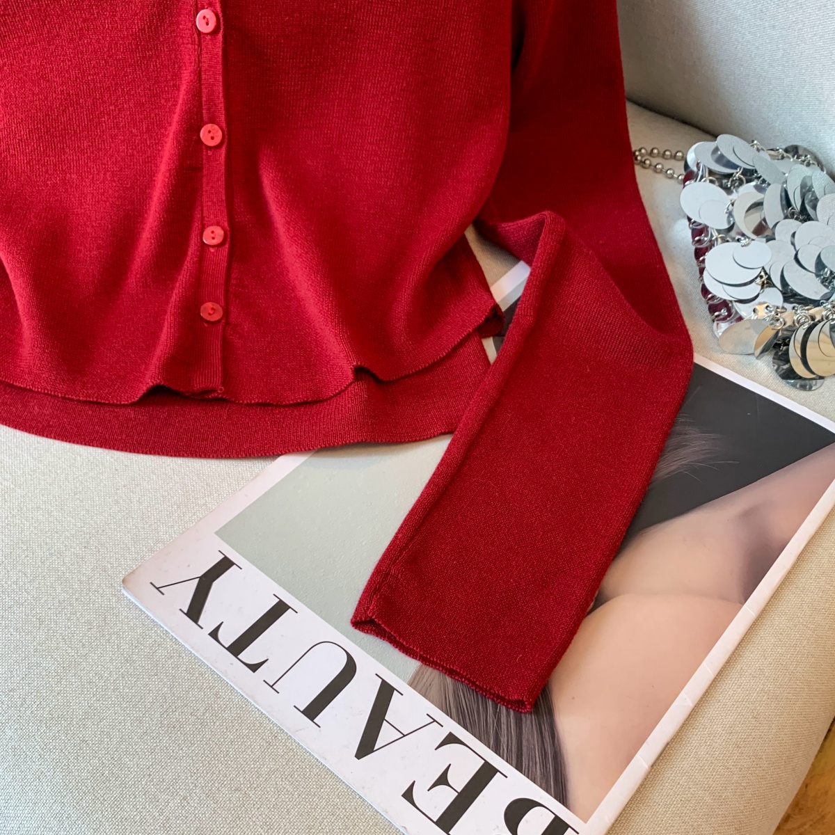 실사 한 부서 레이스 레이스 빨간색 니트 오픈 가디건 여성 가을 겨울 수 있습니다. 외출용 부드러운 루즈핏 스웨터 인사이드 잡아라. 의류