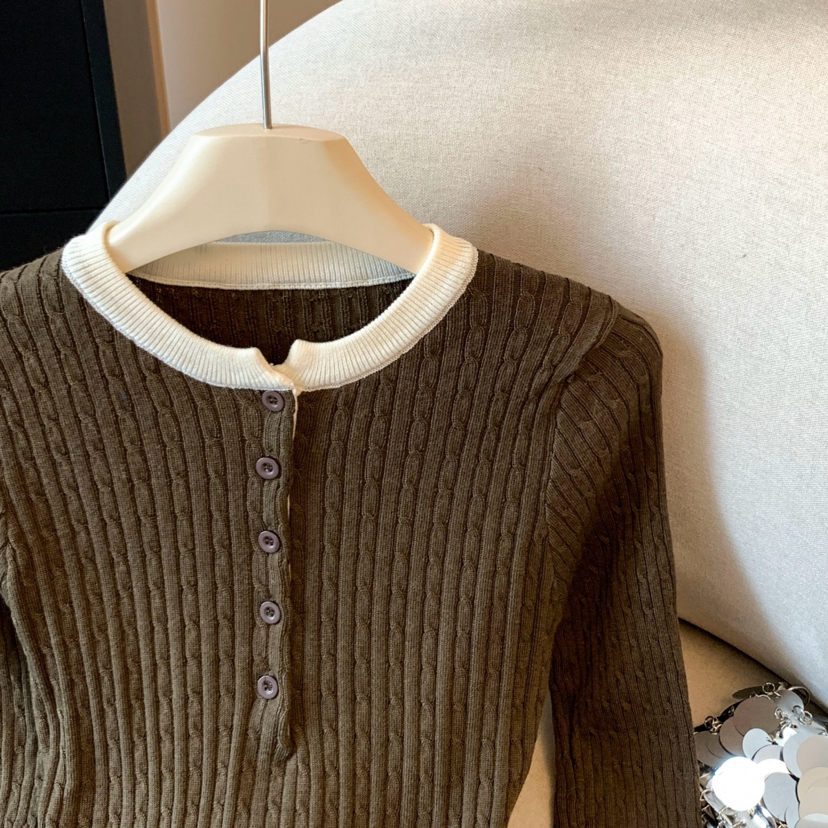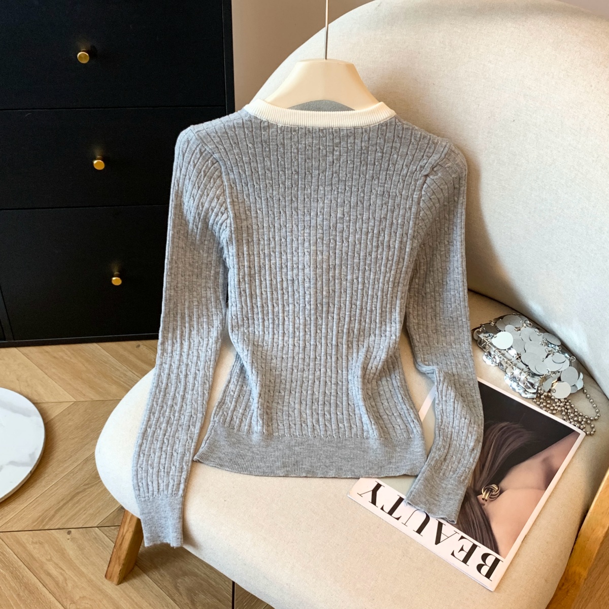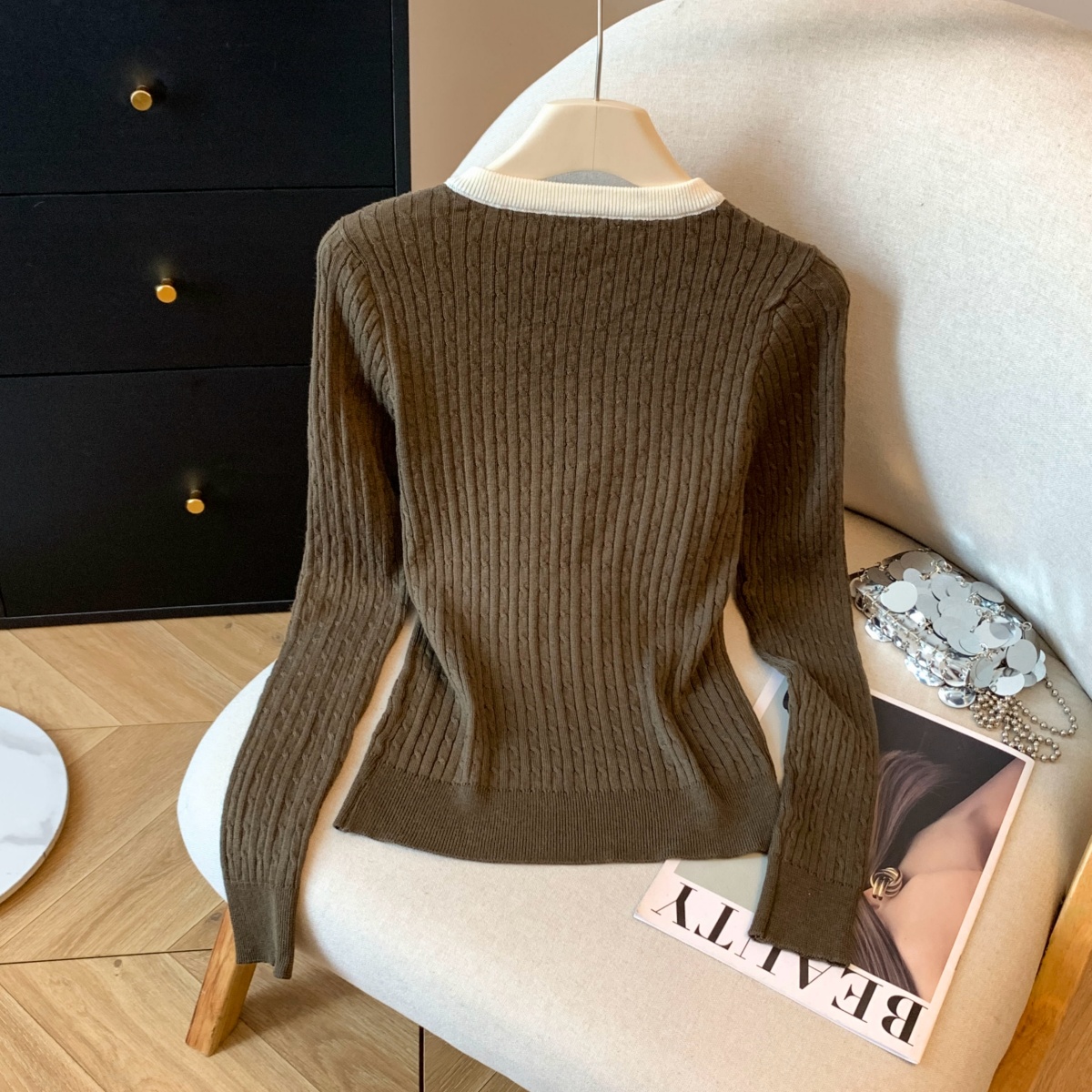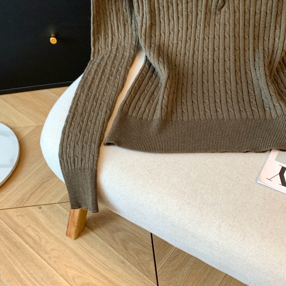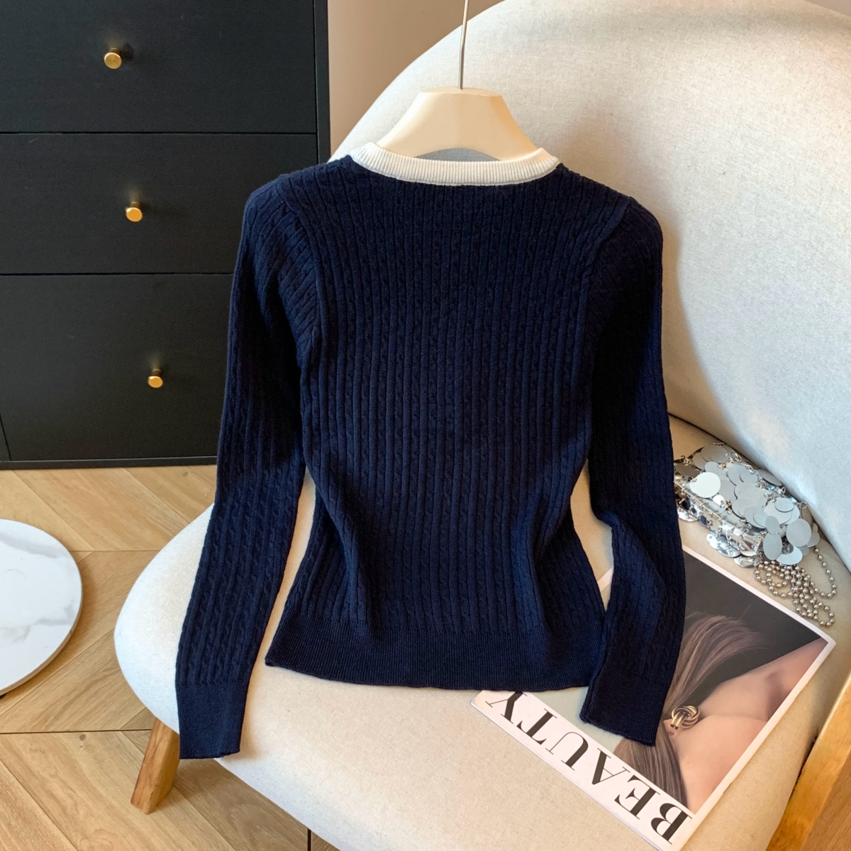 실사 라운드 넥 니트 기본 셔츠 여성 인사이드 가져 가라. 가을 얇은 스타일 2025 새로운 디자인 센스 작은 대중 작은 꽈배기 맨위