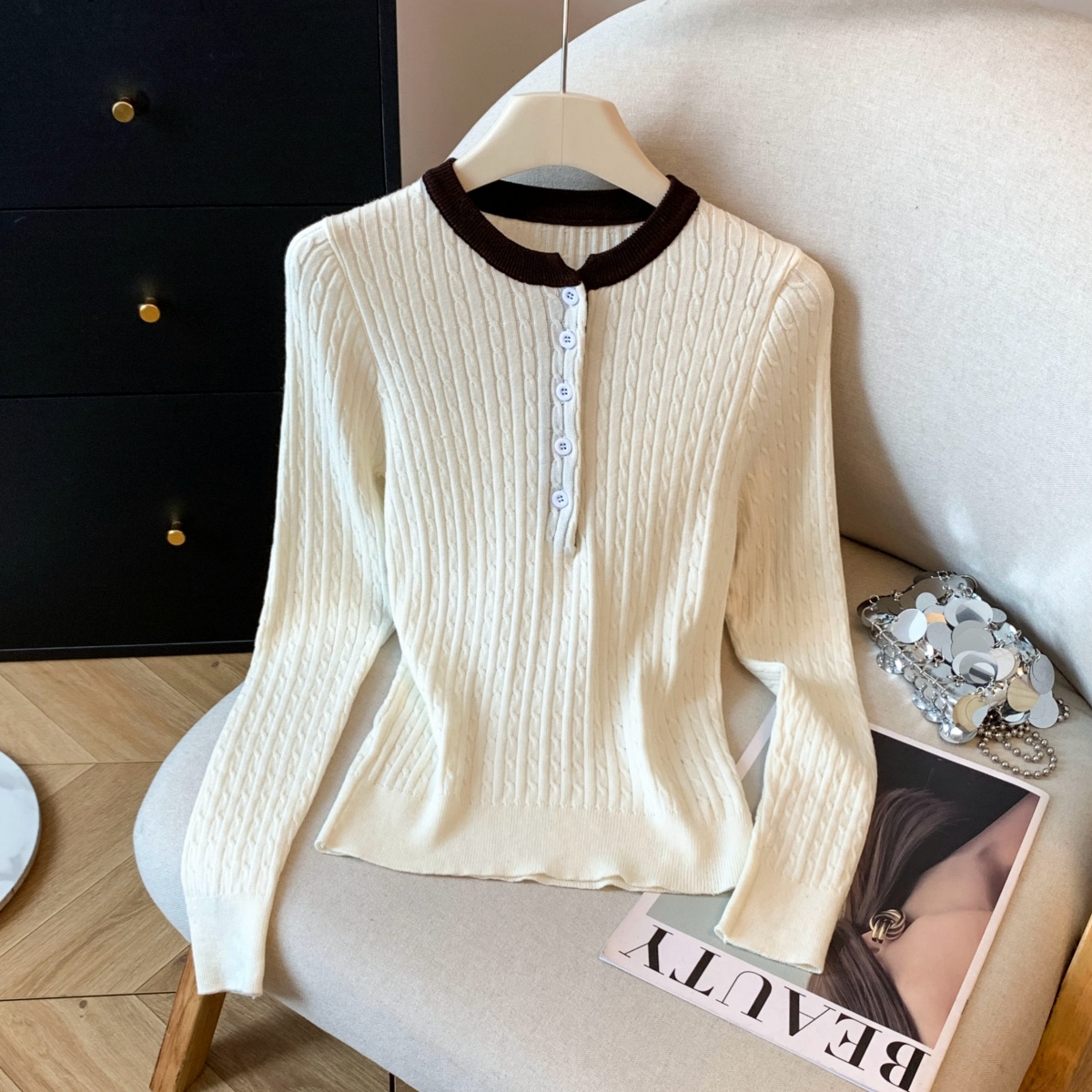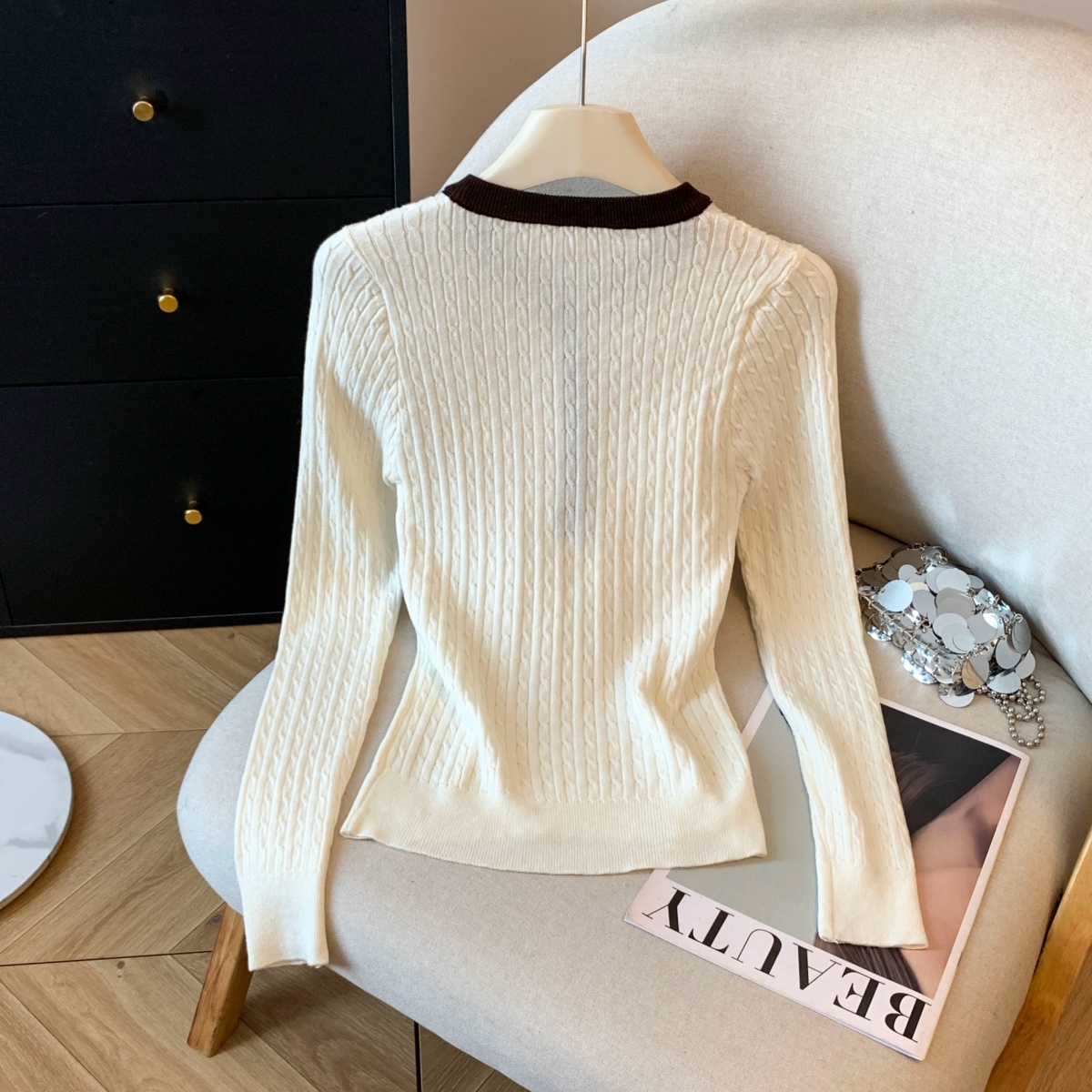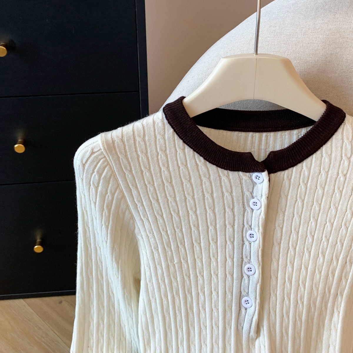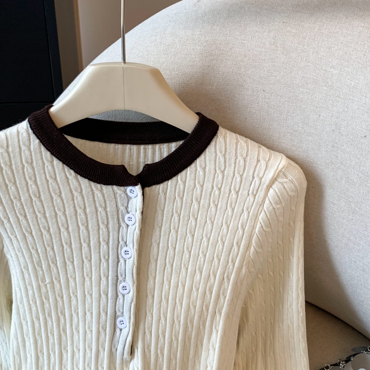 실사 라운드 넥 니트 기본 셔츠 여성 인사이드 가져 가라. 가을 얇은 스타일 2025 새로운 디자인 센스 작은 대중 작은 꽈배기 맨위