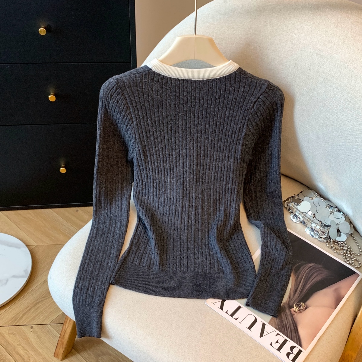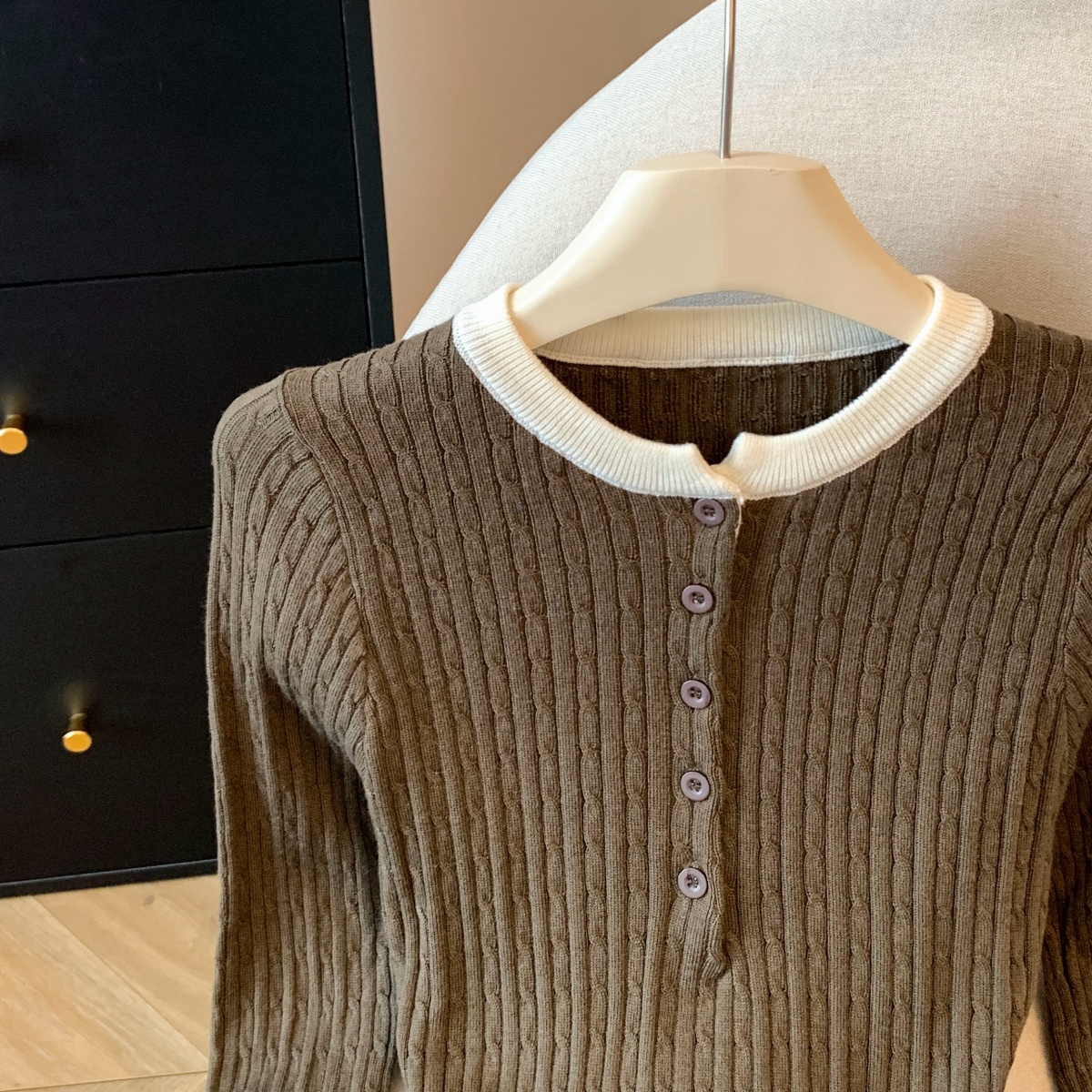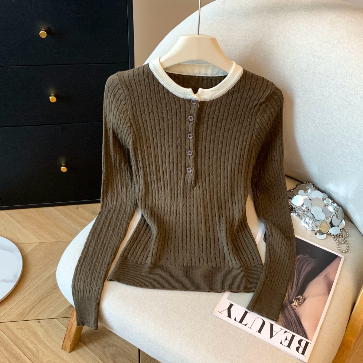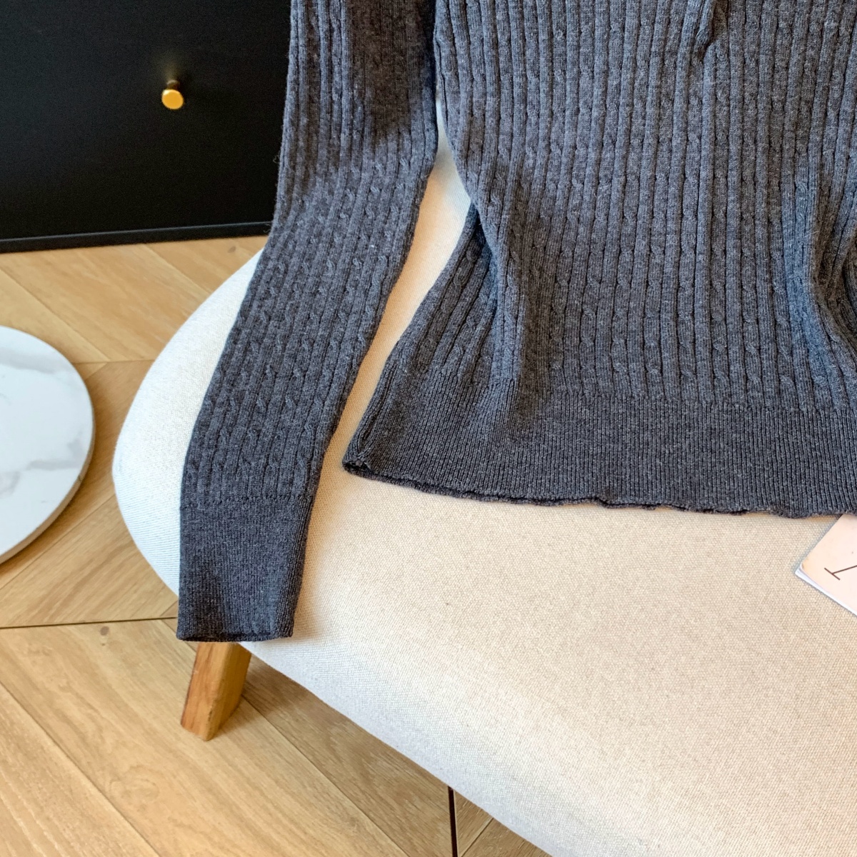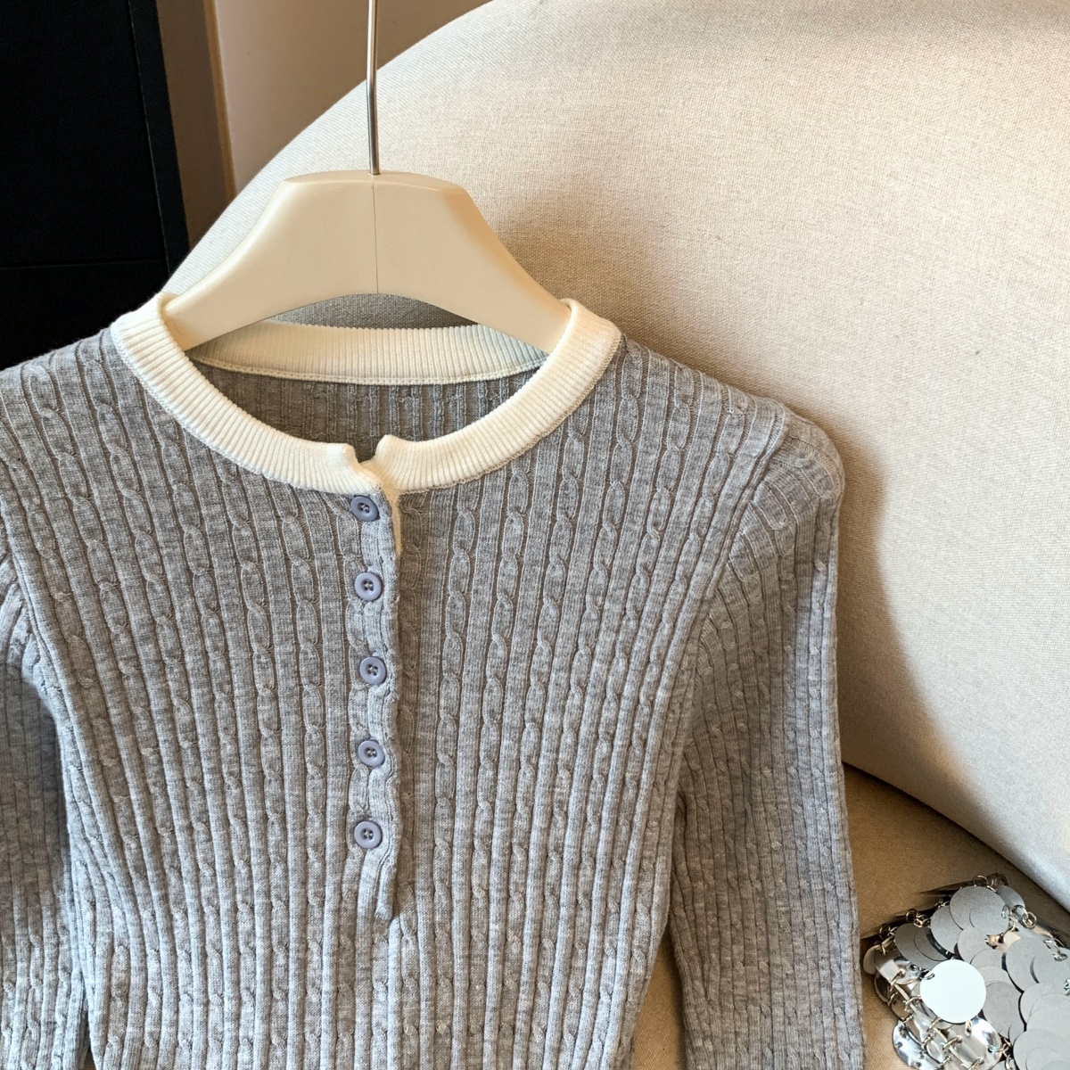 실사 라운드 넥 니트 기본 셔츠 여성 인사이드 가져 가라. 가을 얇은 스타일 2025 새로운 디자인 센스 작은 대중 작은 꽈배기 맨위