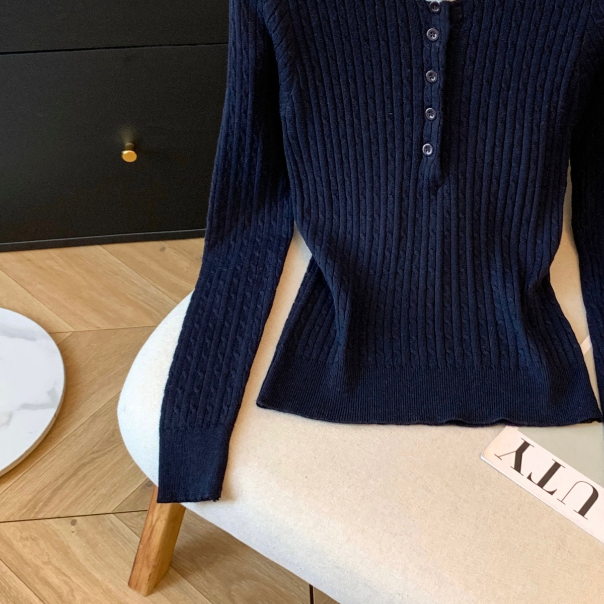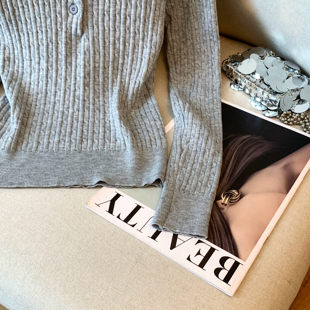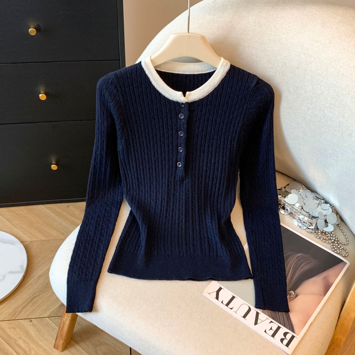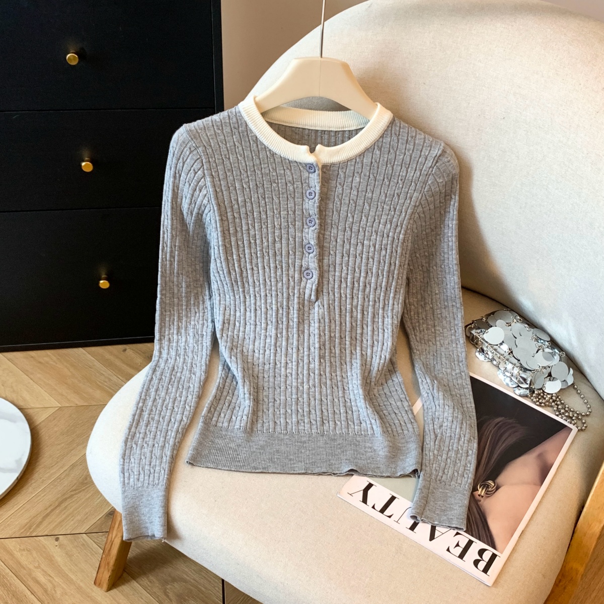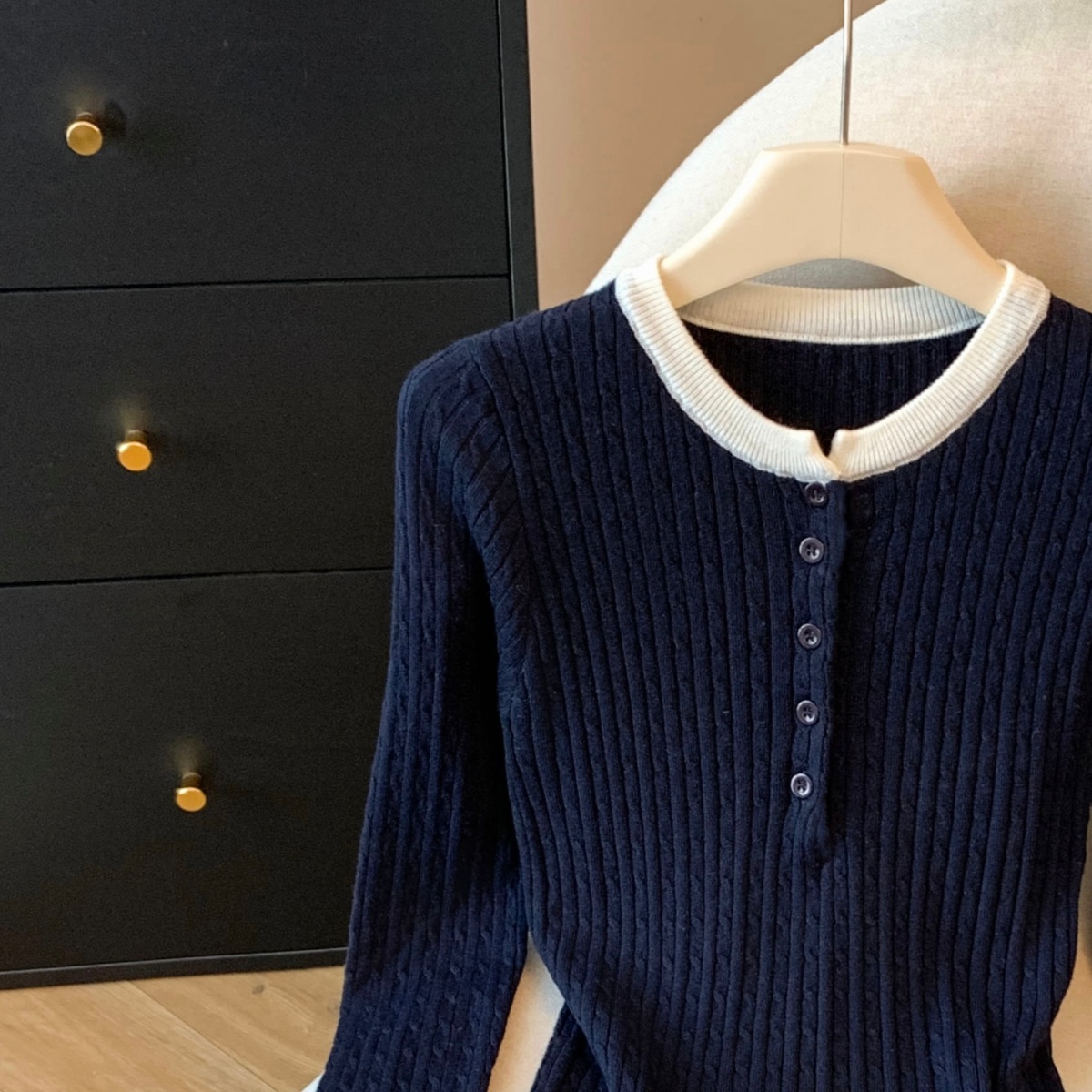 실사 라운드 넥 니트 기본 셔츠 여성 인사이드 가져 가라. 가을 얇은 스타일 2025 새로운 디자인 센스 작은 대중 작은 꽈배기 맨위