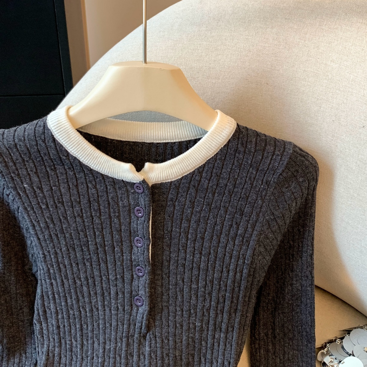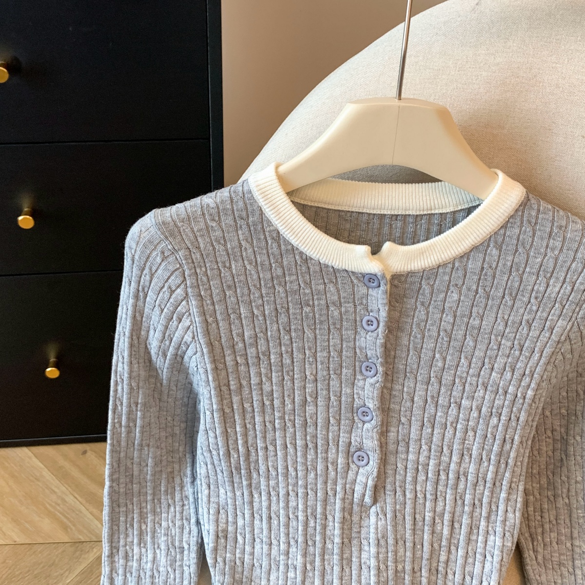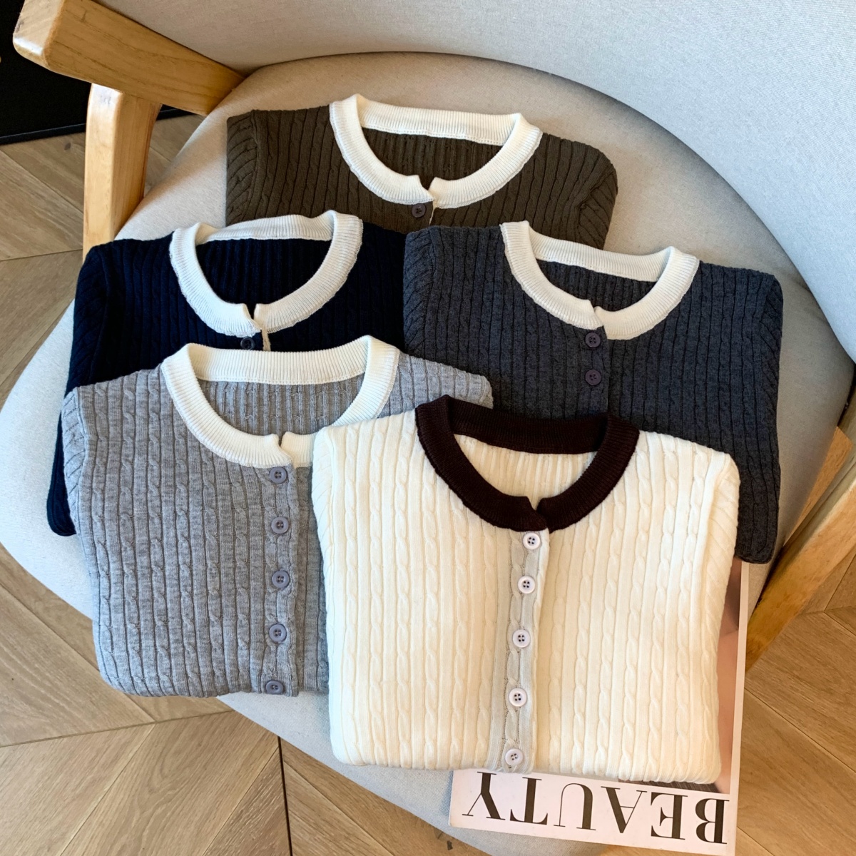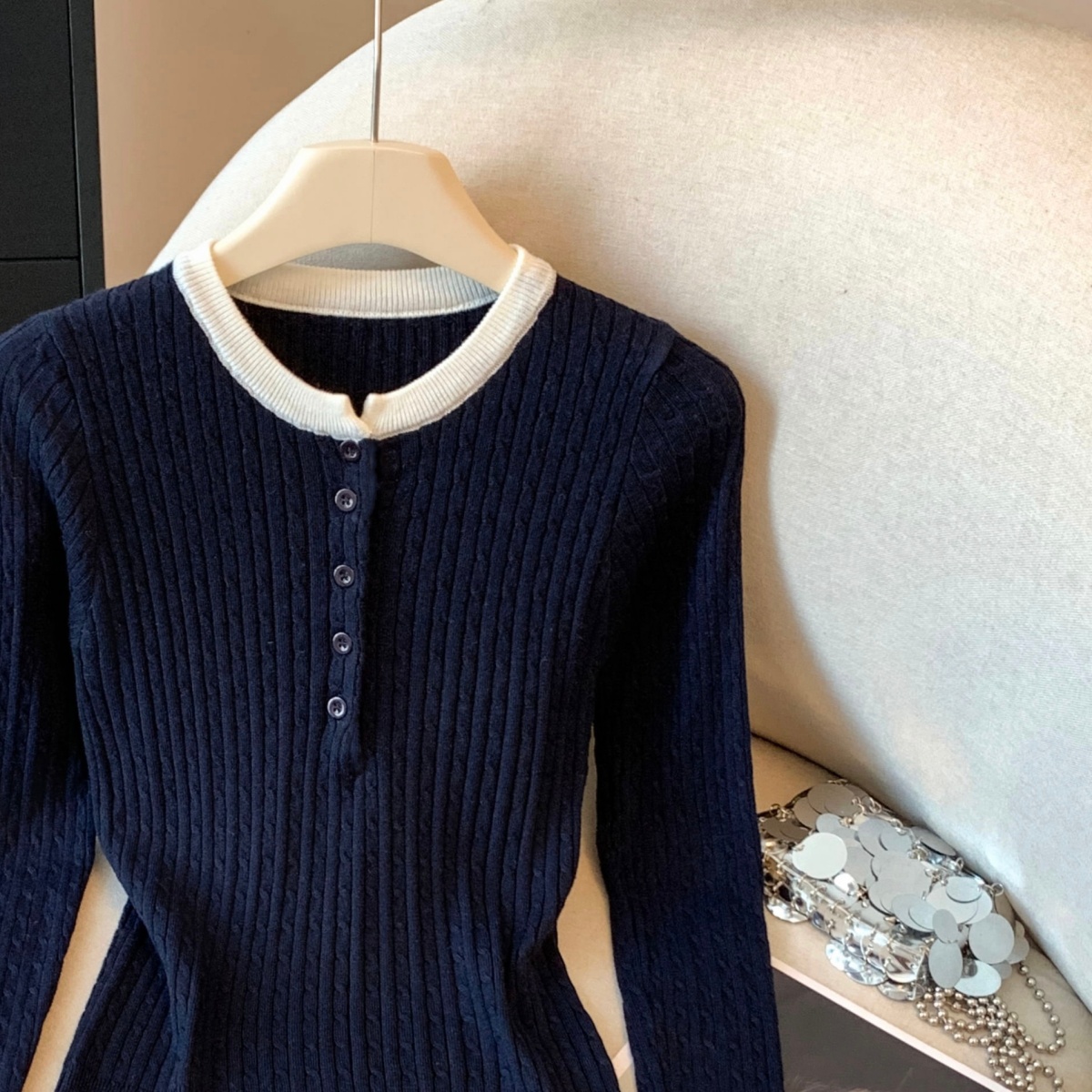 실사 라운드 넥 니트 기본 셔츠 여성 인사이드 가져 가라. 가을 얇은 스타일 2025 새로운 디자인 센스 작은 대중 작은 꽈배기 맨위