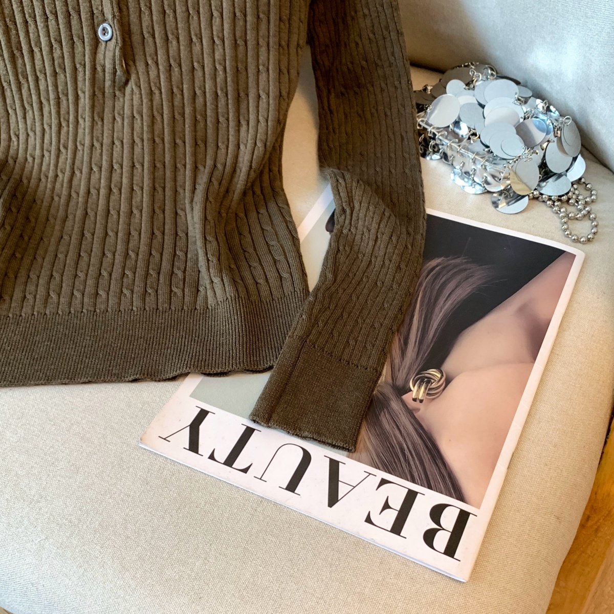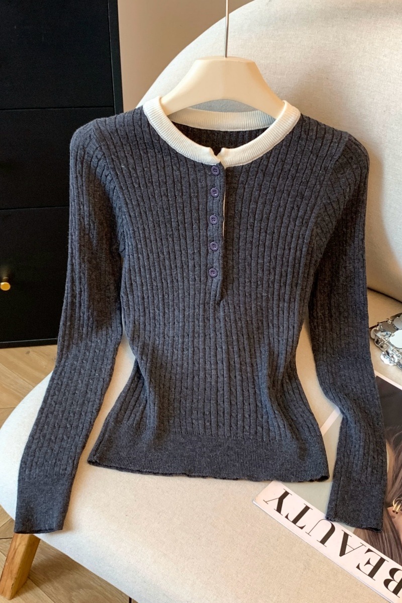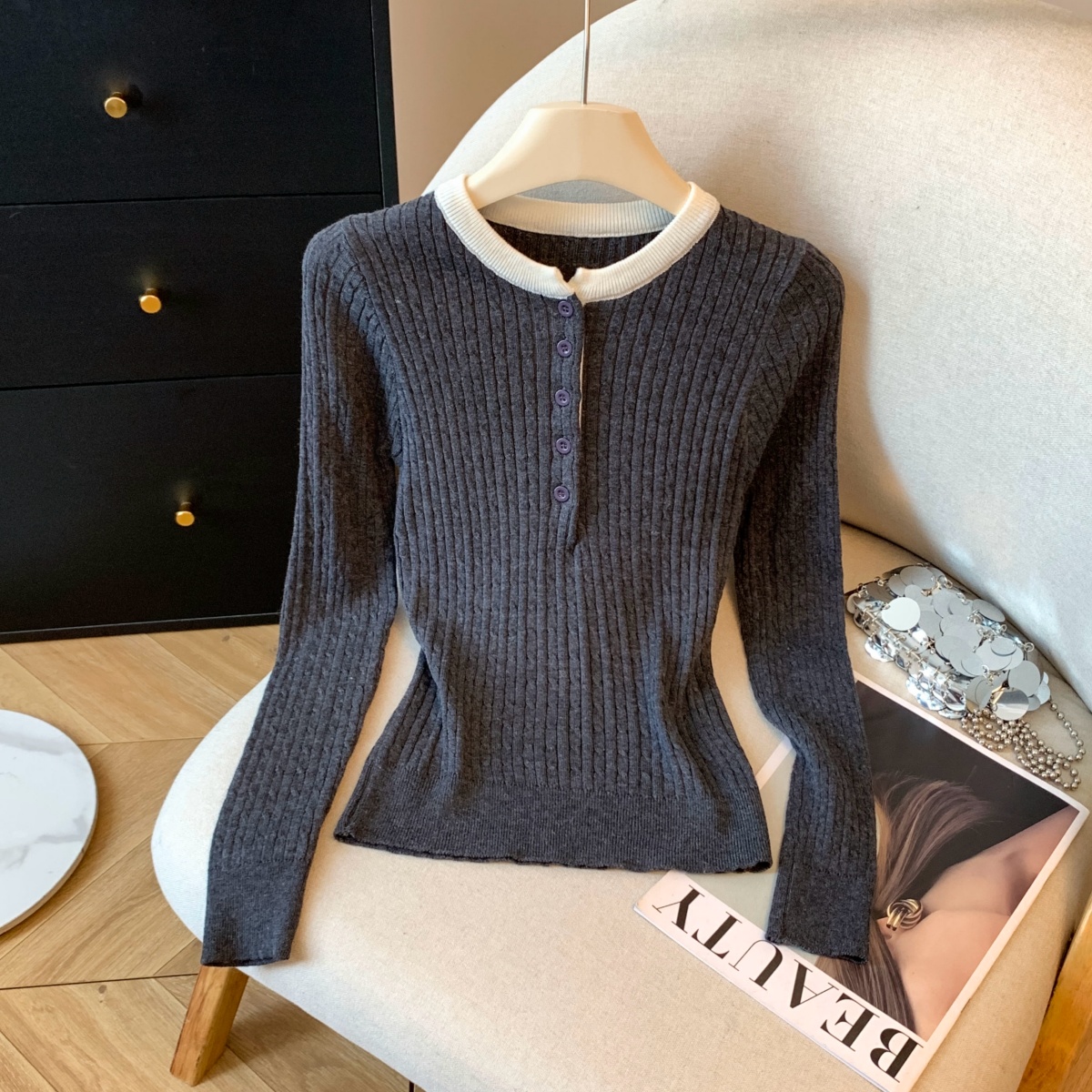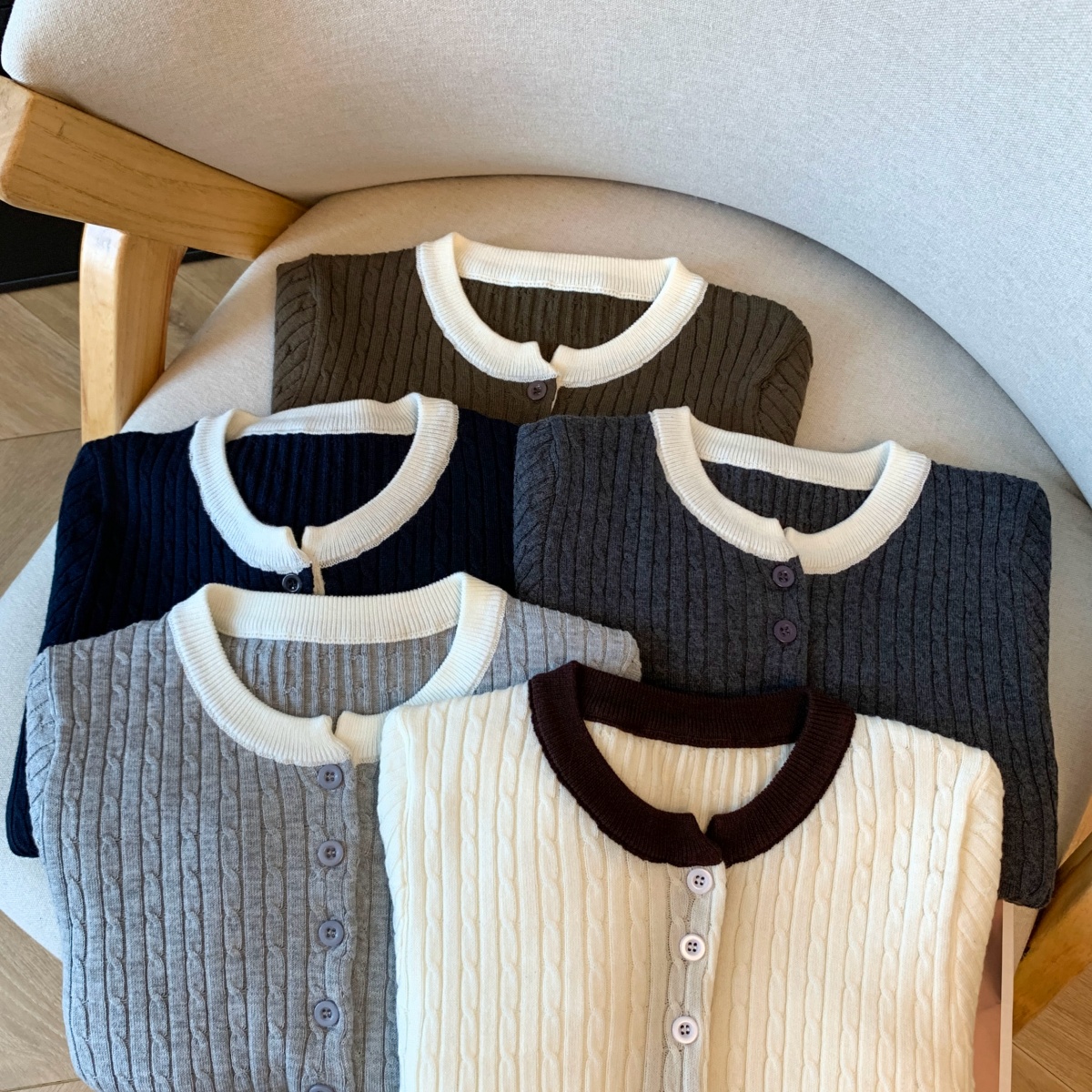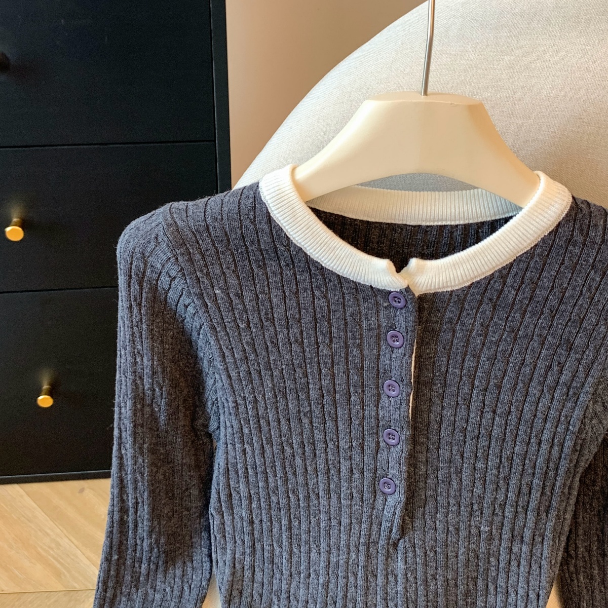 실사 라운드 넥 니트 기본 셔츠 여성 인사이드 가져 가라. 가을 얇은 스타일 2025 새로운 디자인 센스 작은 대중 작은 꽈배기 맨위