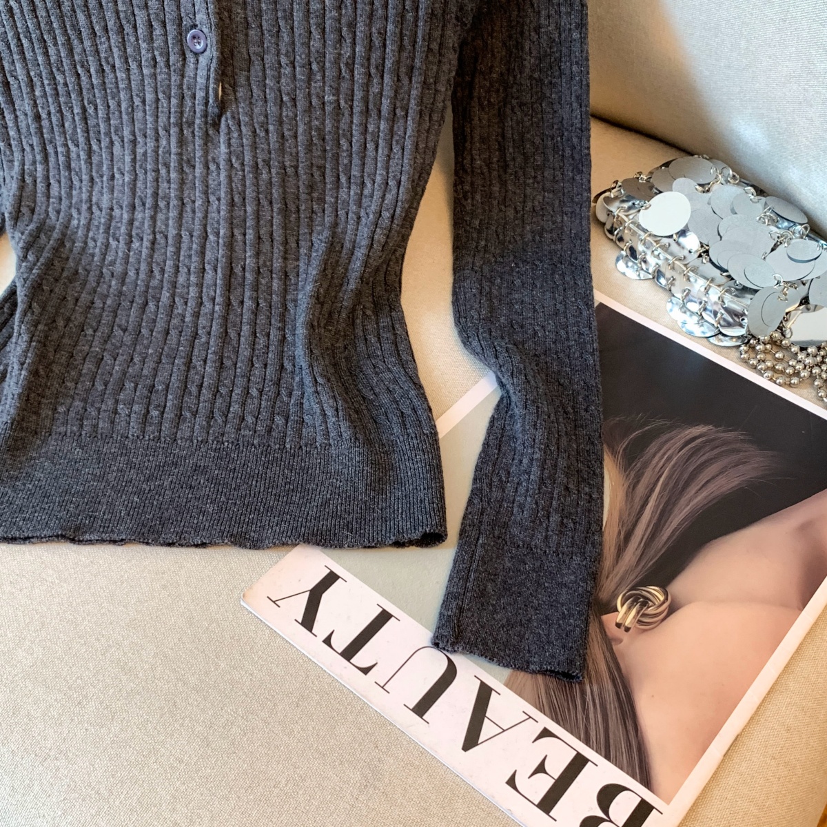 실사 V넥 니트 기본 셔츠 여성 인사이드 가져 가라. 가을 얇은 스타일 2025 새로운 디자인 센스 작은 대중 아니요 명중 섹션 맨위