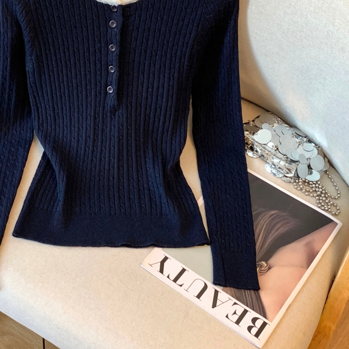 실사 겨울 니트 기본 셔츠 레이스 레이스 패치워크 긴팔 니트 스웨터 스웨터 몸매 가꾸기 만나는 맨위 연령 감소