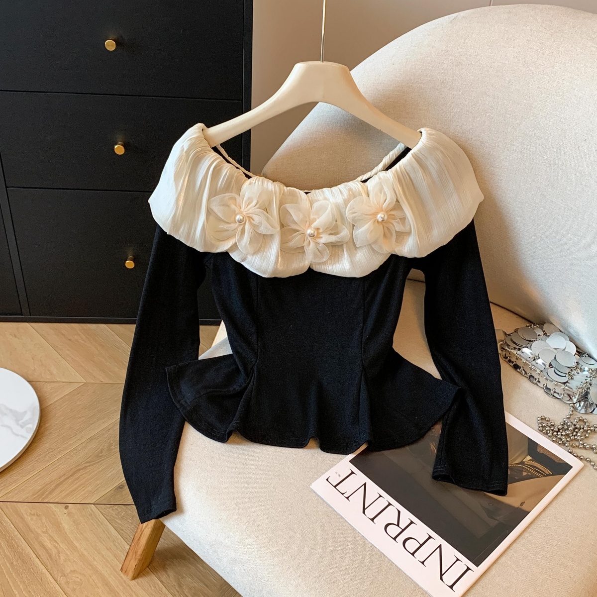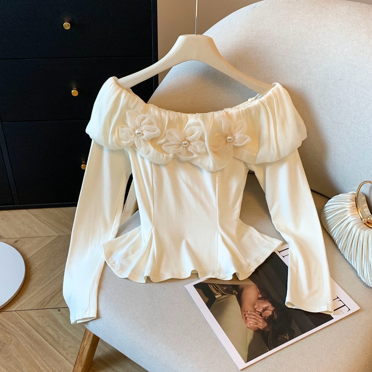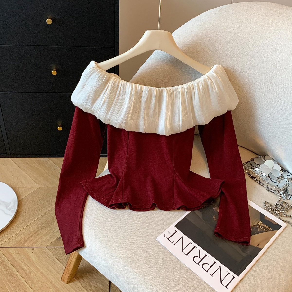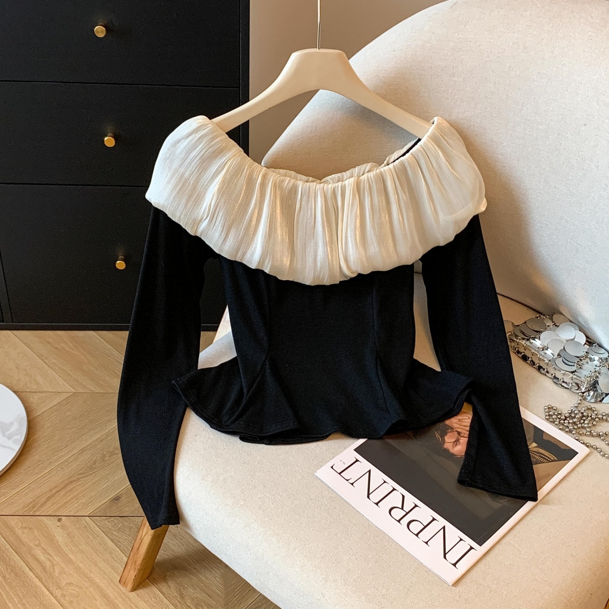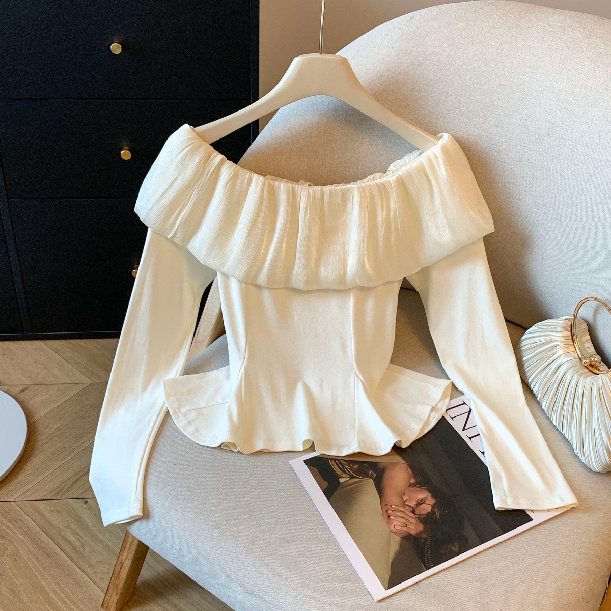 실사 2025 년 새로운 가을 겨울철 쉬폰 오프숄더 달콤함 단색 긴팔 맨위 기본 셔츠