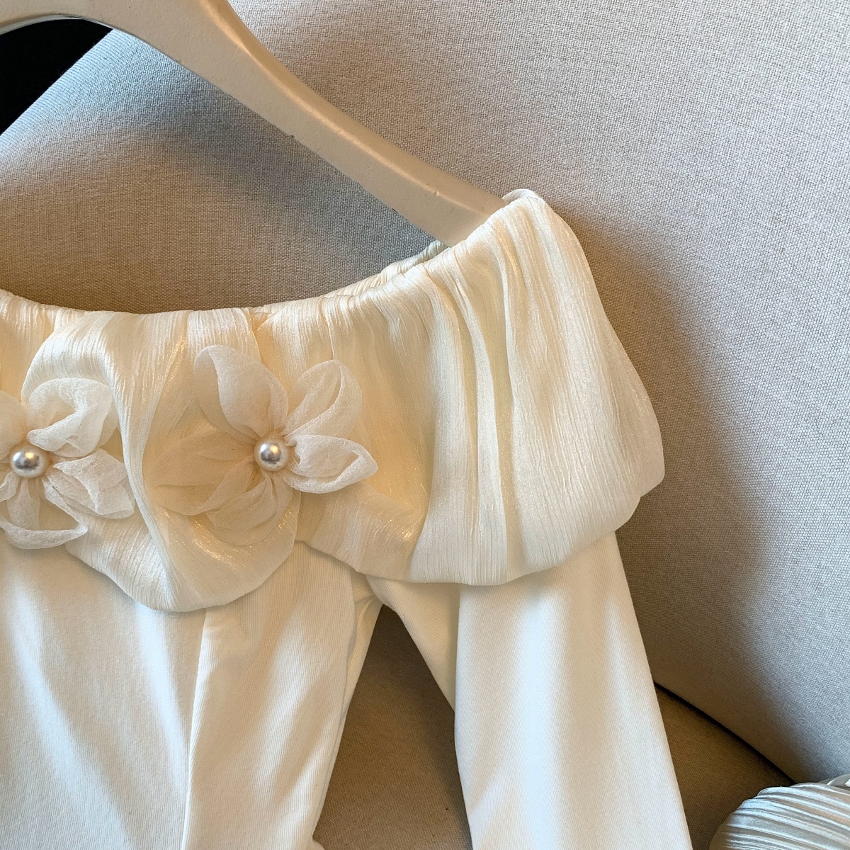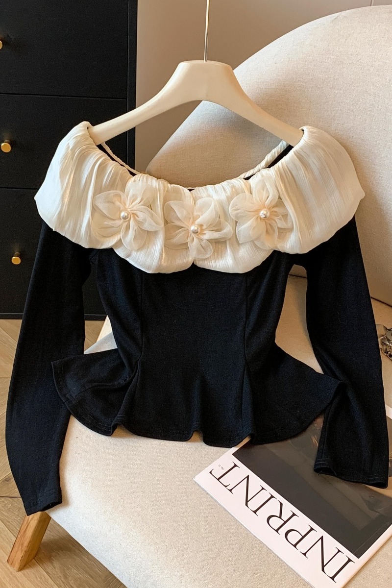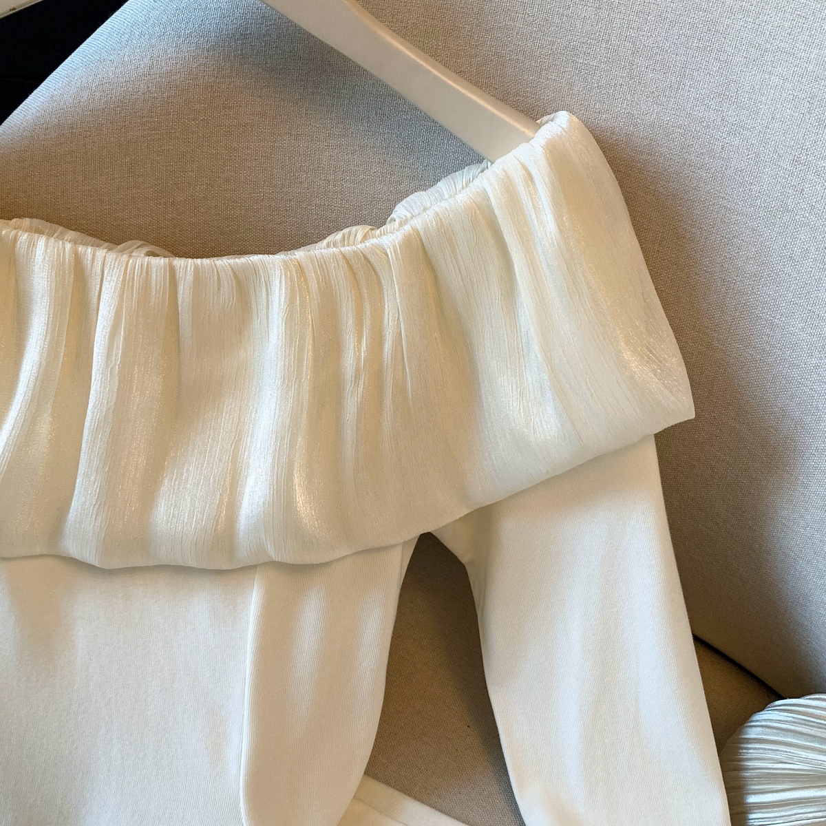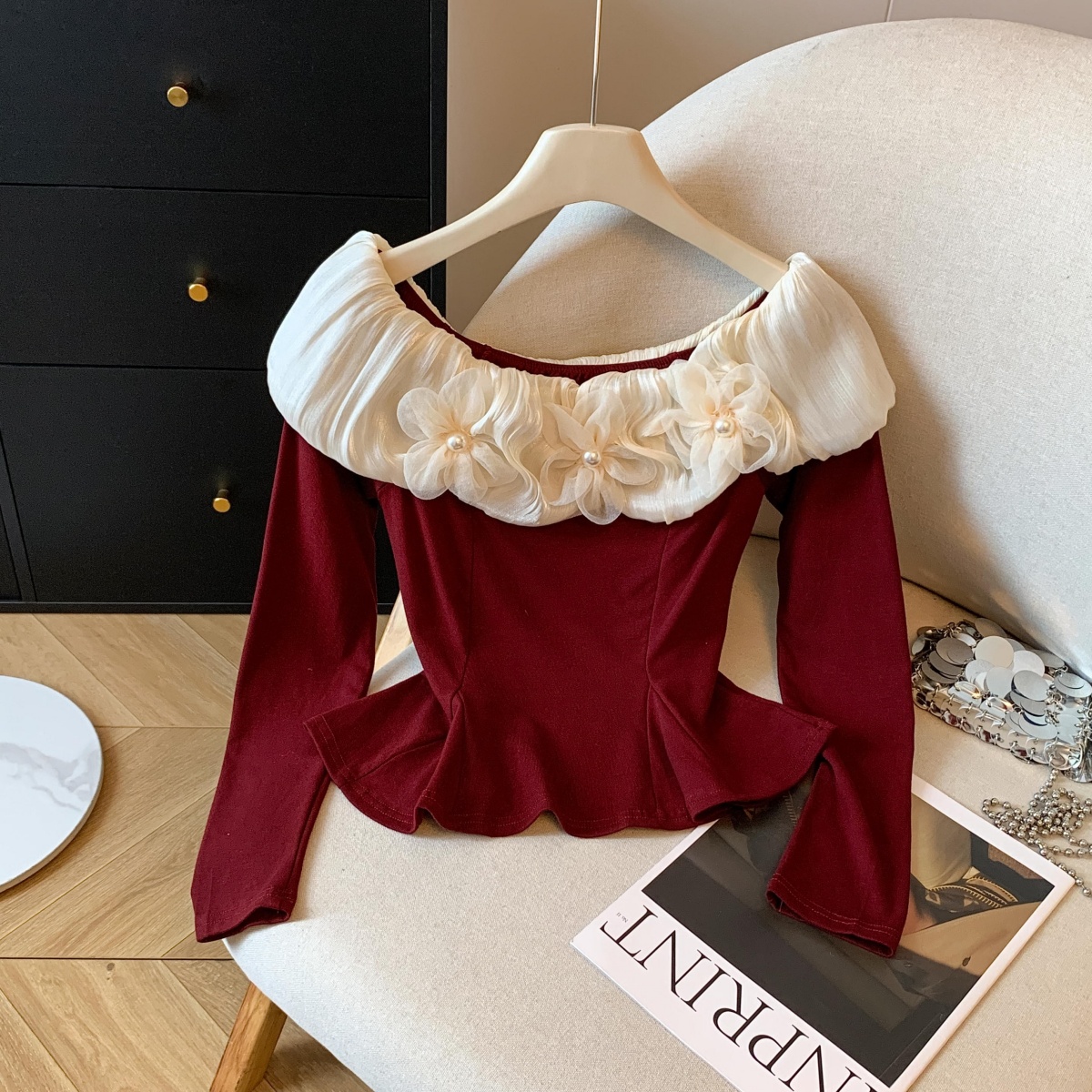 실사 2025 년 새로운 가을 겨울철 쉬폰 오프숄더 달콤함 단색 긴팔 맨위 기본 셔츠