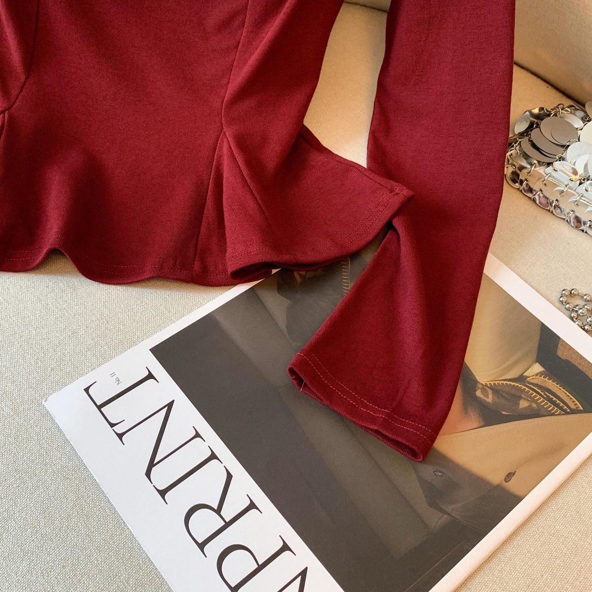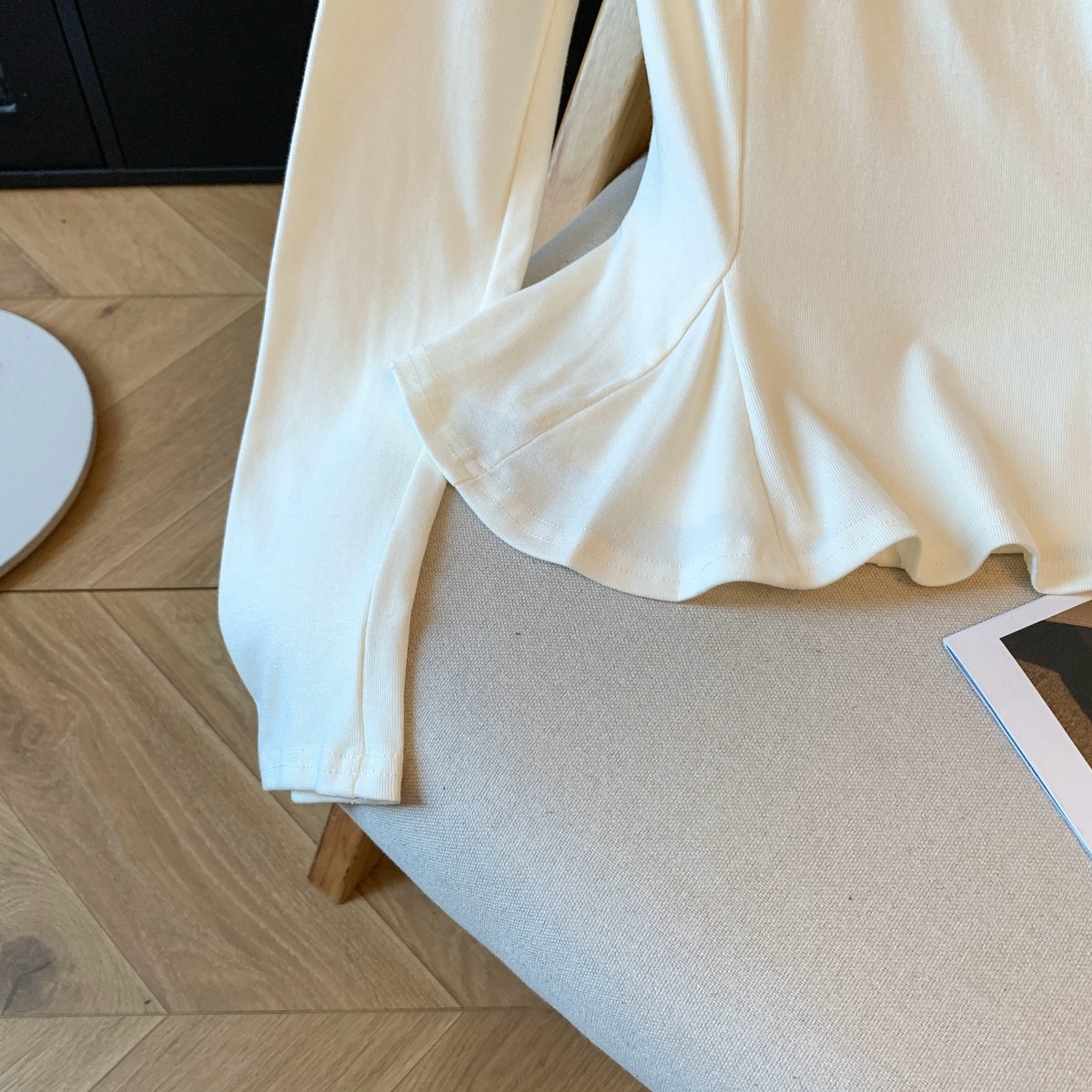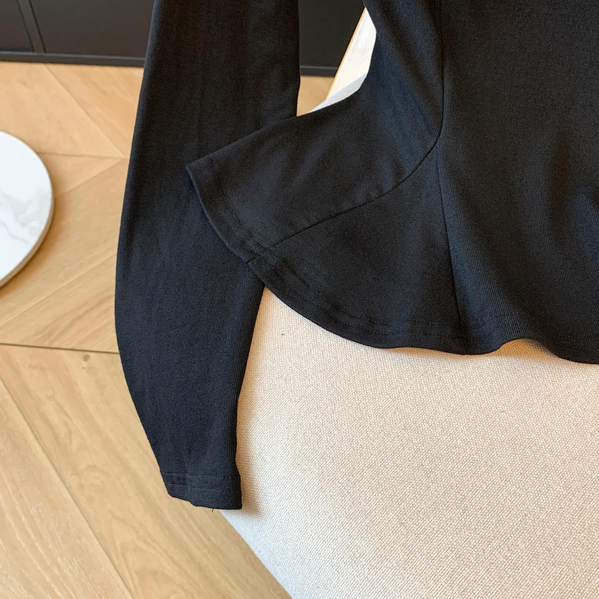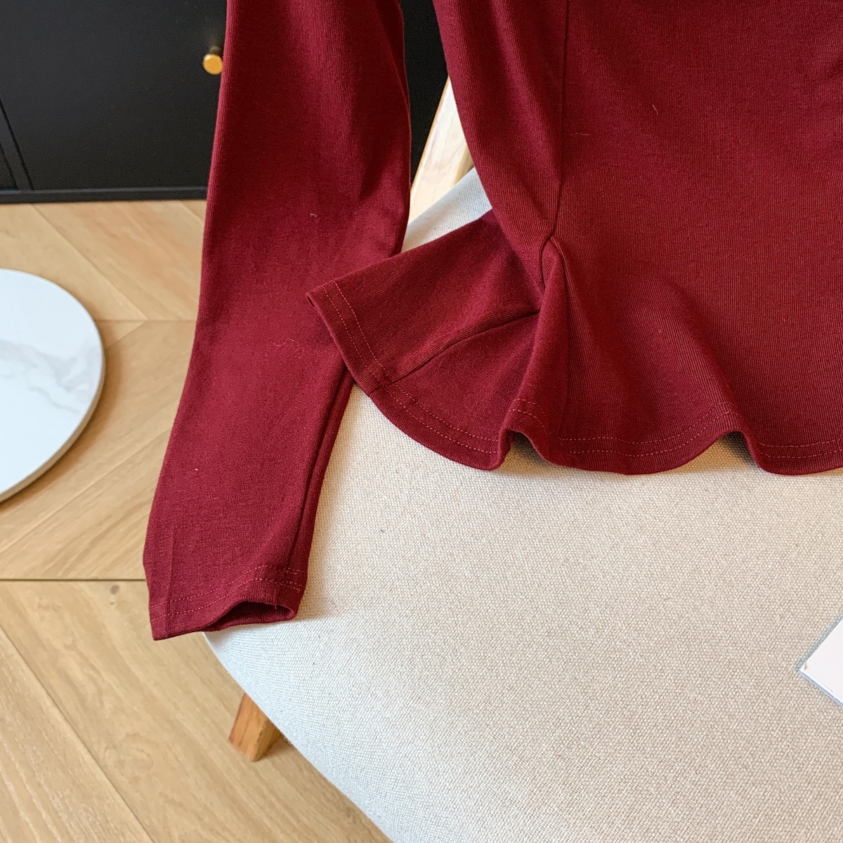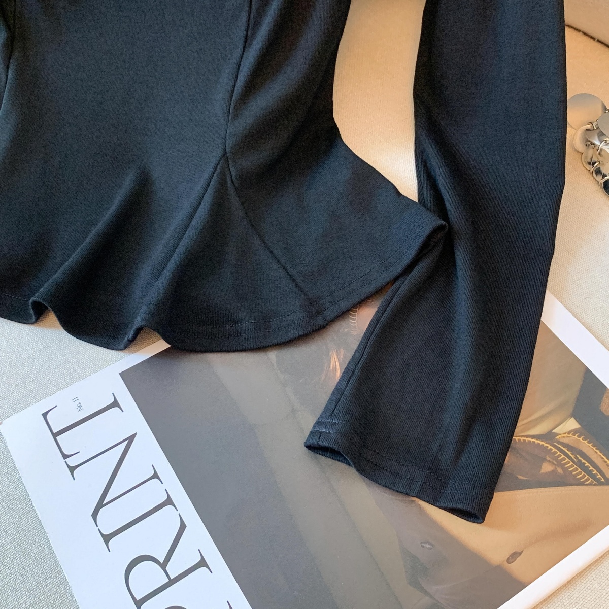 실사 작은 샤넬 스타일 프릴 긴팔 티셔츠 여성 가을 겨울 순수한 욕망 오프숄더 맨위 아름다운 기본 셔츠 인사이드 가져 가라.
