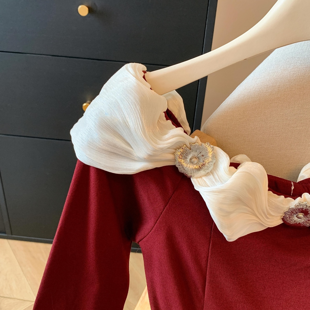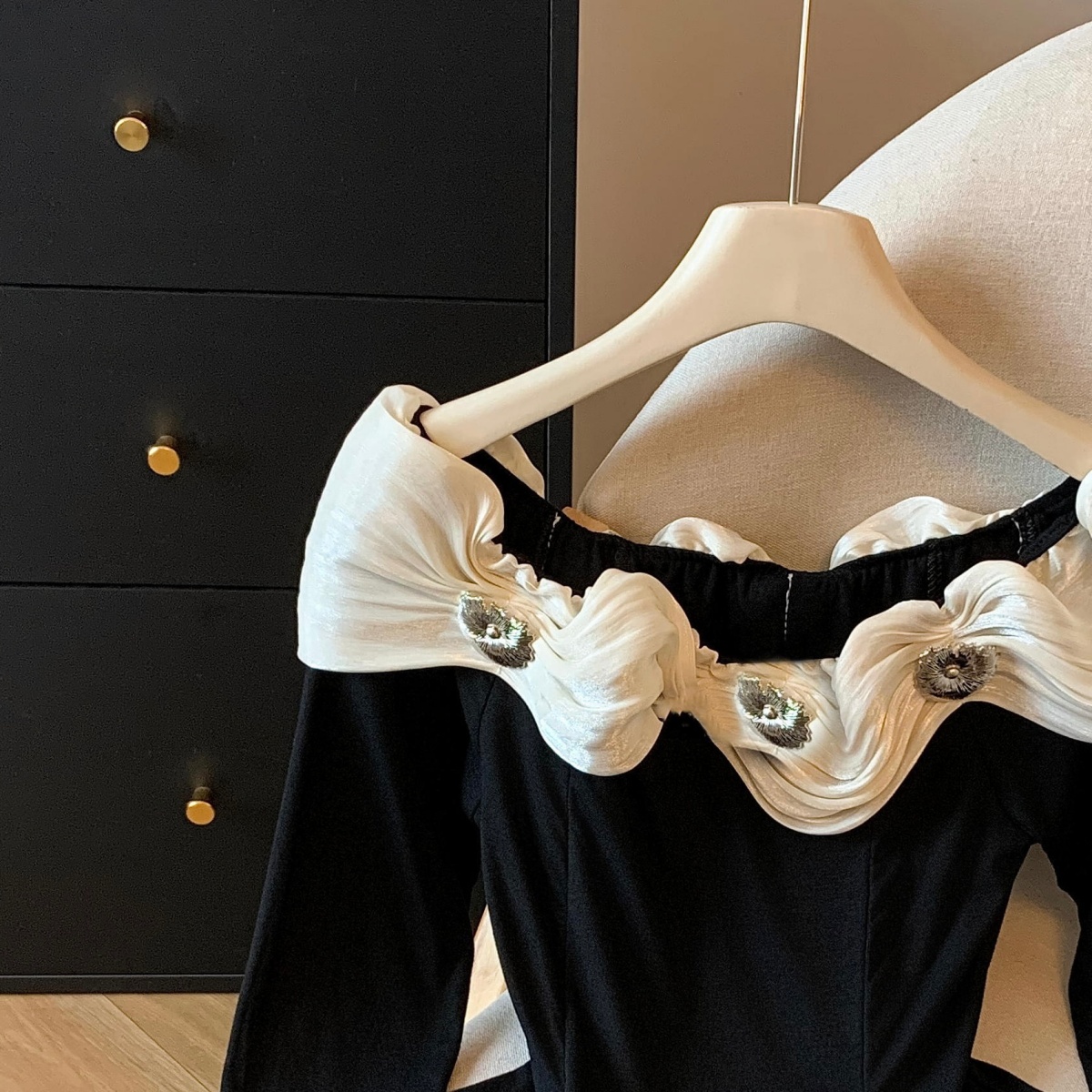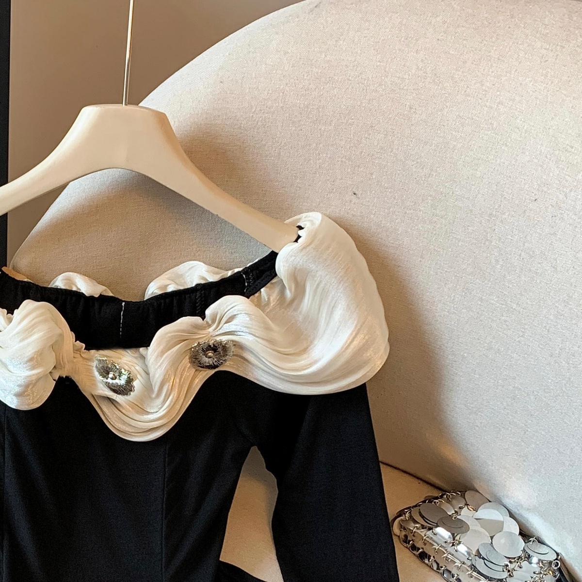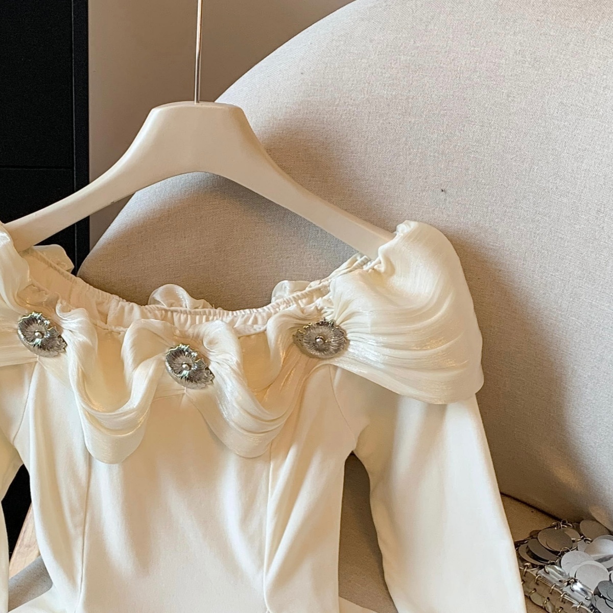 실사 2025 년 새로운 가을 겨울철 쉬폰 오프숄더 달콤함 단색 긴팔 맨위 기본 셔츠