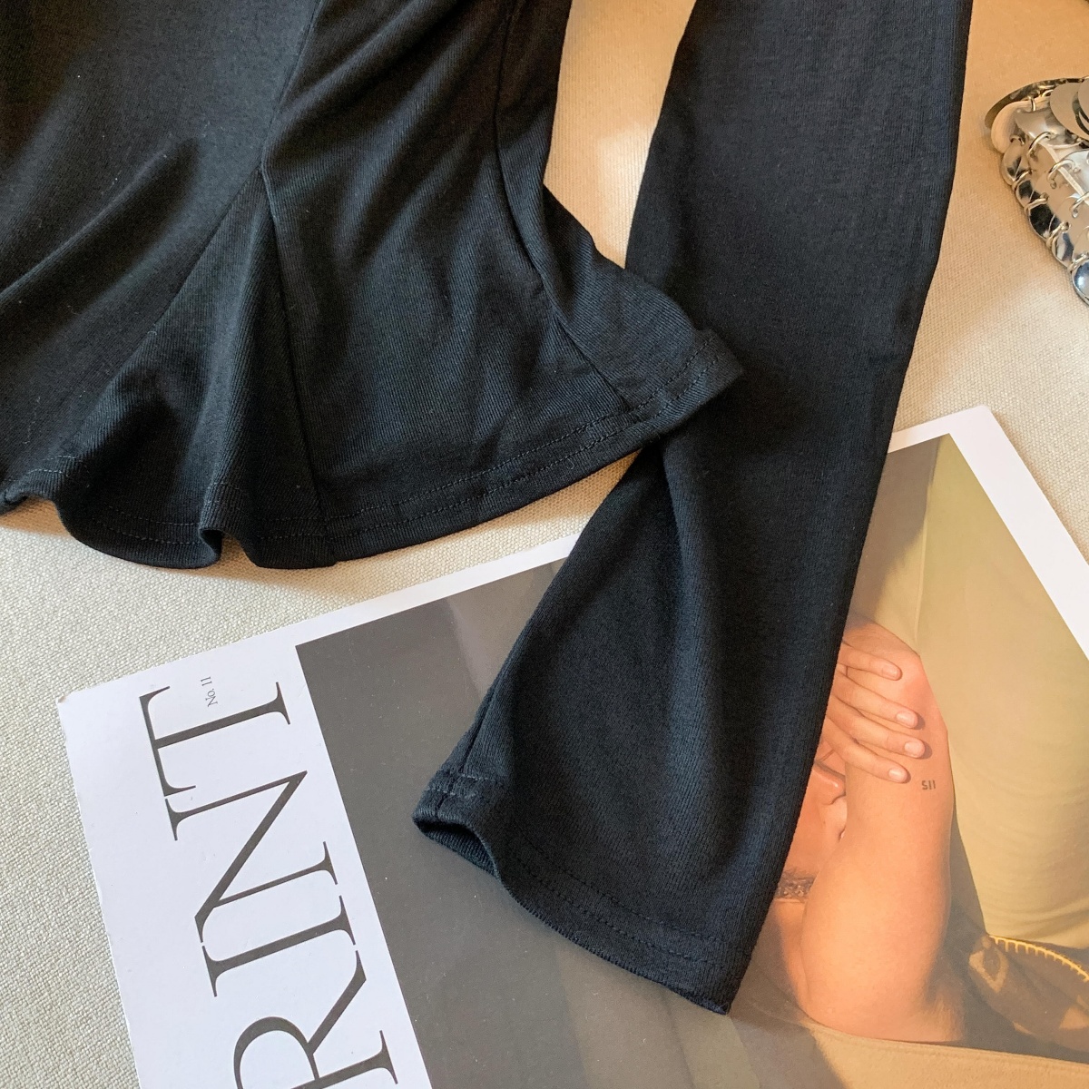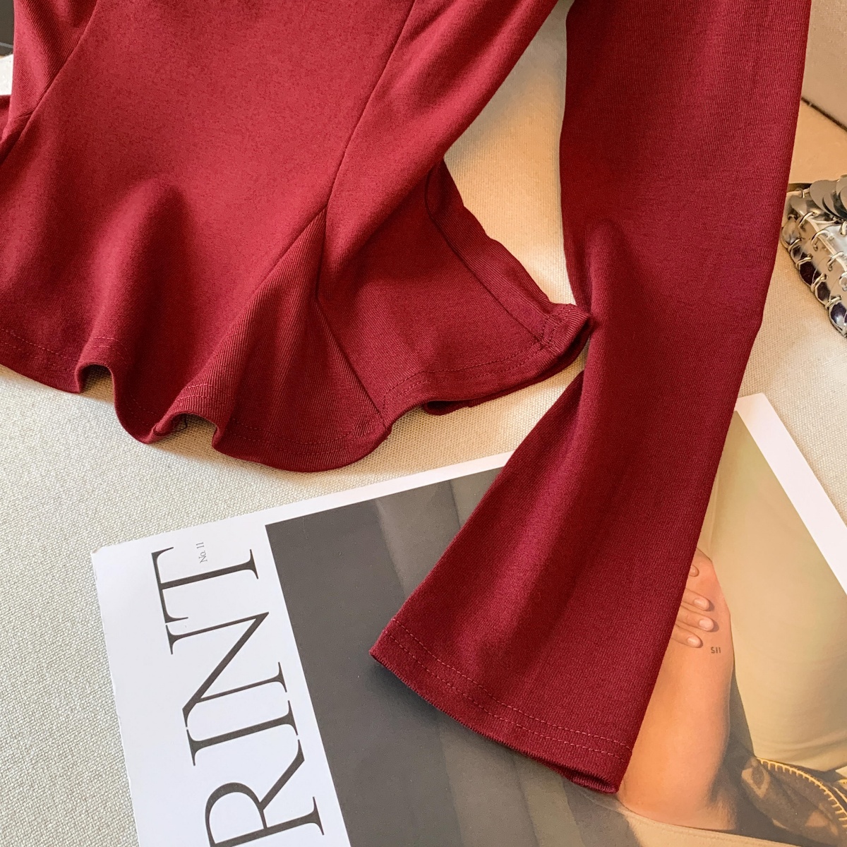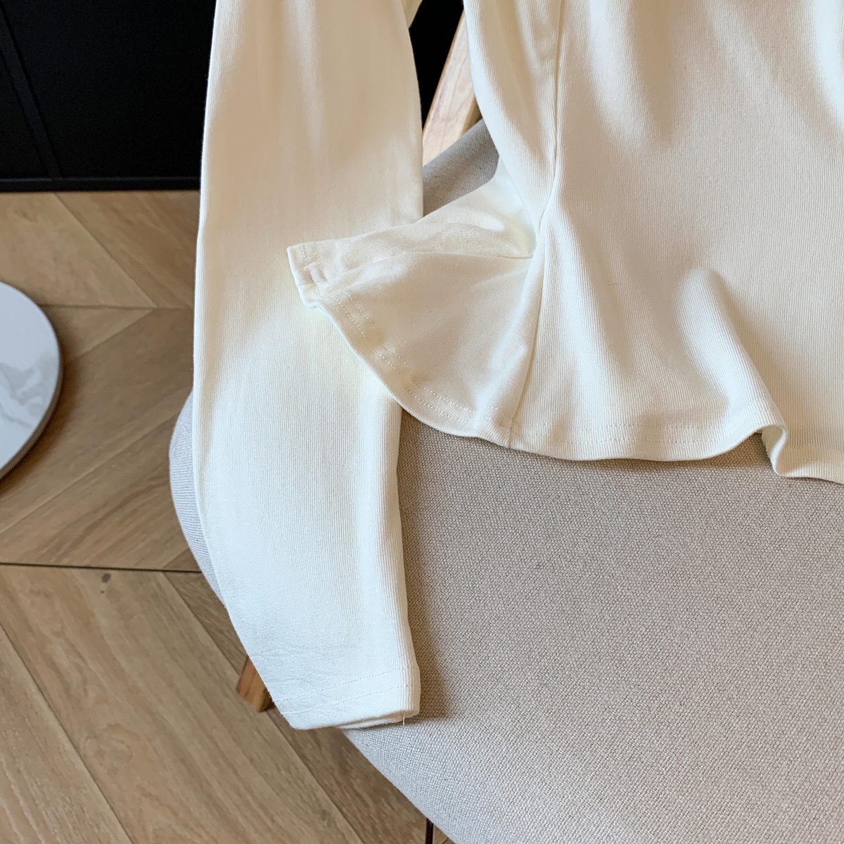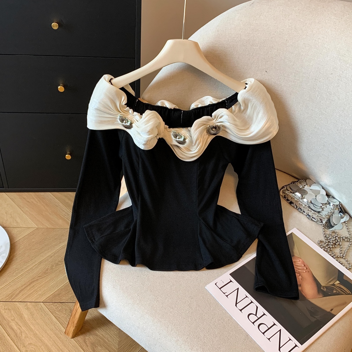 실사 작은 샤넬 스타일 프릴 긴팔 티셔츠 여성 가을 겨울 순수한 욕망 오프숄더 맨위 아름다운 기본 셔츠 인사이드 가져 가라.