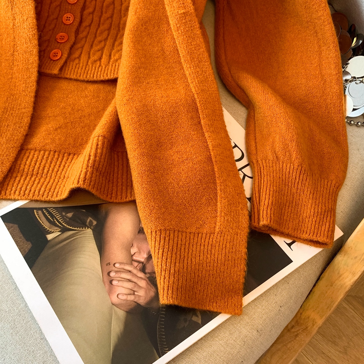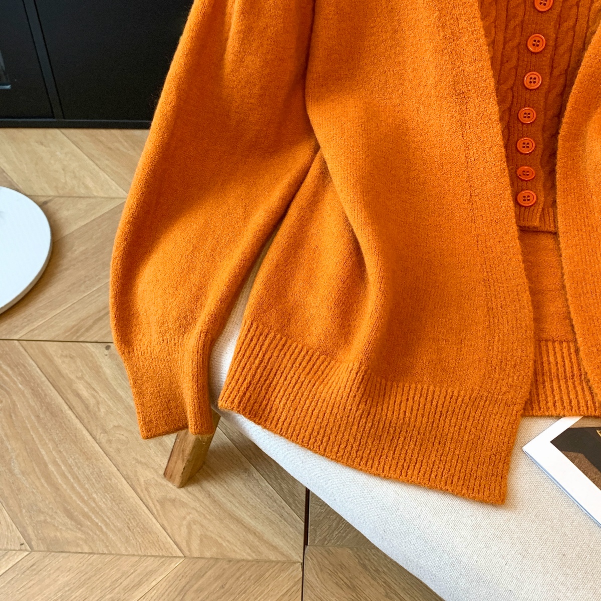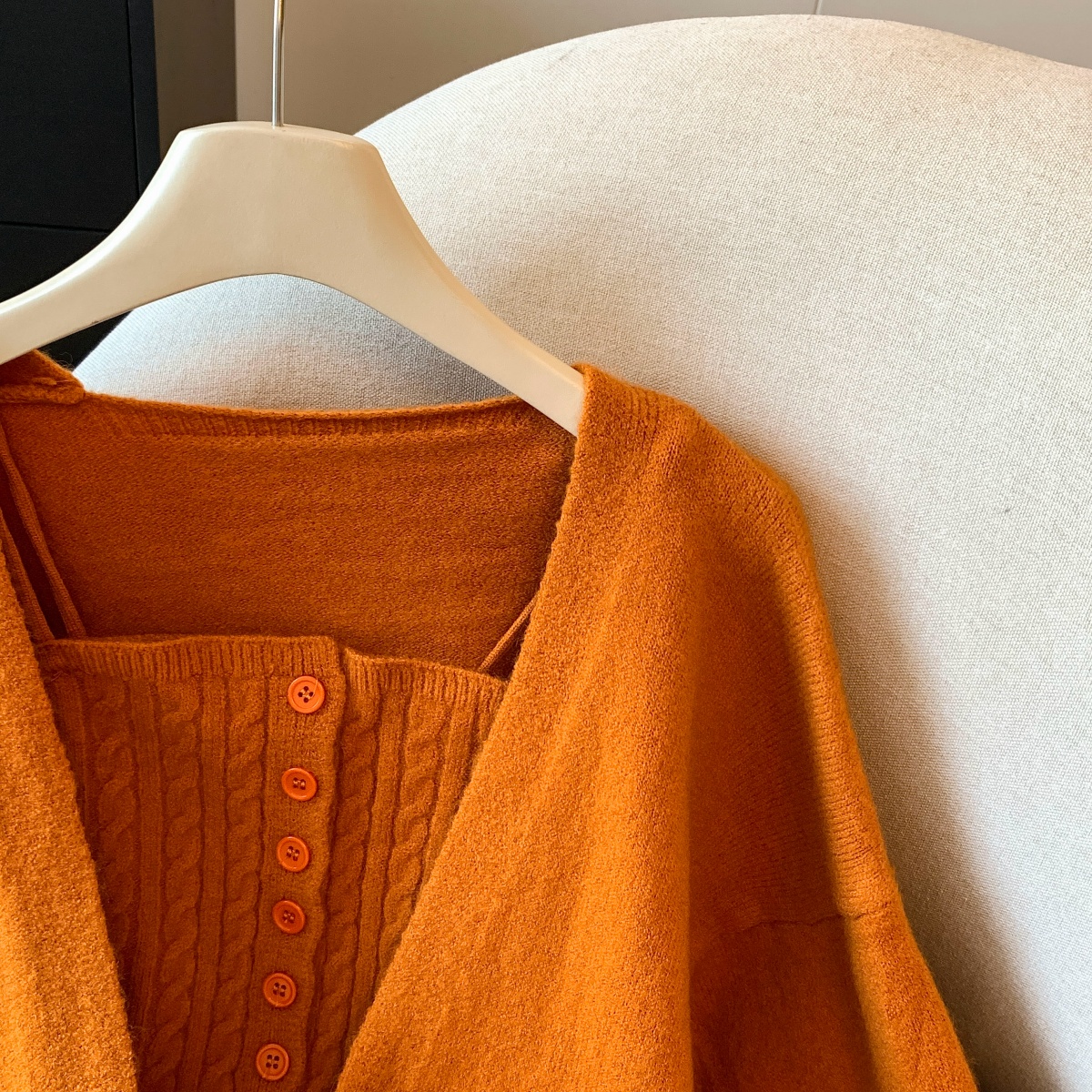 실사 부드러운 바람 화이트 긴팔 니트 오픈 가디건 여성 코트 인사이드 가져 가라. 민소매 꽈배기 캐미솔 세트