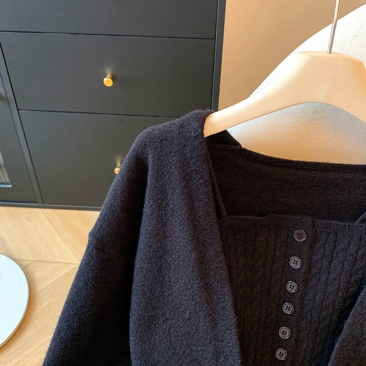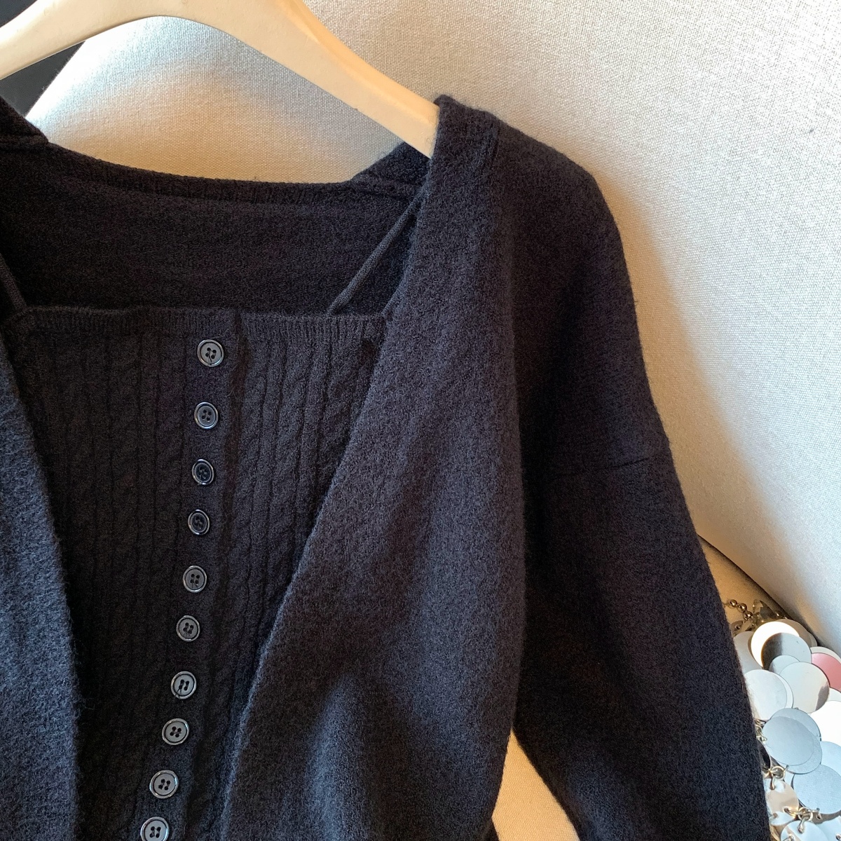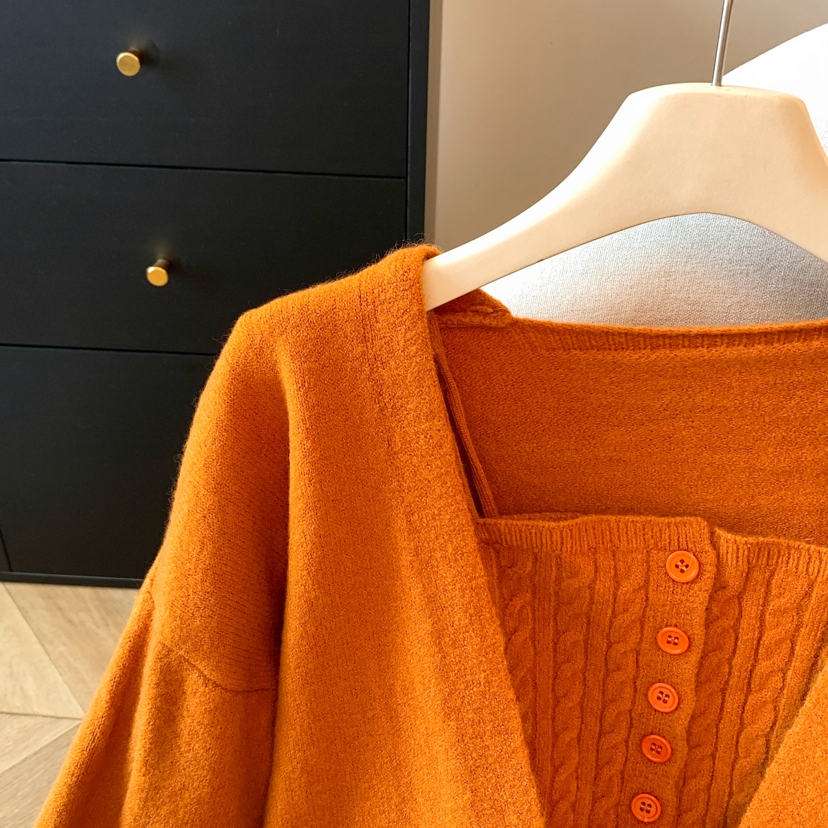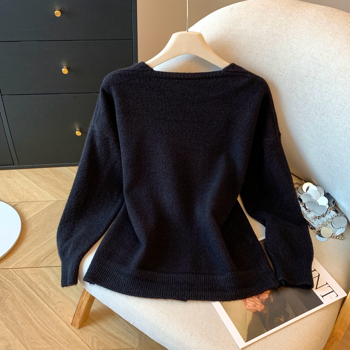 실사 V넥 니트 기본 셔츠 여성 인사이드 가져 가라. 가을 얇은 스타일 2025 새로운 디자인 센스 작은 대중 아니요 명중 섹션 맨위