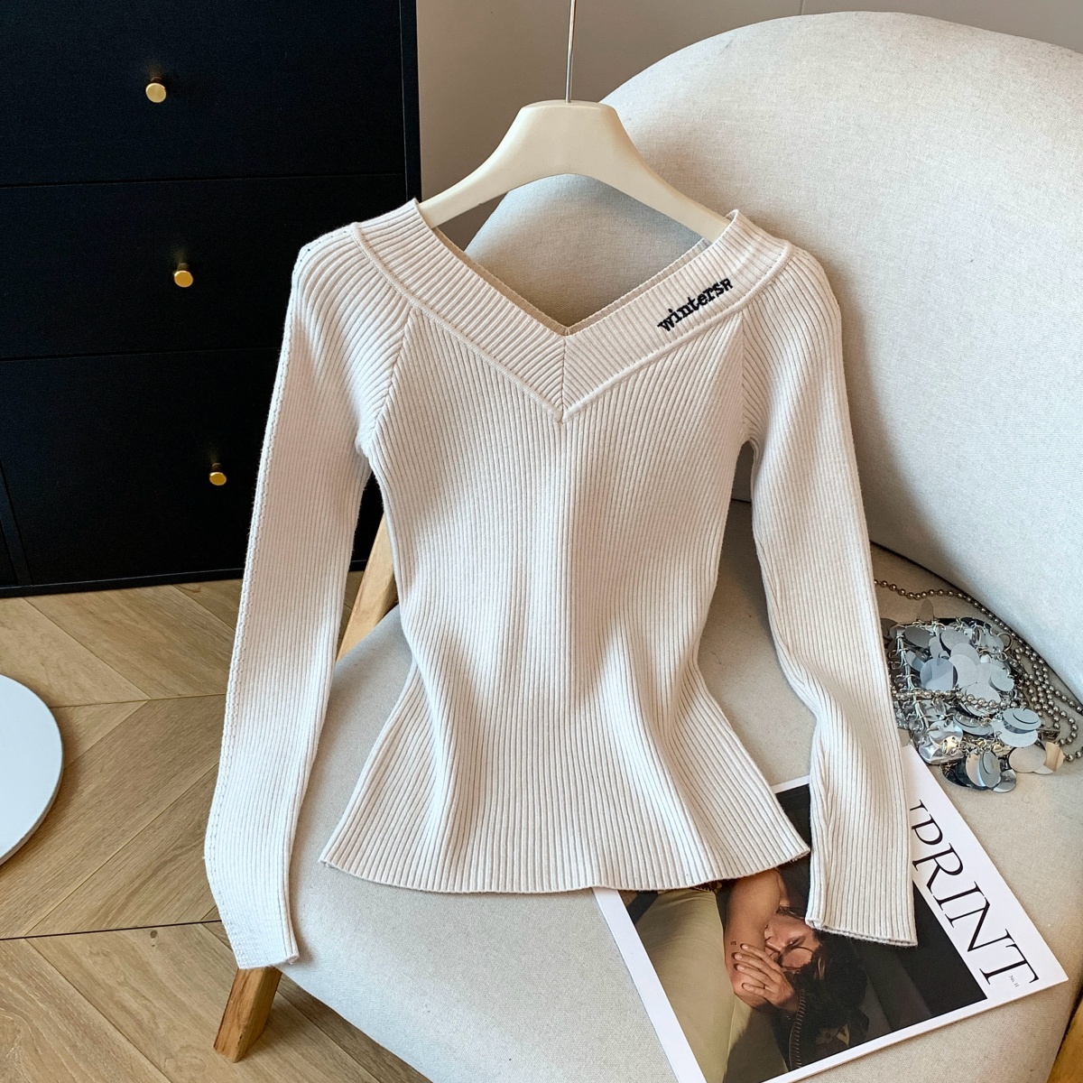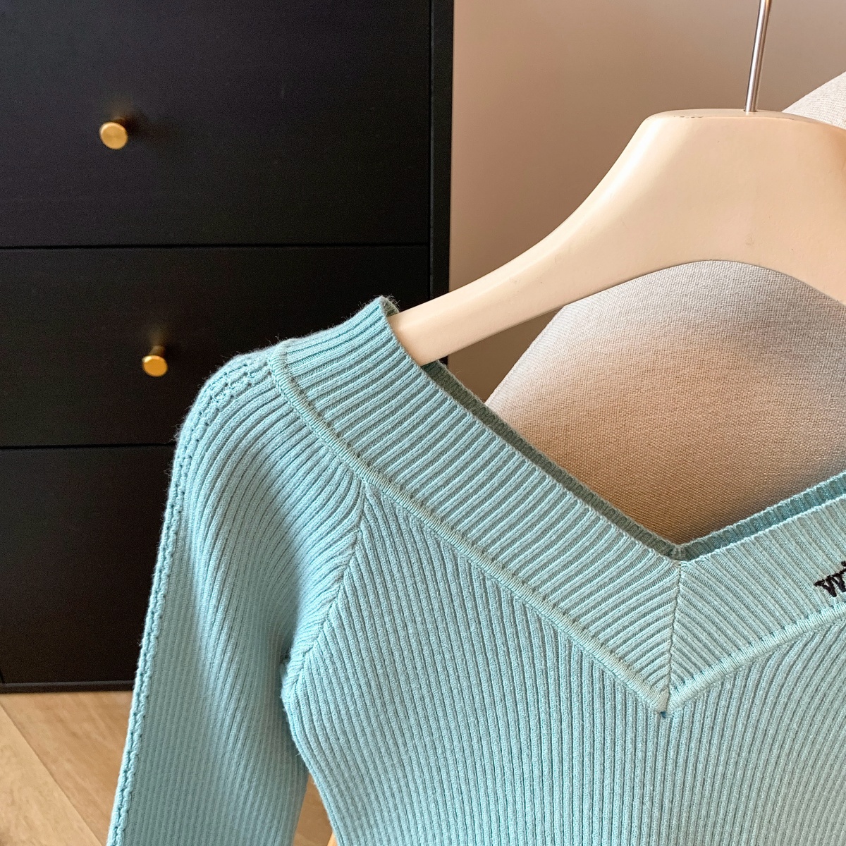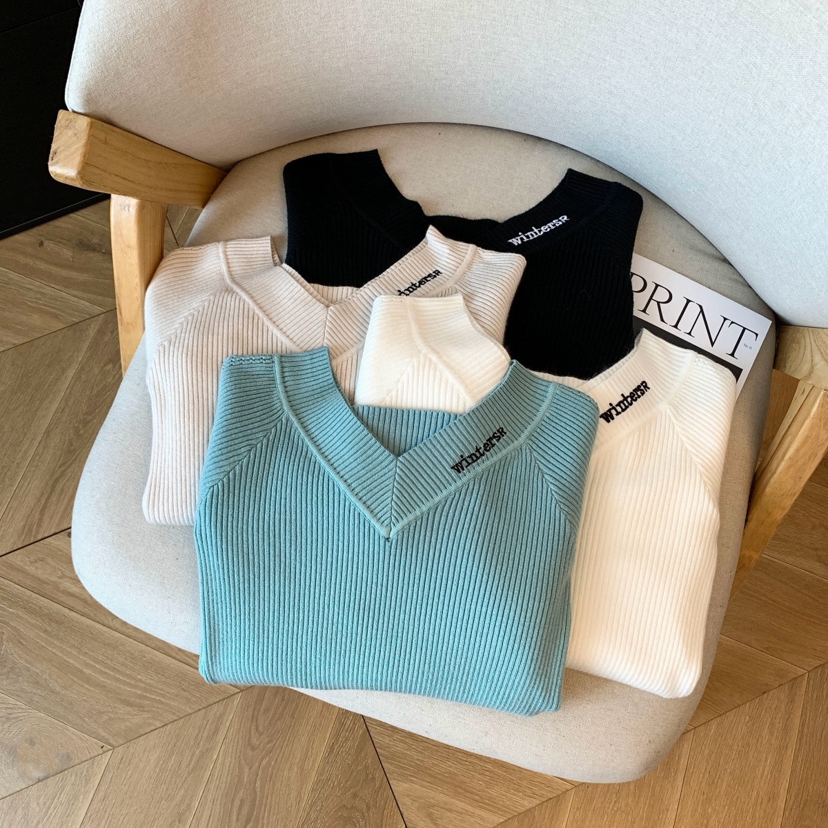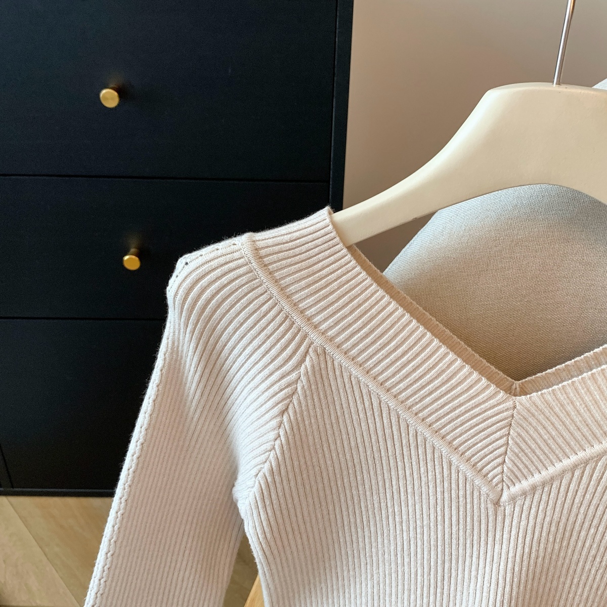 실사 V넥 니트 기본 셔츠 여성 인사이드 가져 가라. 가을 얇은 스타일 2025 새로운 디자인 센스 작은 대중 아니요 명중 섹션 맨위