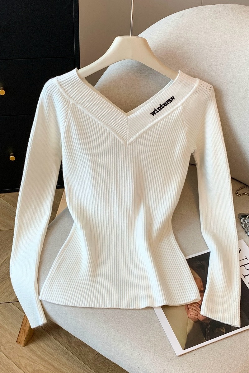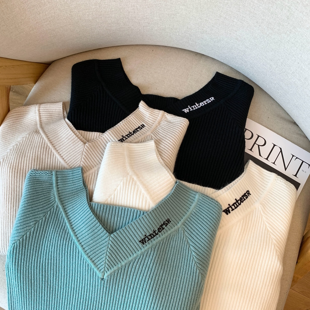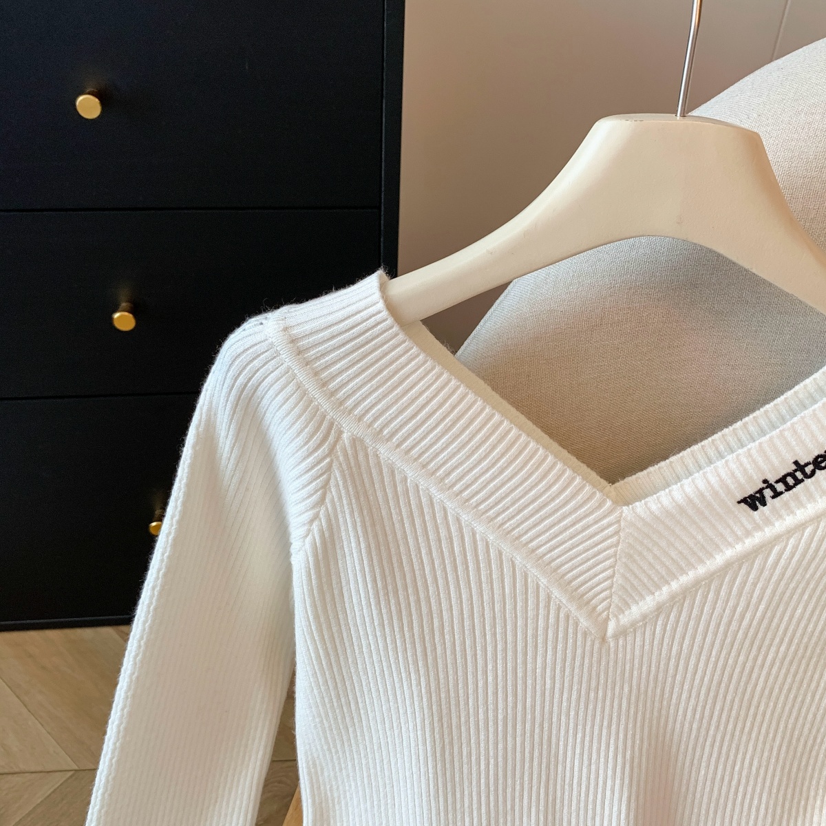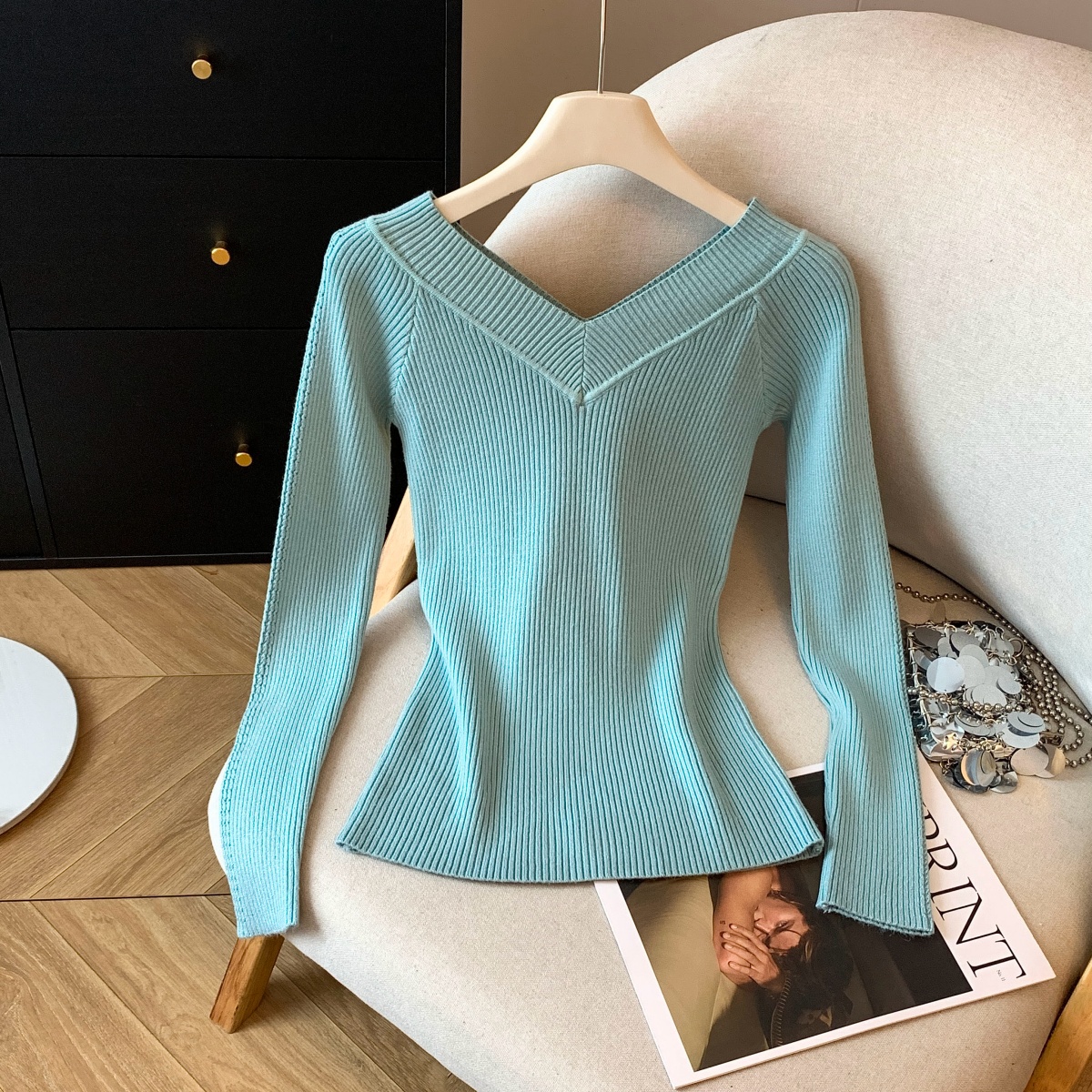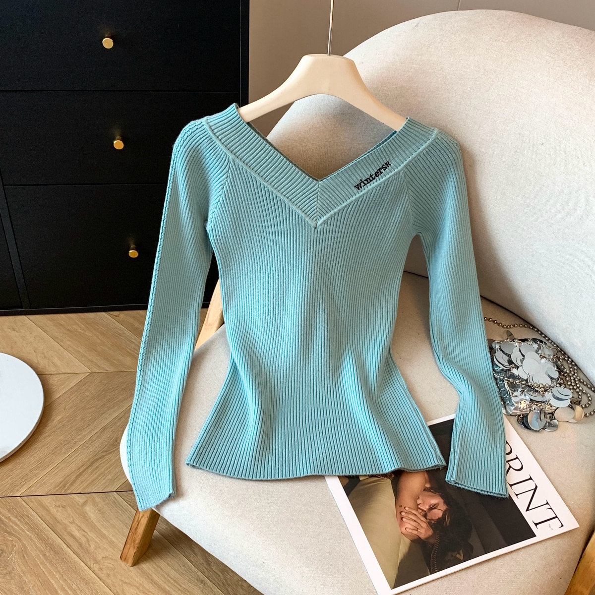 실사 V넥 니트 기본 셔츠 여성 인사이드 가져 가라. 가을 얇은 스타일 2025 새로운 디자인 센스 작은 대중 아니요 명중 섹션 맨위