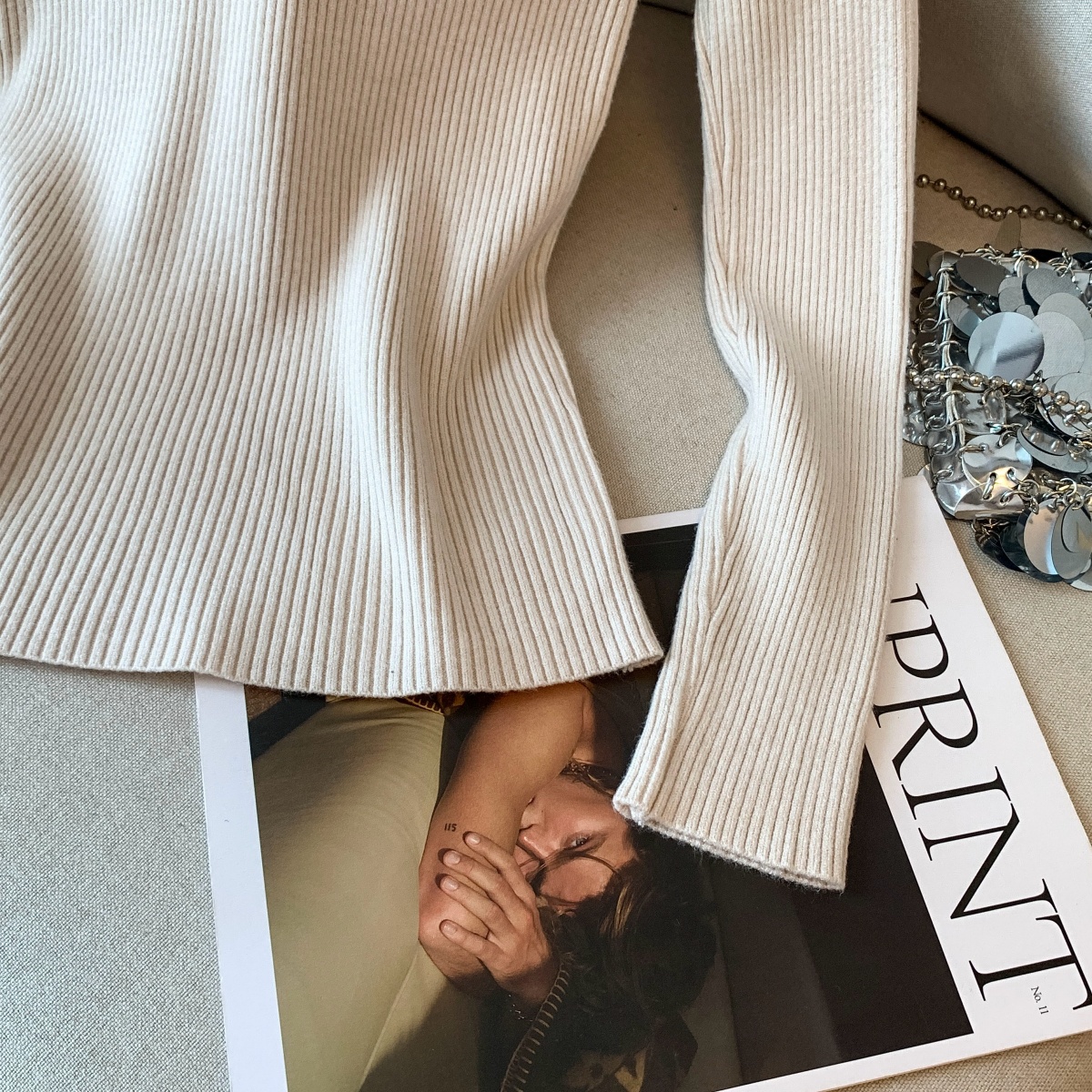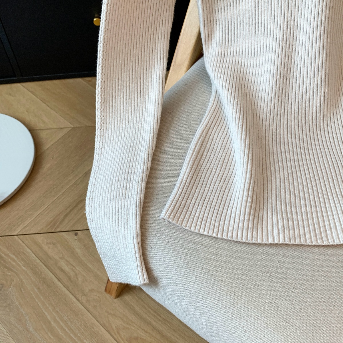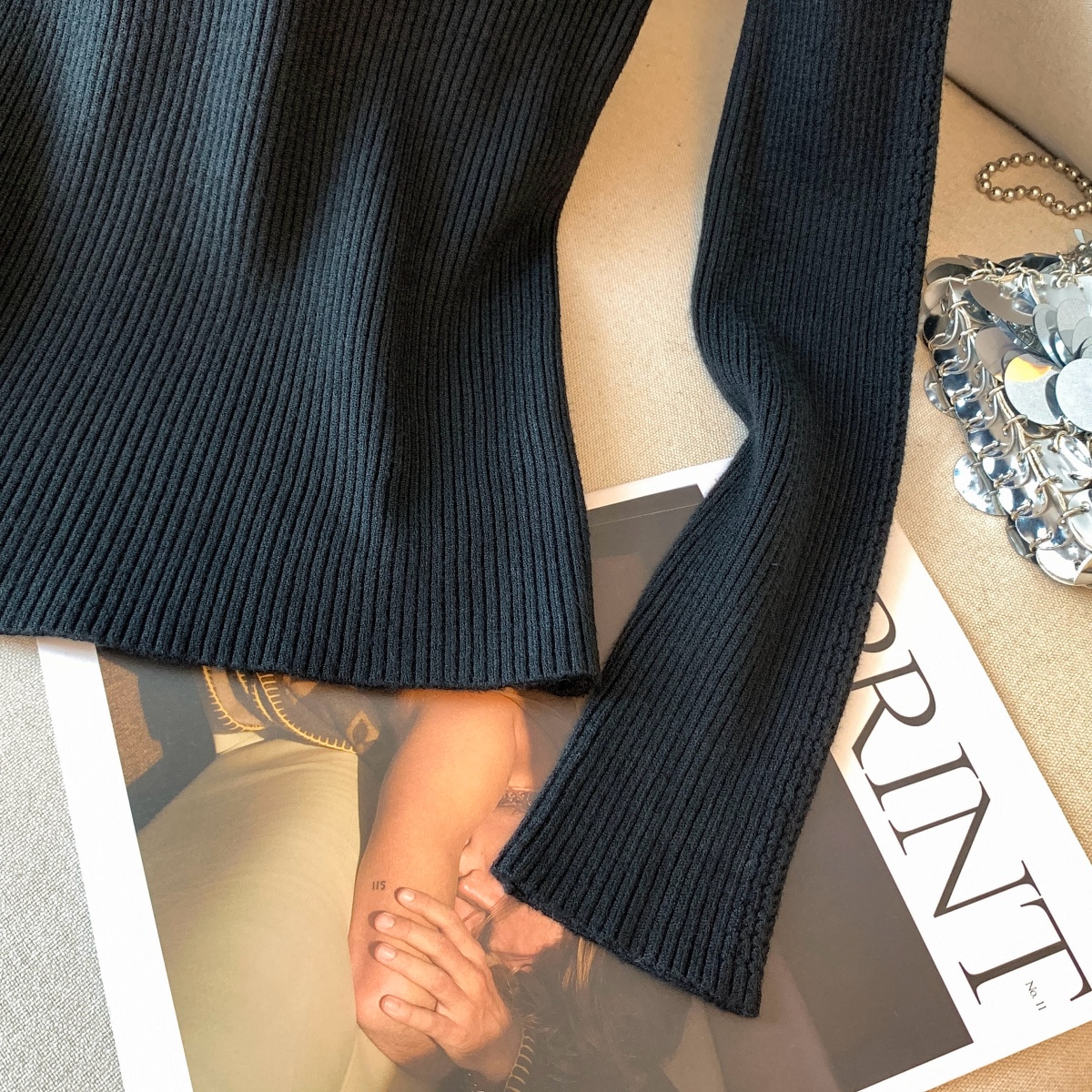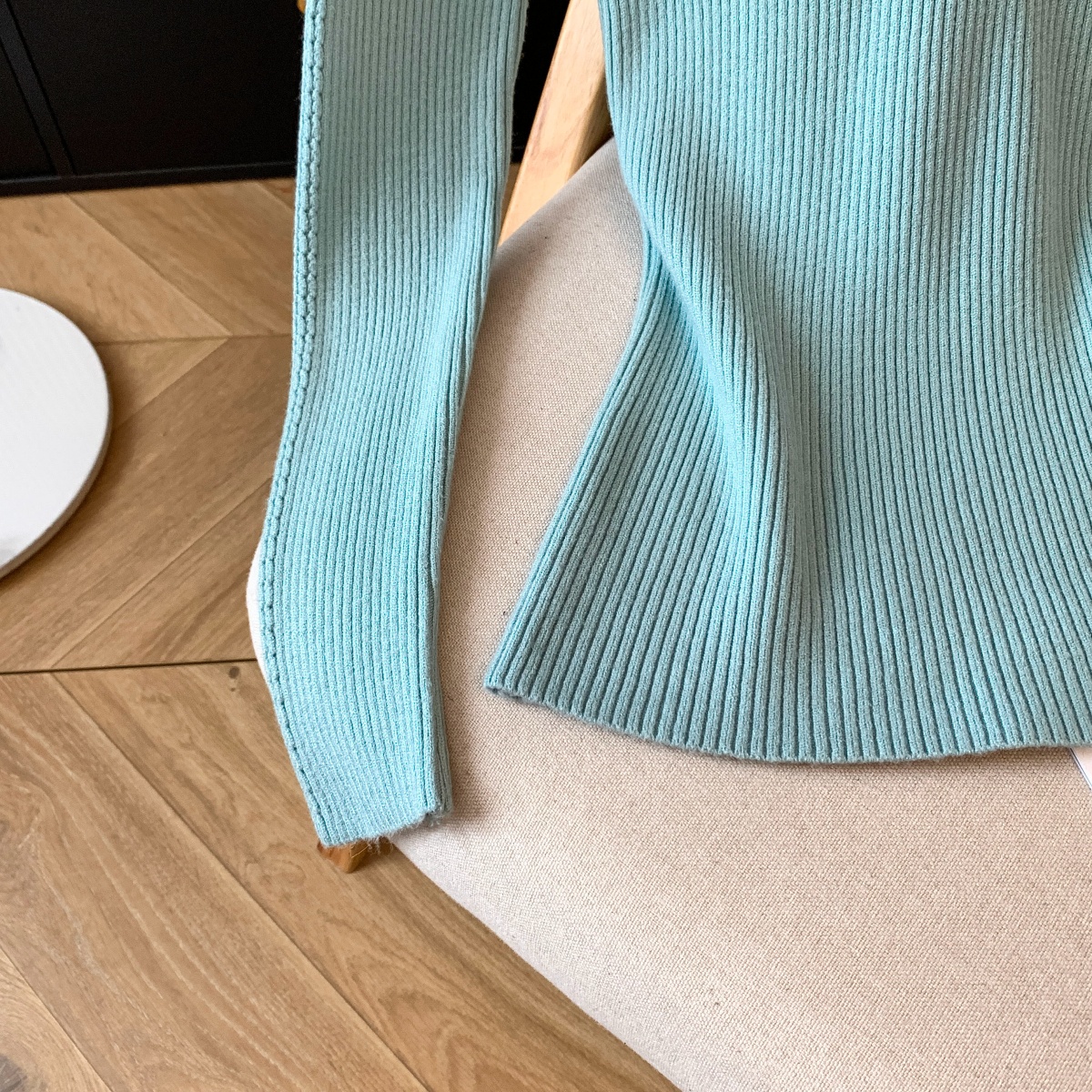 실사 2025 가을 겨울철 새로운 한국 스타일 인터넷 유명인 비스듬한 칼라 오프숄더 몸매 가꾸기 기본 셔츠 니트 스웨터 맨위