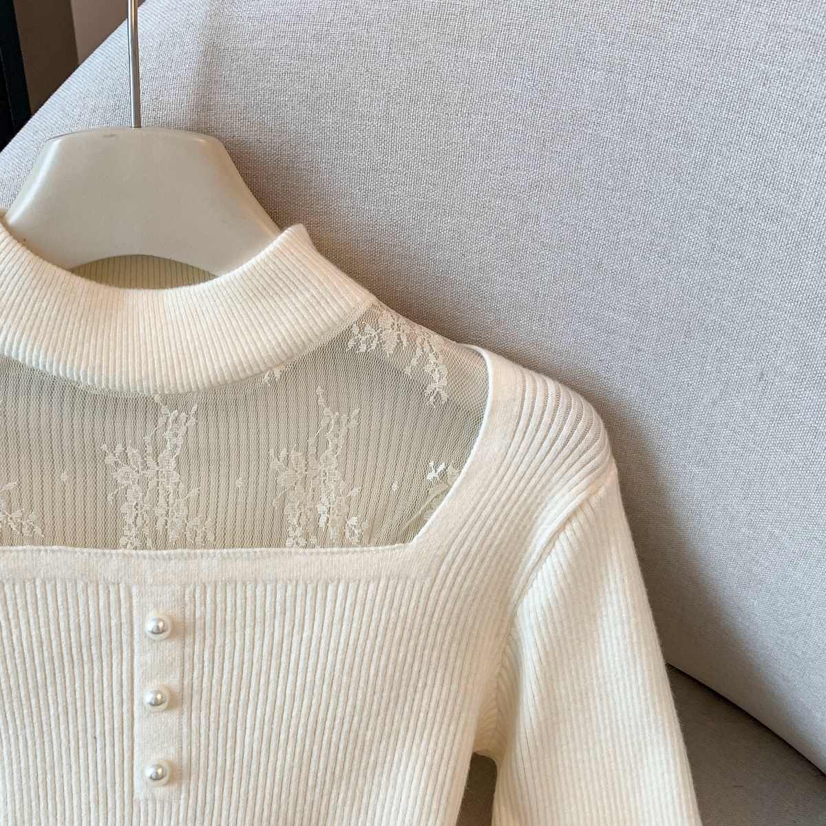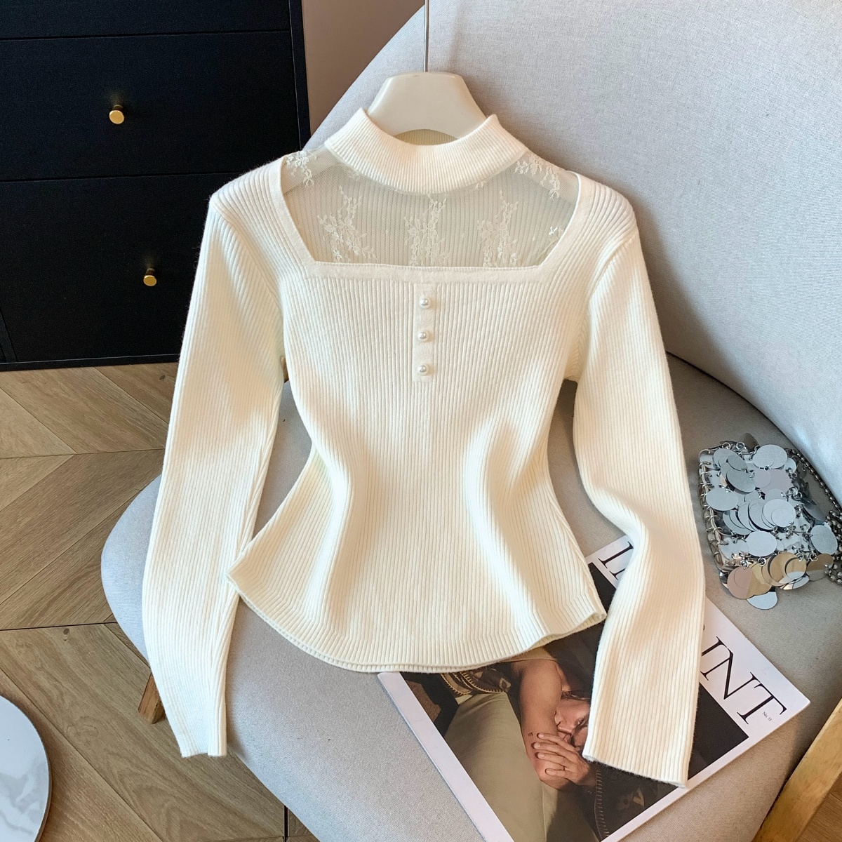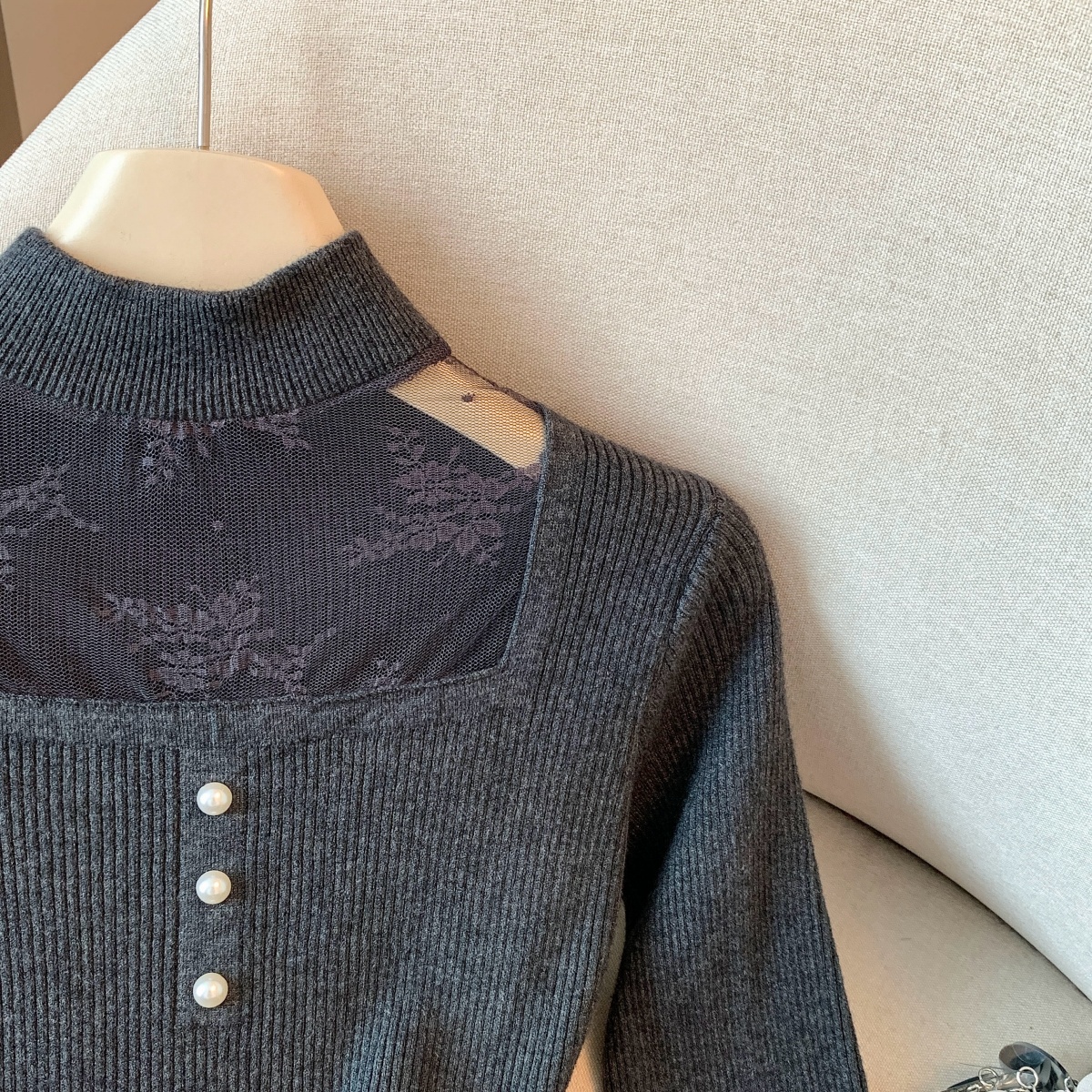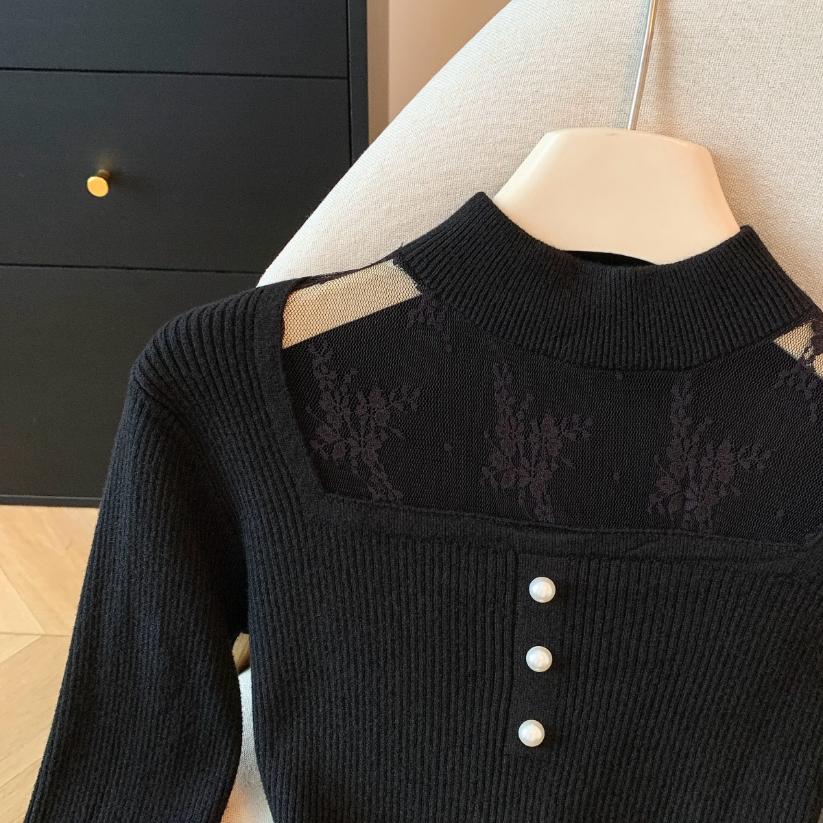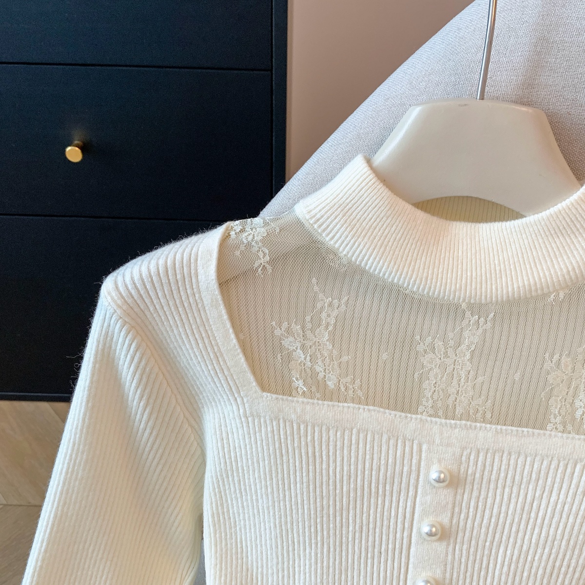실사 가을 겨울 빛 럭셔리 달콤한 스타일 레이스 조각 디자인 센스 긴팔 니트 스웨터 새로운 품격 연령 감소 맨위 여성