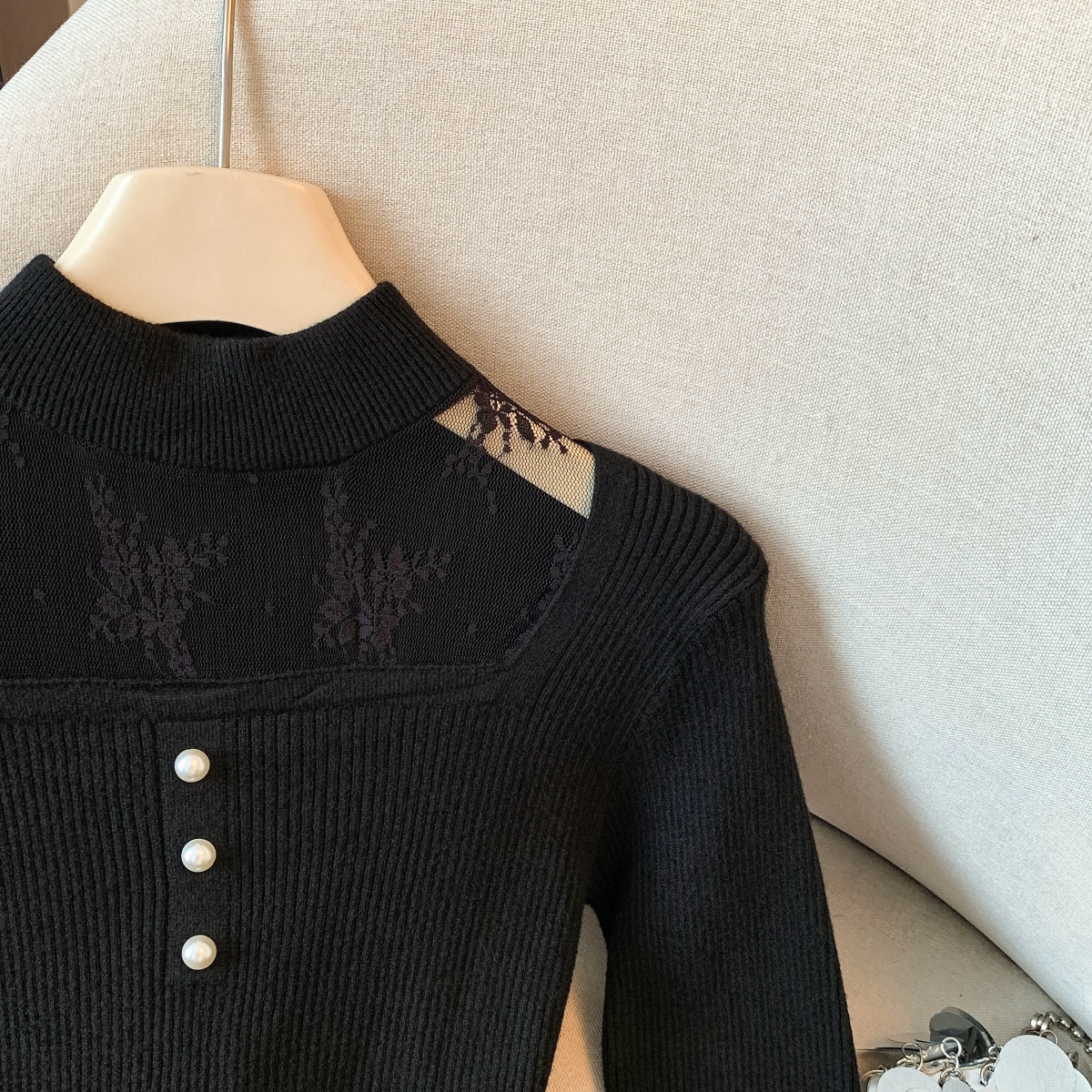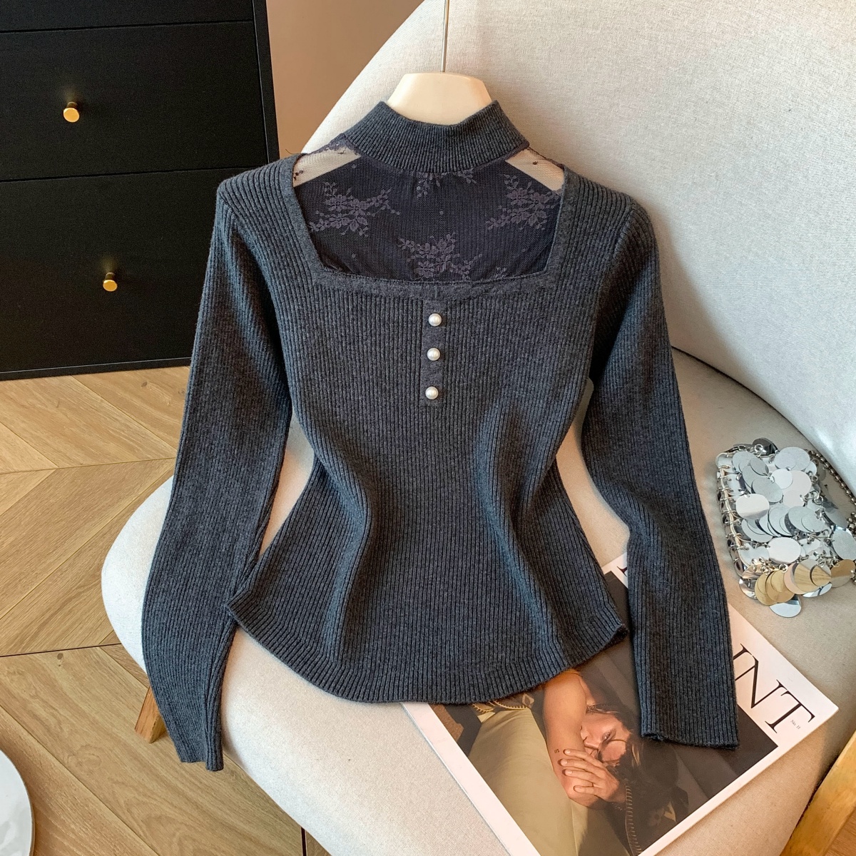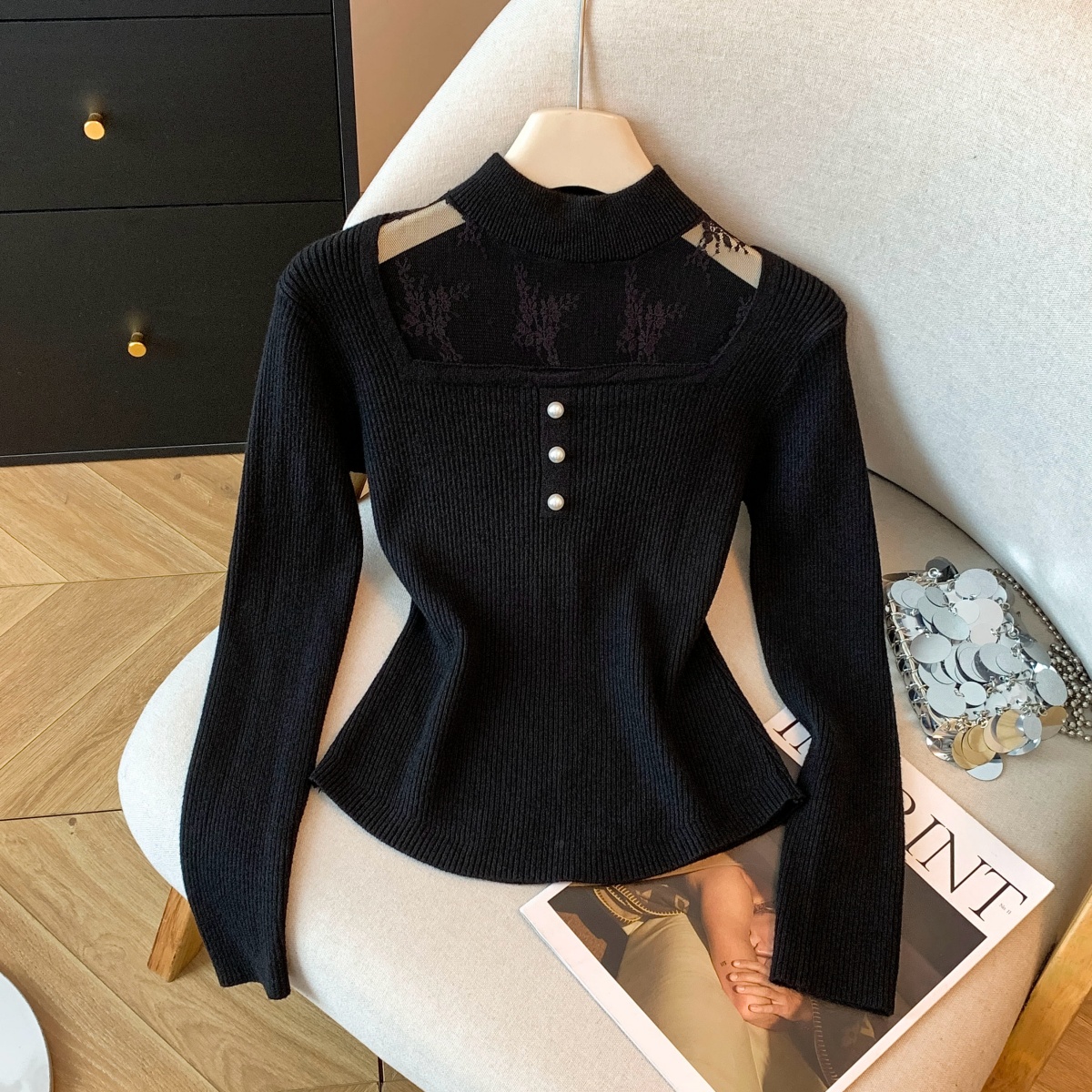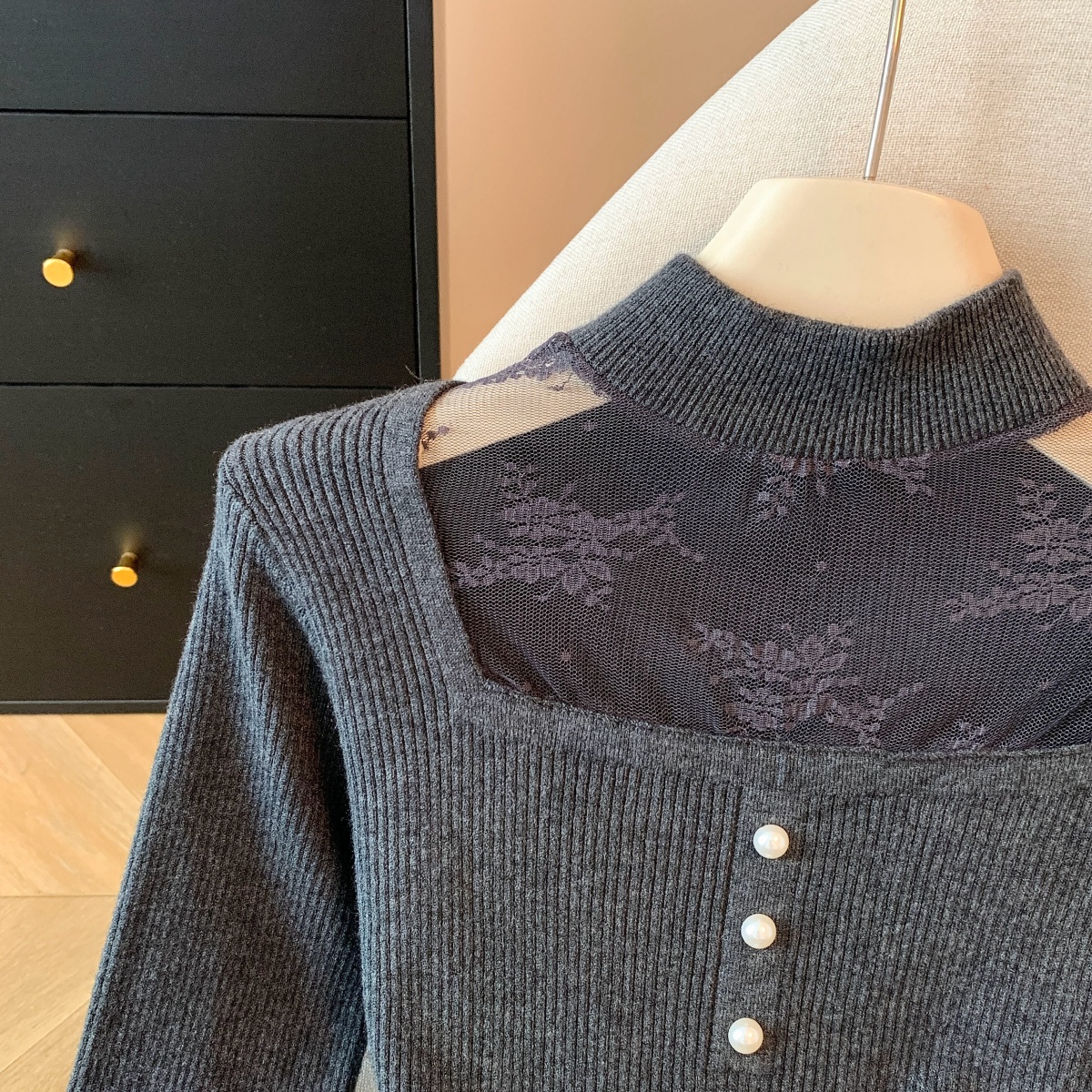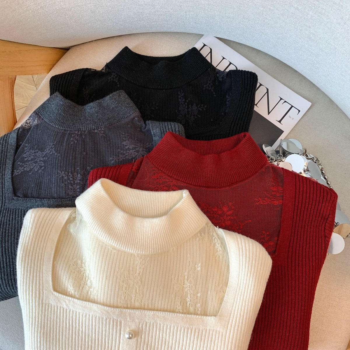 실사 가을 겨울 빛 럭셔리 달콤한 스타일 레이스 조각 디자인 센스 긴팔 니트 스웨터 새로운 품격 연령 감소 맨위 여성