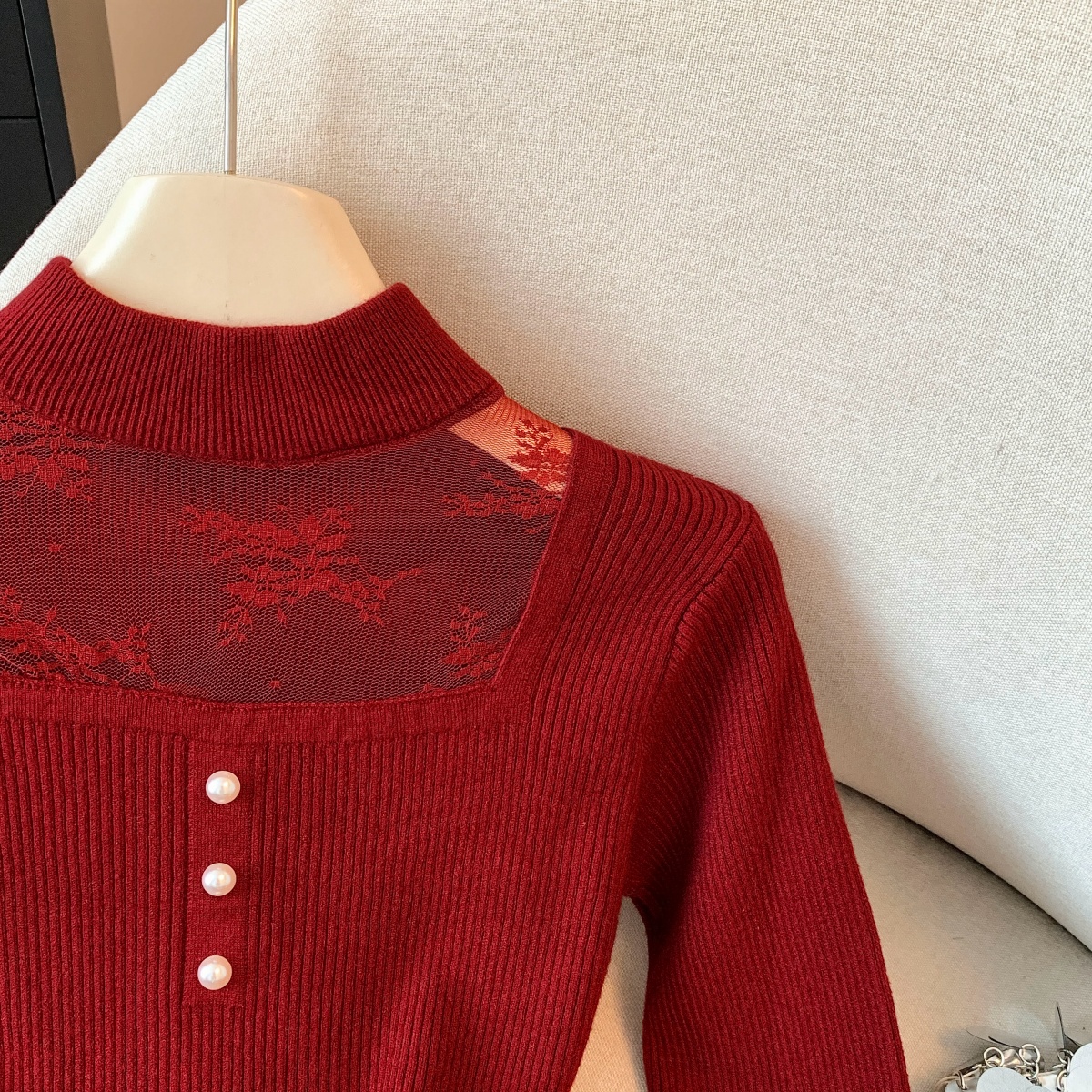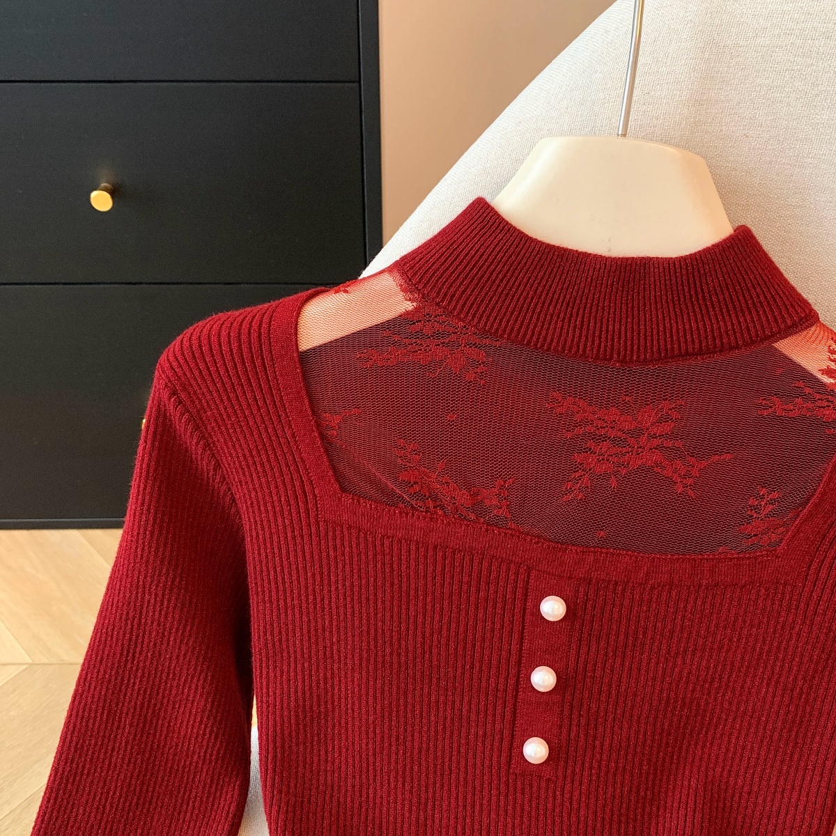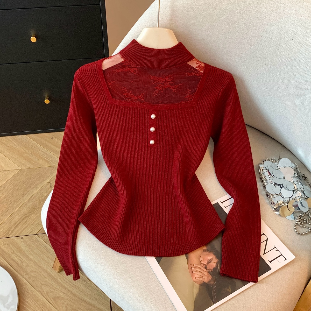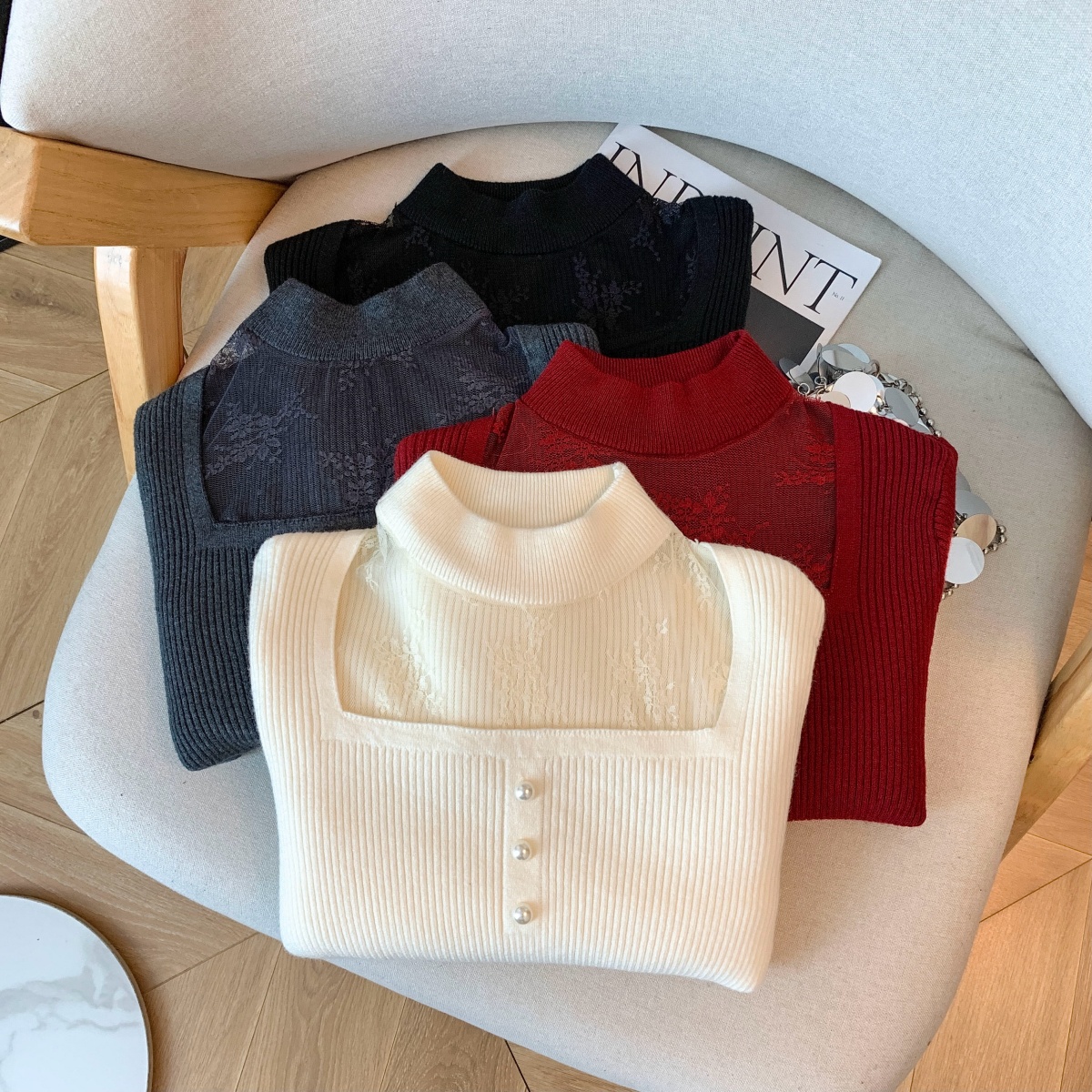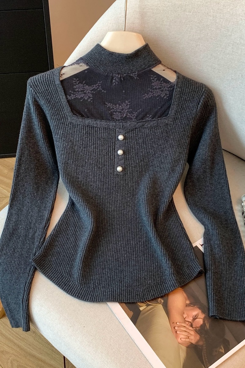 실사 가을 겨울 빛 럭셔리 달콤한 스타일 레이스 조각 디자인 센스 긴팔 니트 스웨터 새로운 품격 연령 감소 맨위 여성