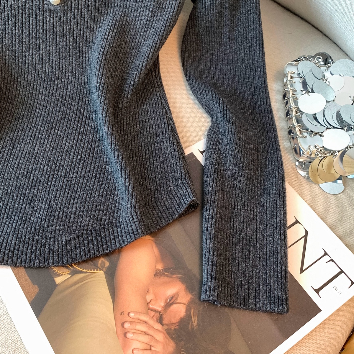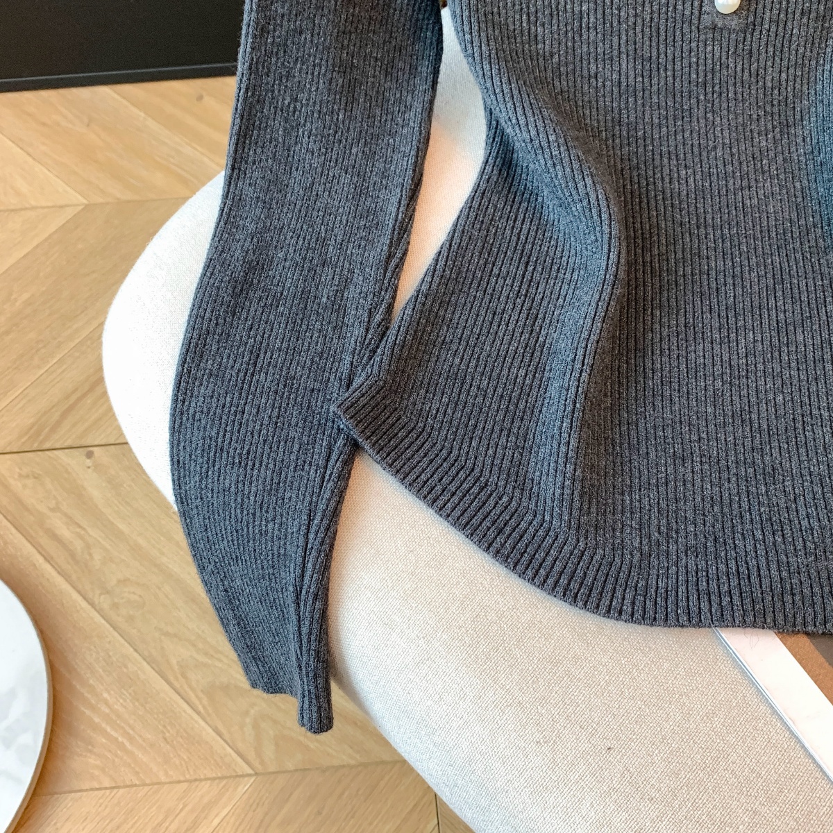 실사 V넥 니트 기본 셔츠 여성 인사이드 가져 가라. 가을 얇은 스타일 2025 새로운 디자인 센스 작은 대중 아니요 명중 섹션 맨위