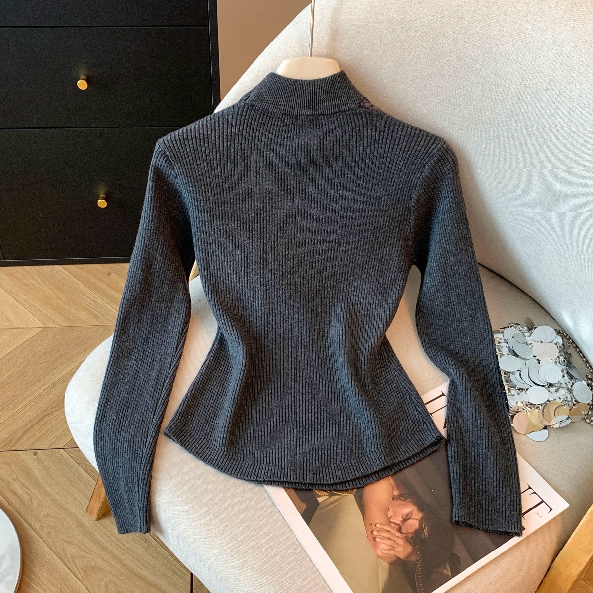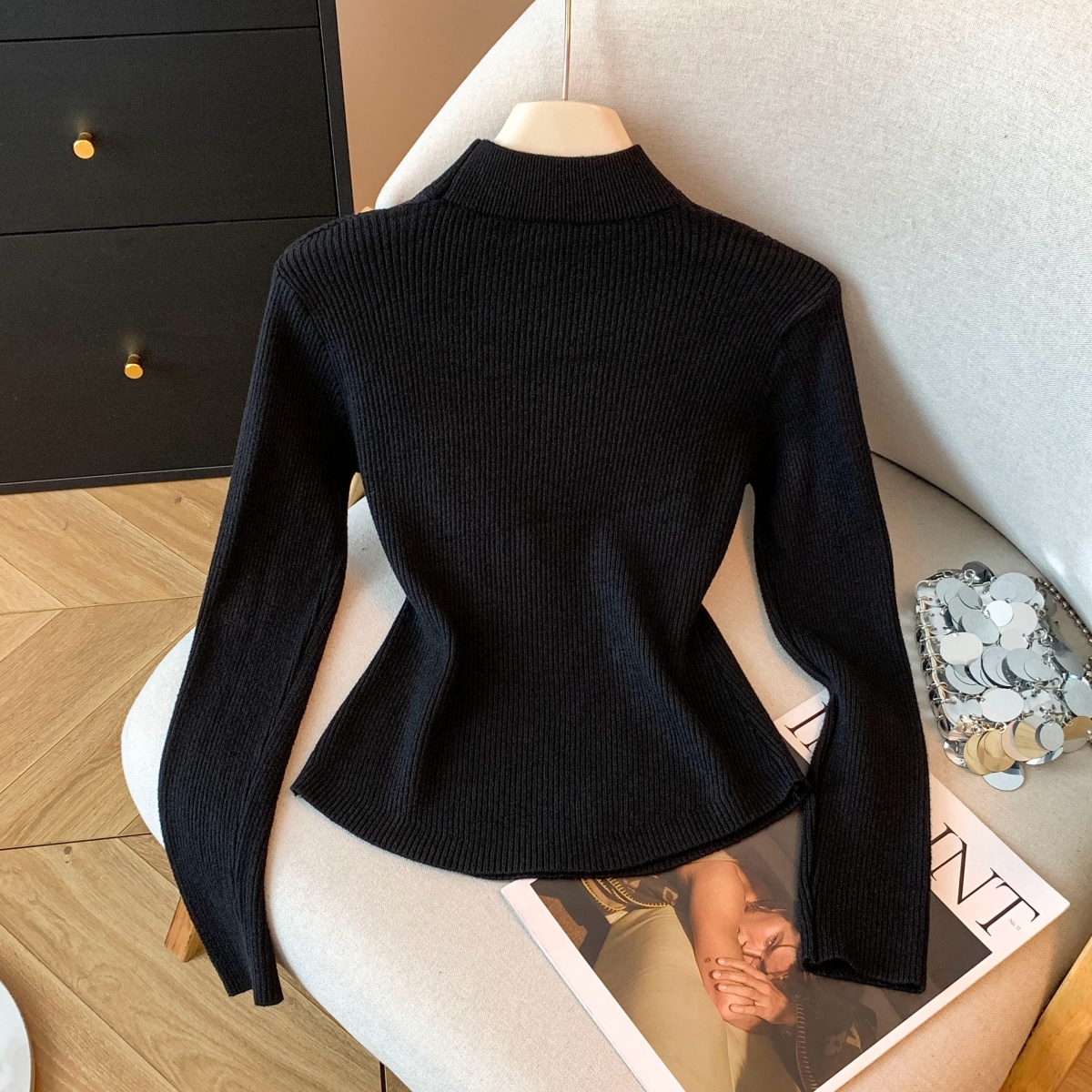 실사 라운드 넥 니트 기본 셔츠 여성 인사이드 가져 가라. 가을 얇은 스타일 2025 새로운 디자인 센스 작은 대중 작은 꽈배기 맨위