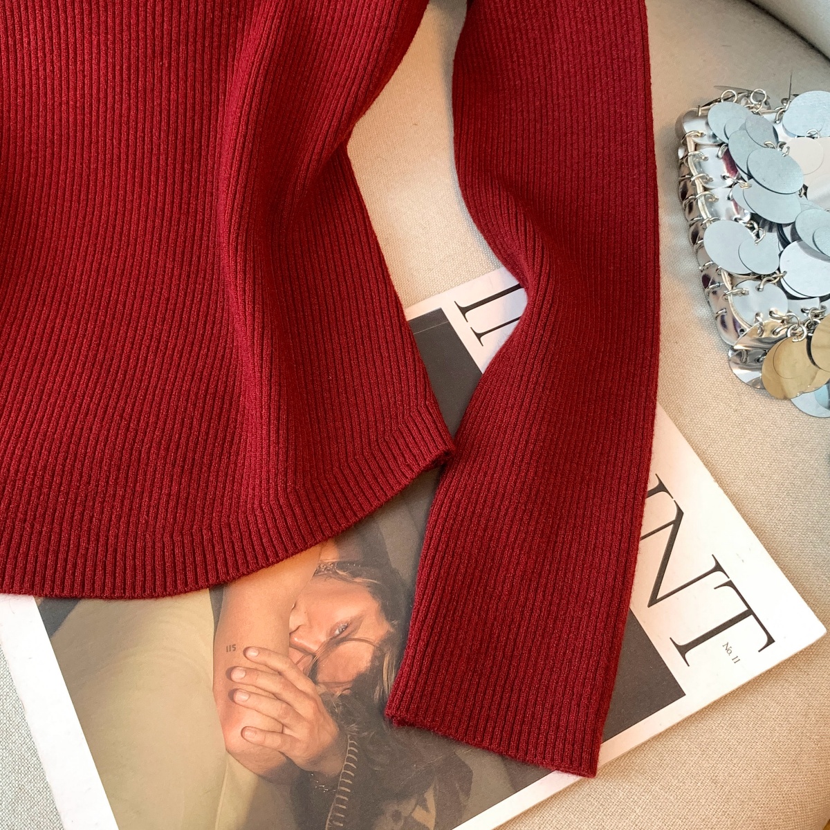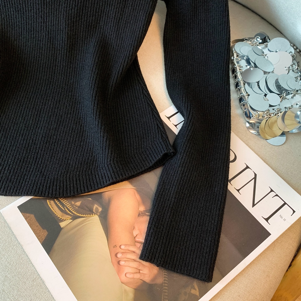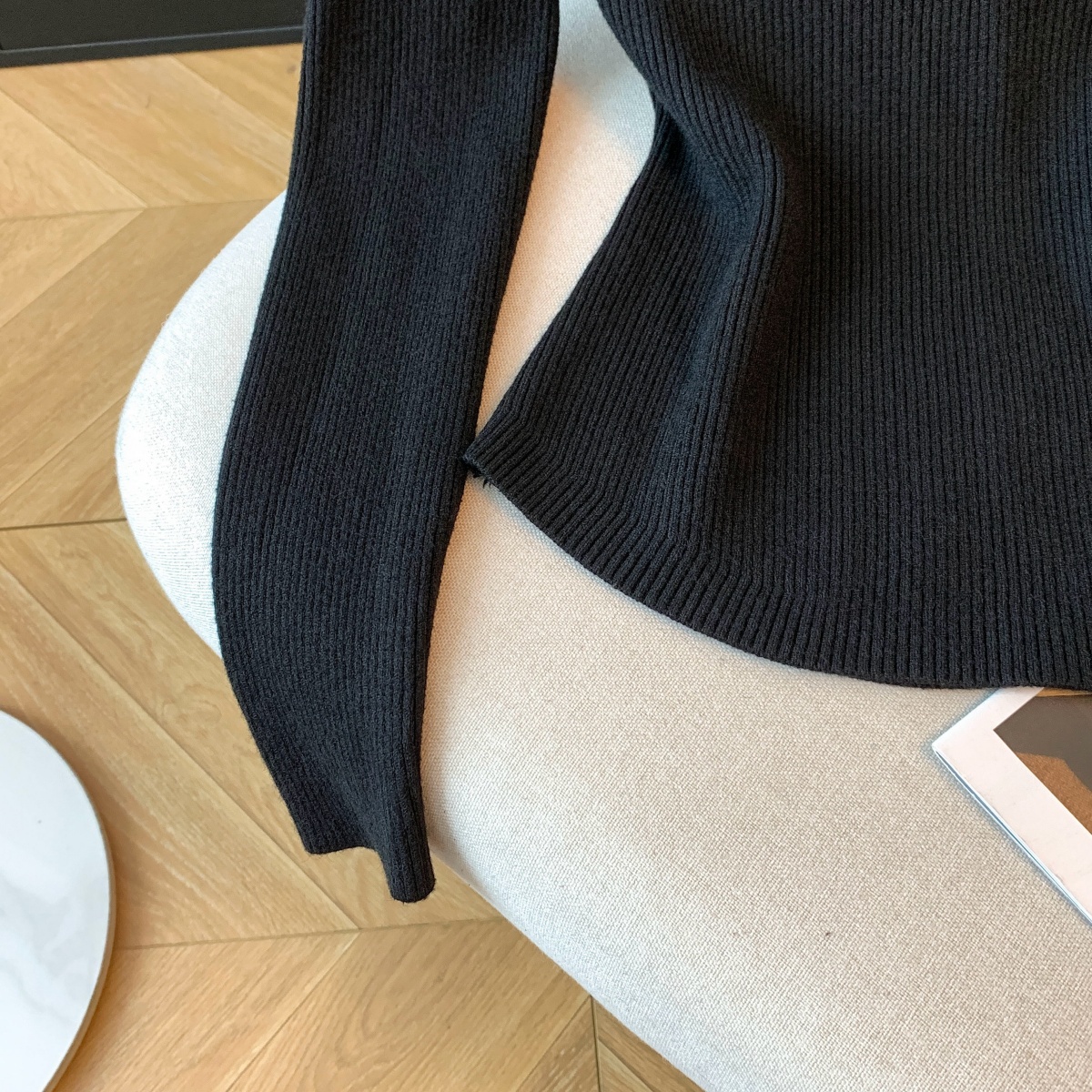 실사 2025 가을 겨울철 새로운 한국 스타일 인터넷 유명인 비스듬한 칼라 오프숄더 몸매 가꾸기 기본 셔츠 니트 스웨터 맨위