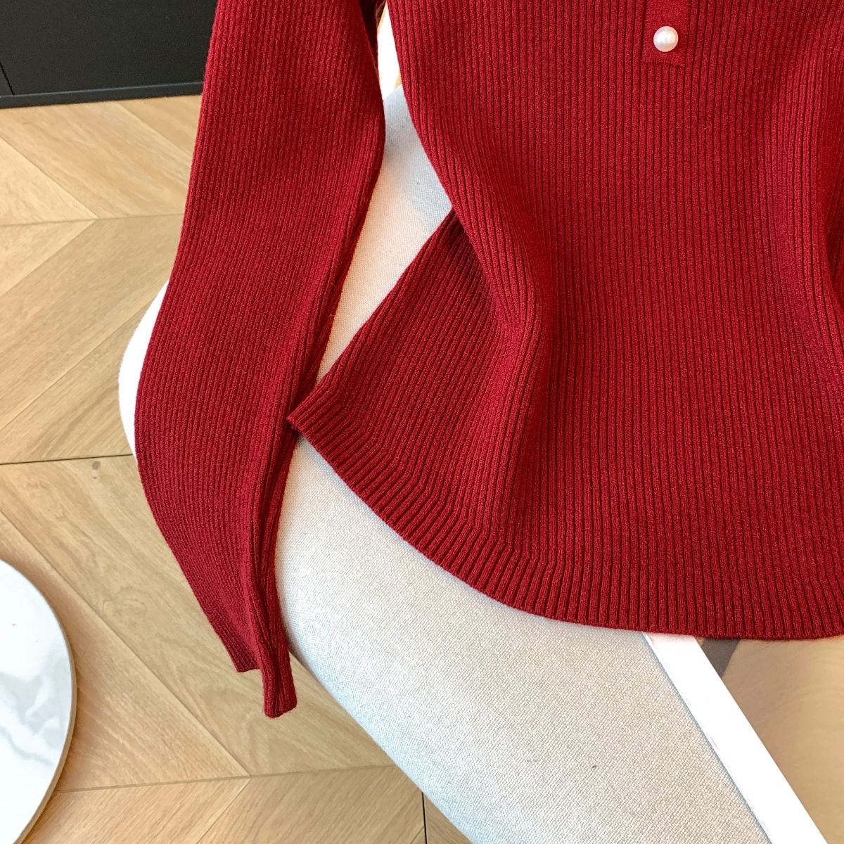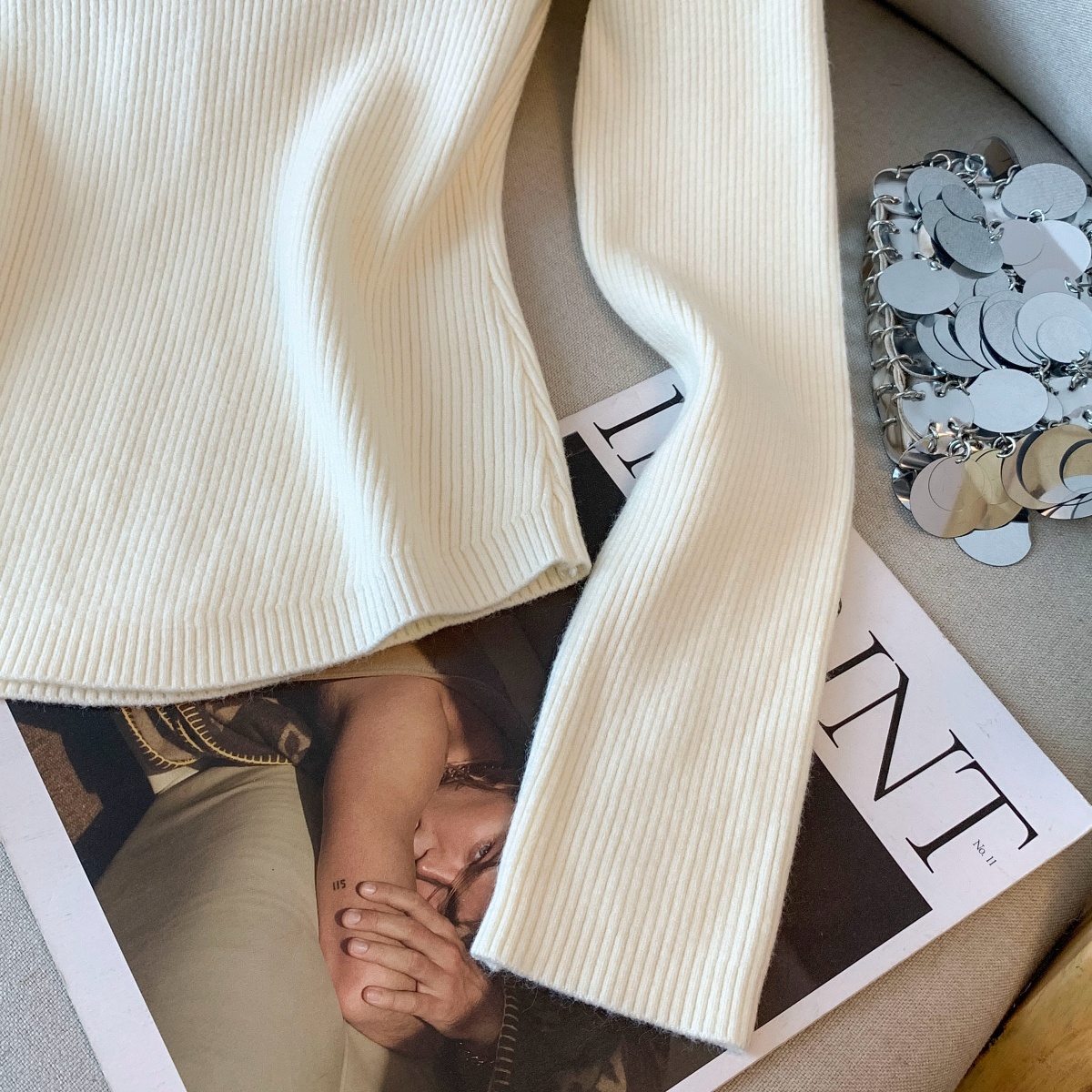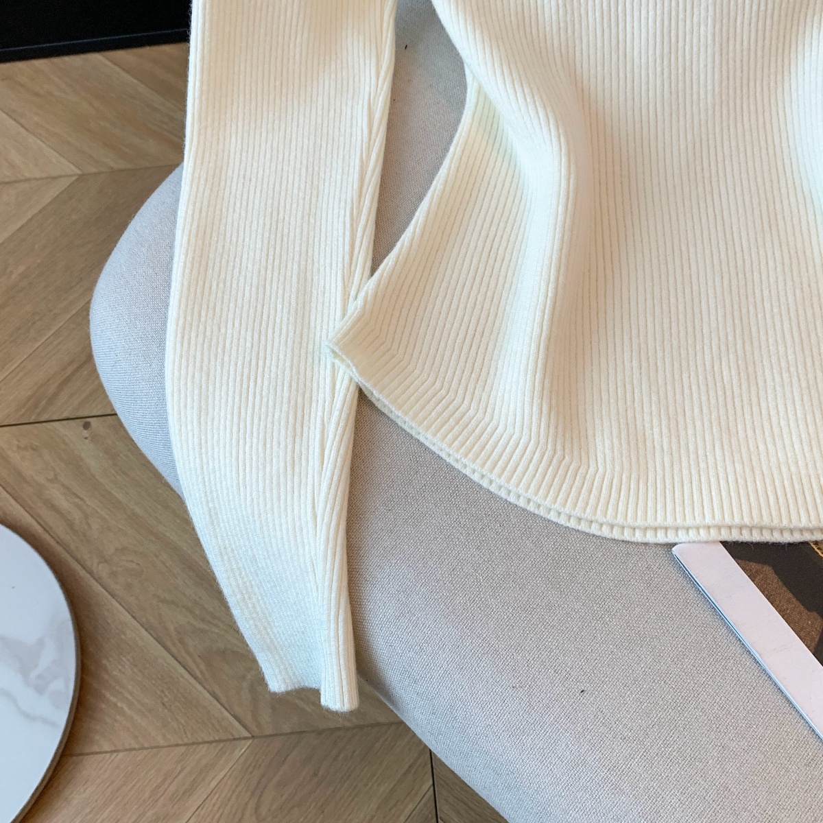 실사 2025 가을 겨울철 새로운 한국 스타일 인터넷 유명인 비스듬한 칼라 오프숄더 몸매 가꾸기 기본 셔츠 니트 스웨터 맨위