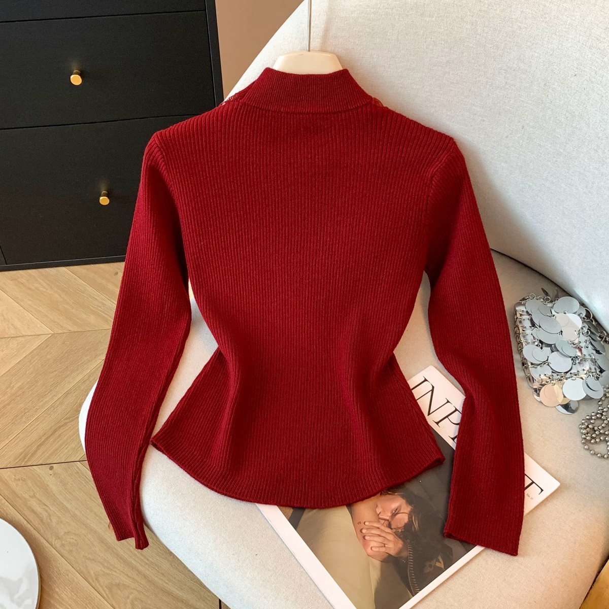 실사 아름다운 비즈 박기 나비 매듭 기본 셔츠 여성 겨울 프랑스식 나팔 소매 니트 인사이드 가져 가라. 몸매 가꾸기 품격 맨위