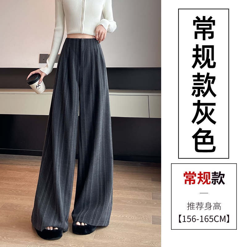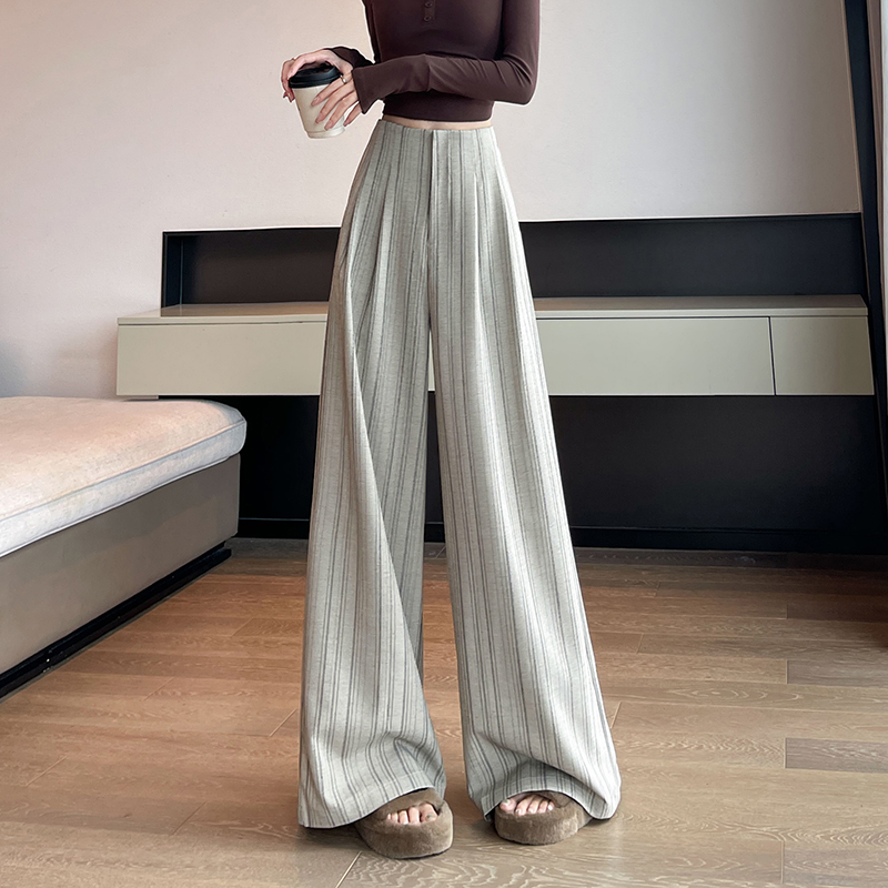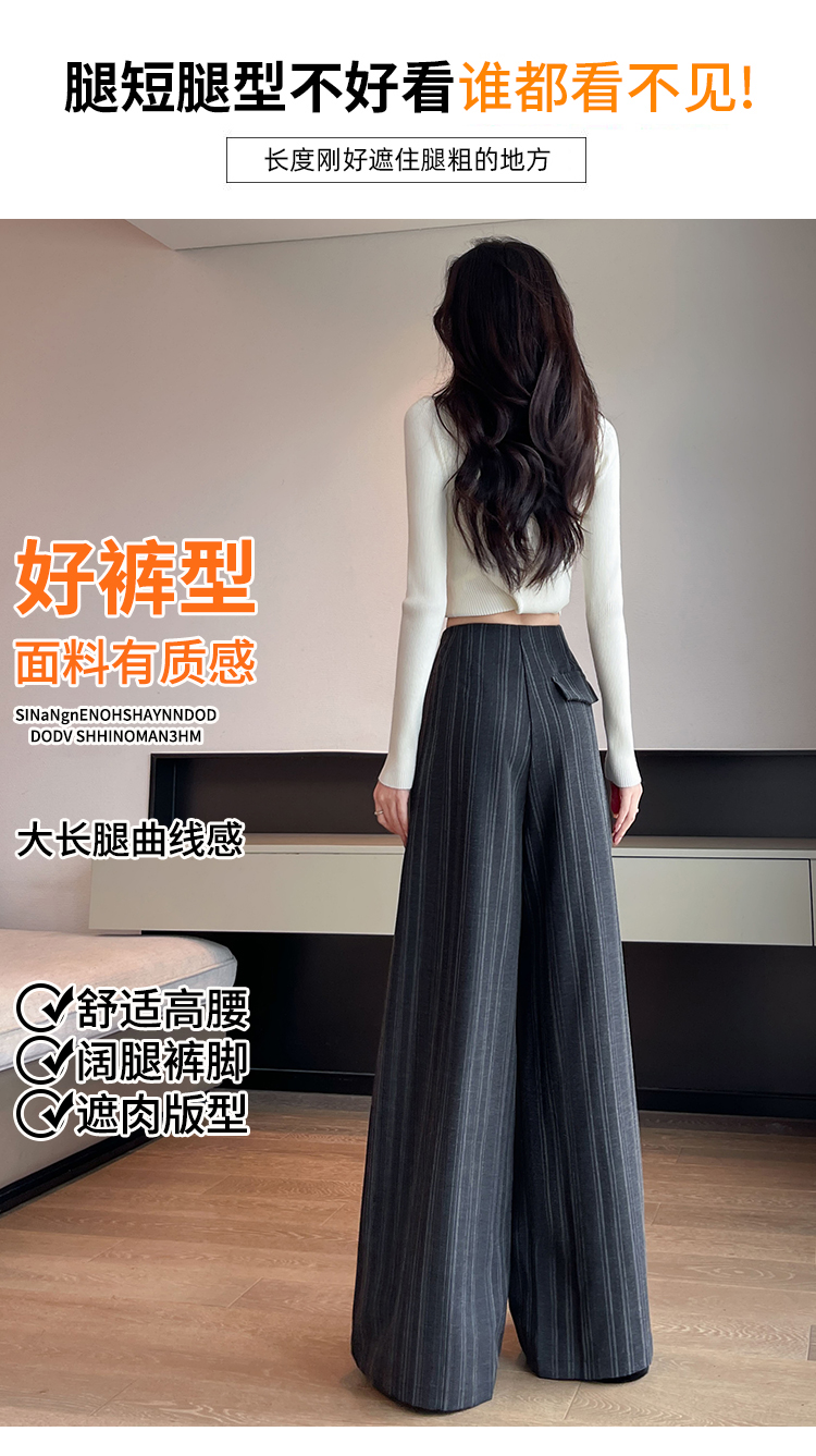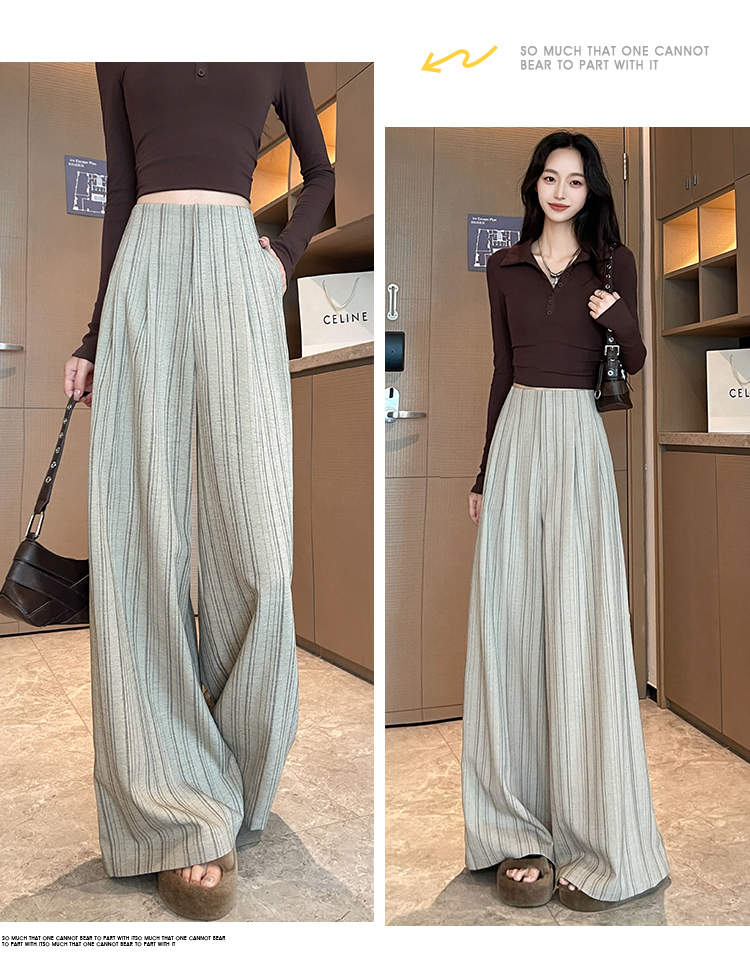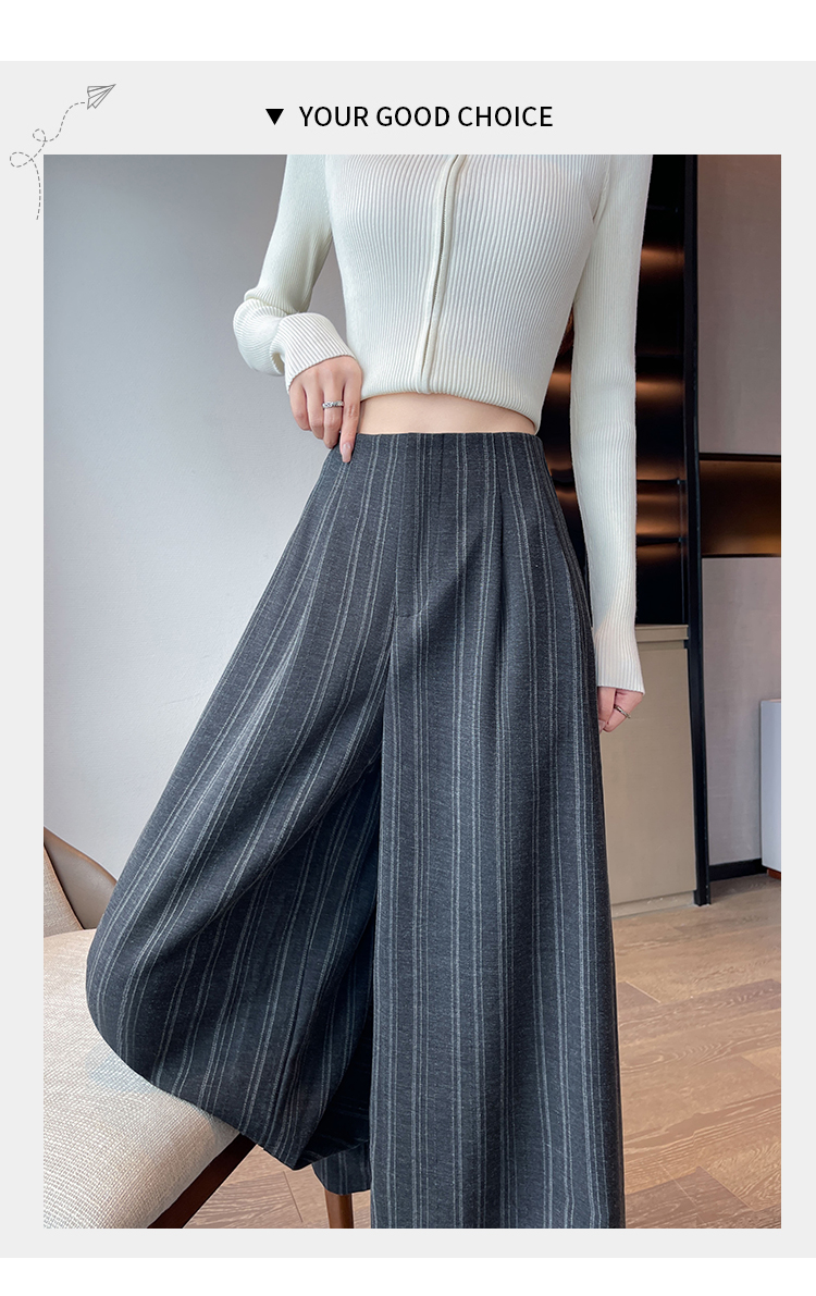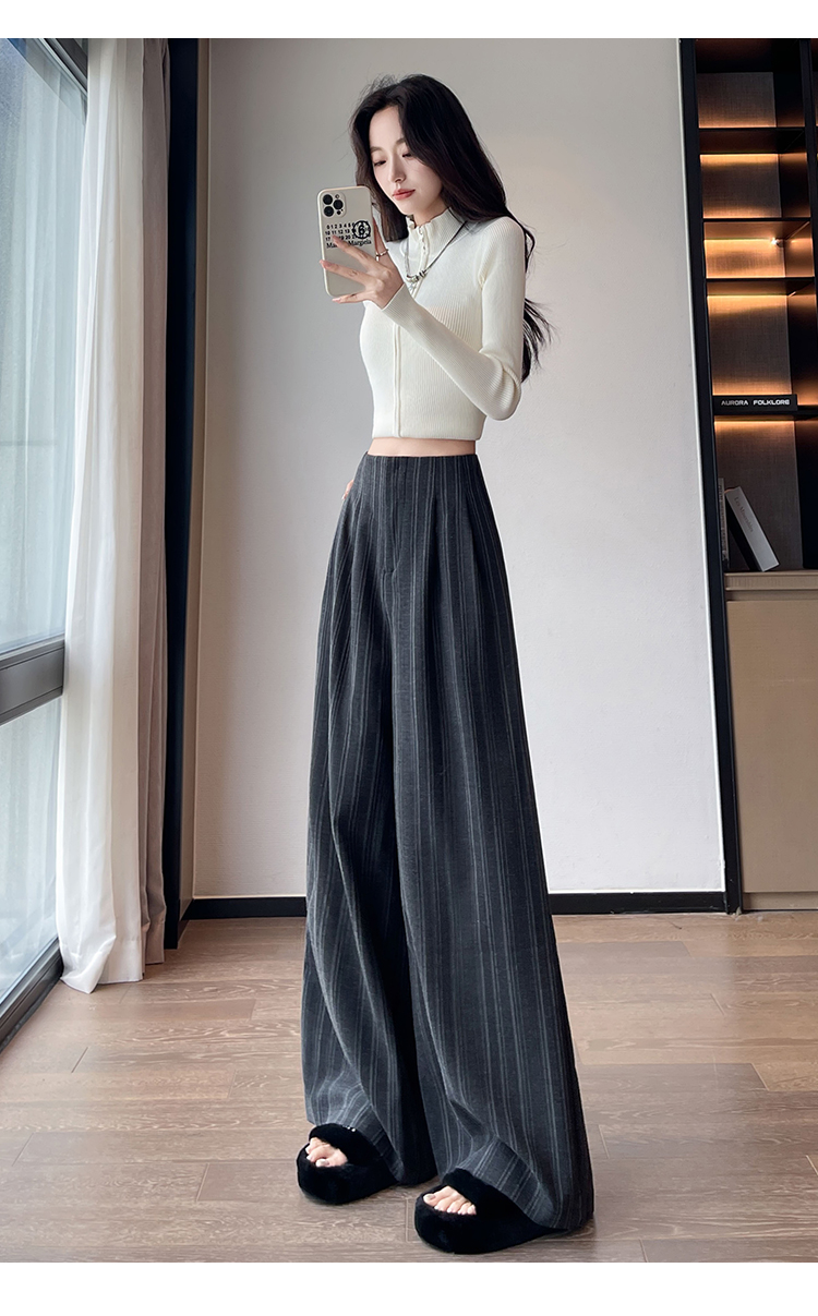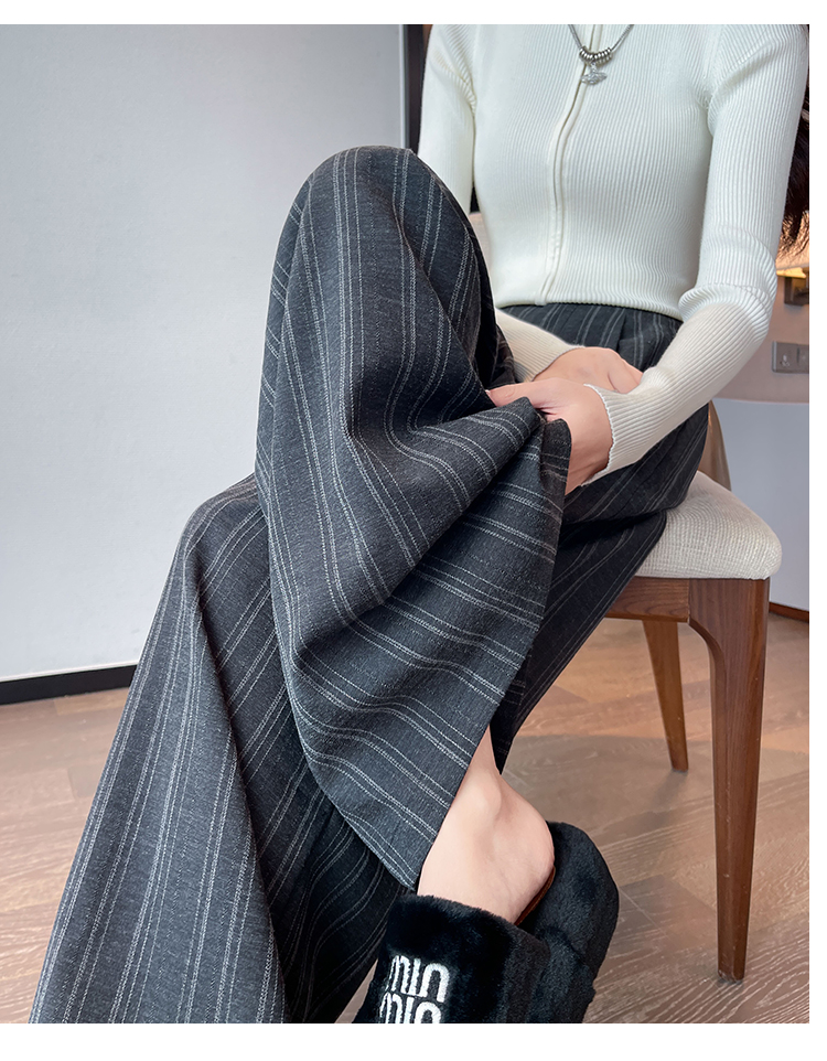 아메리칸 레트로 회색 스트라이프 와이드 레깅스 바지 하이웨이스트 루즈핏 슬림해 보이는 느긋한 바람 품격 출퇴근 도루 센스 캐주얼 바지