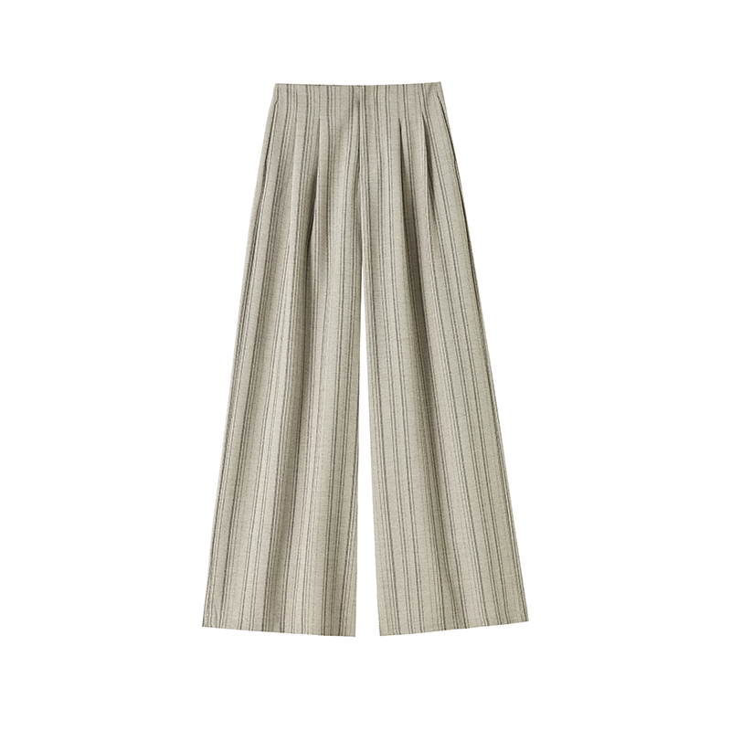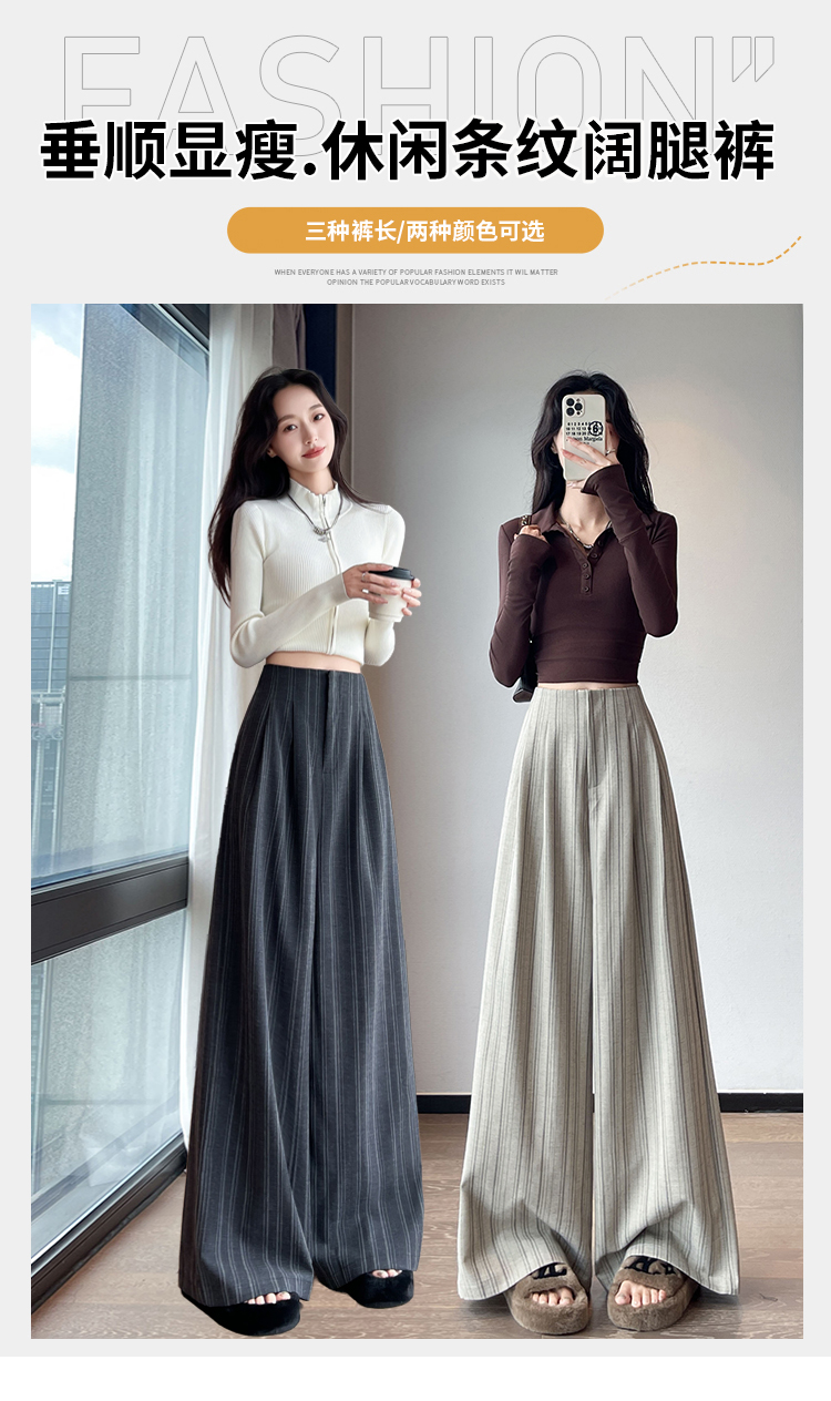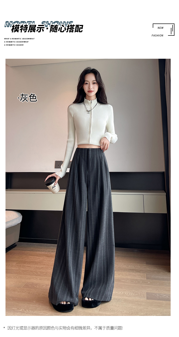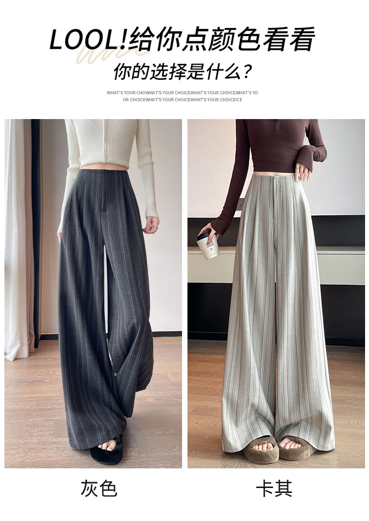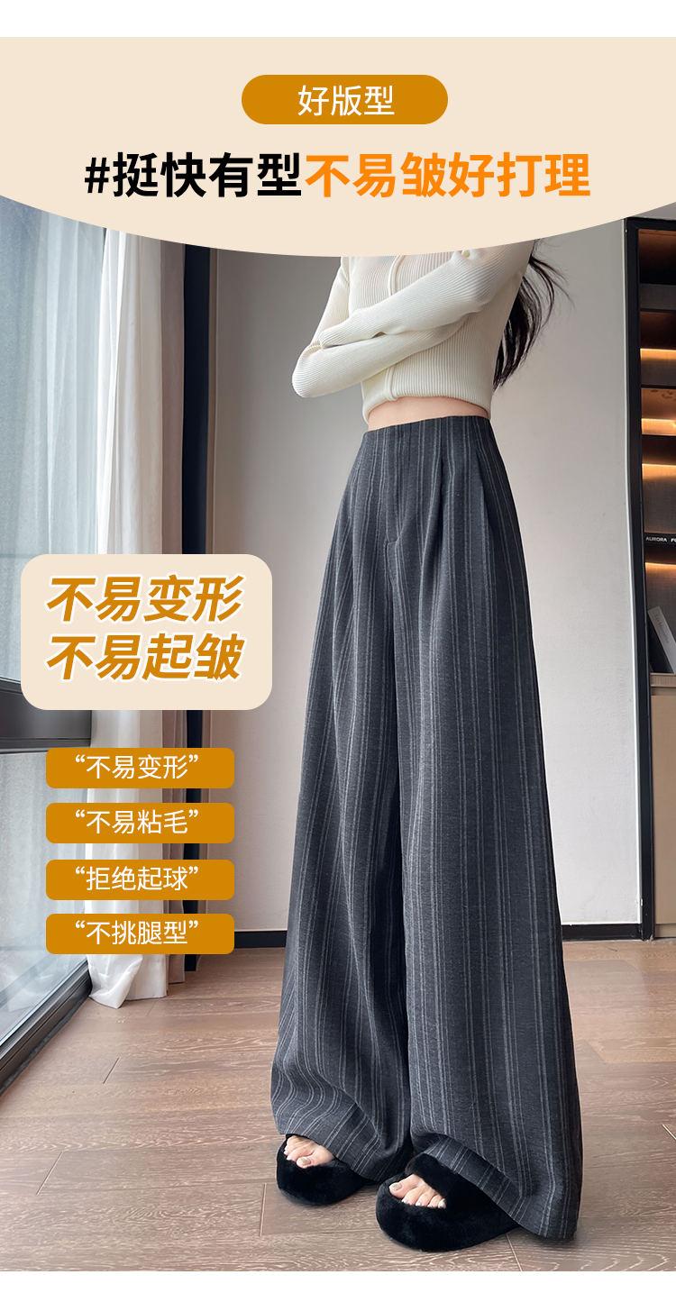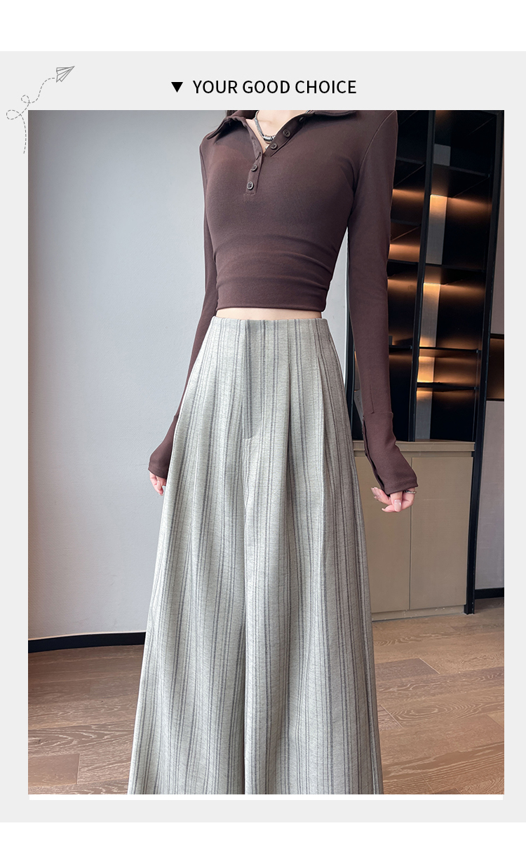 아메리칸 레트로 회색 스트라이프 와이드 레깅스 바지 하이웨이스트 루즈핏 슬림해 보이는 느긋한 바람 품격 출퇴근 도루 센스 캐주얼 바지