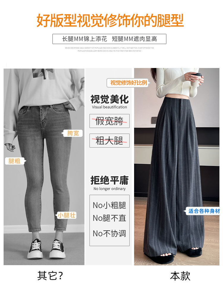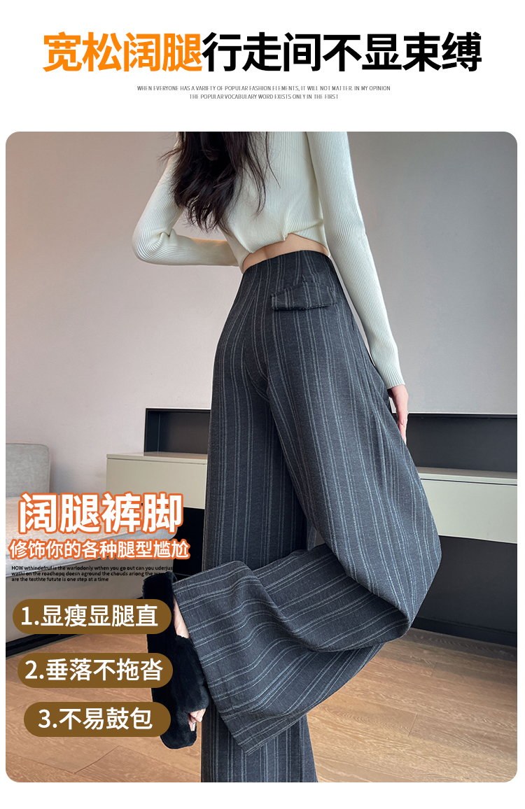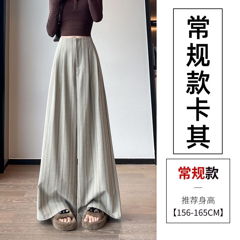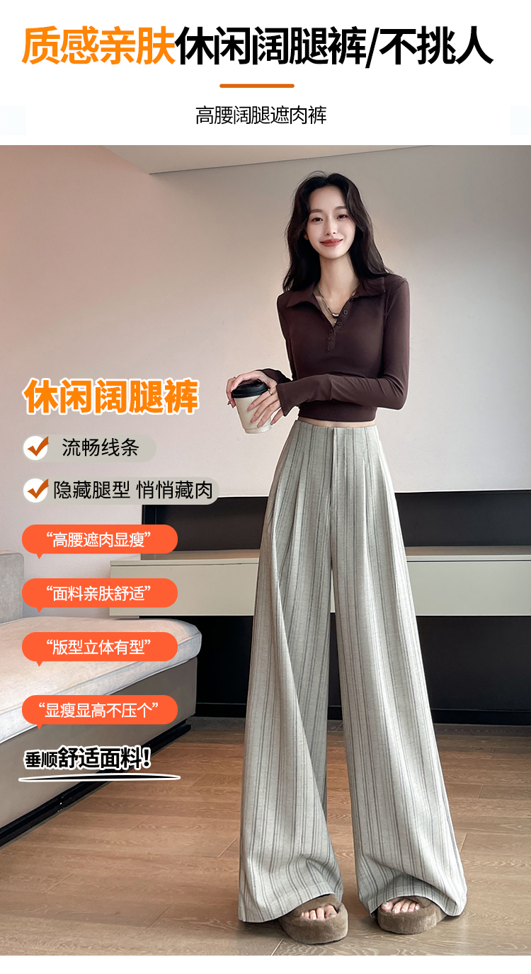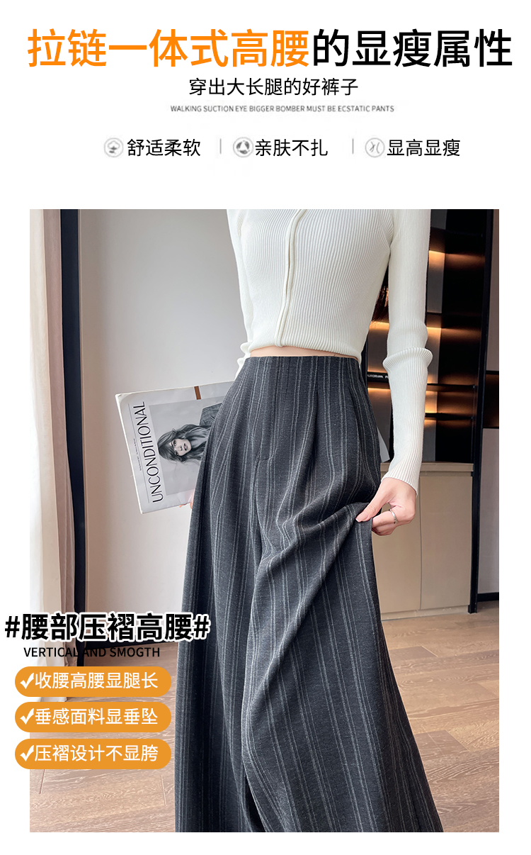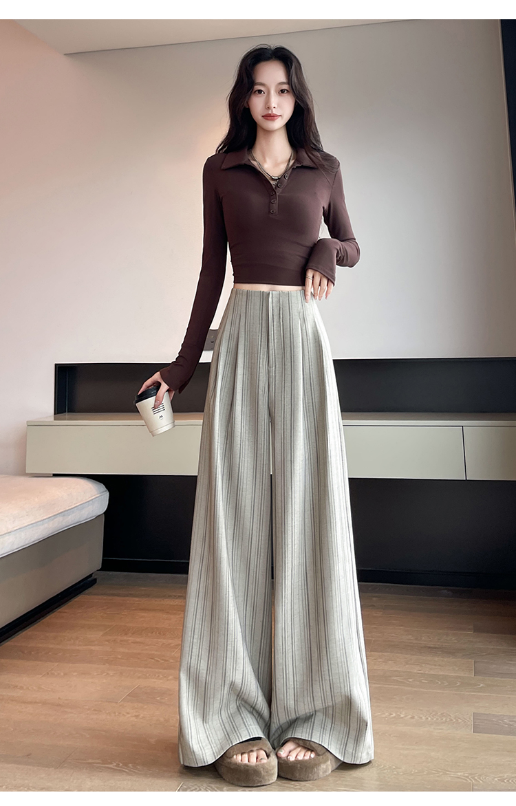 아메리칸 레트로 회색 스트라이프 와이드 레깅스 바지 하이웨이스트 루즈핏 슬림해 보이는 느긋한 바람 품격 출퇴근 도루 센스 캐주얼 바지