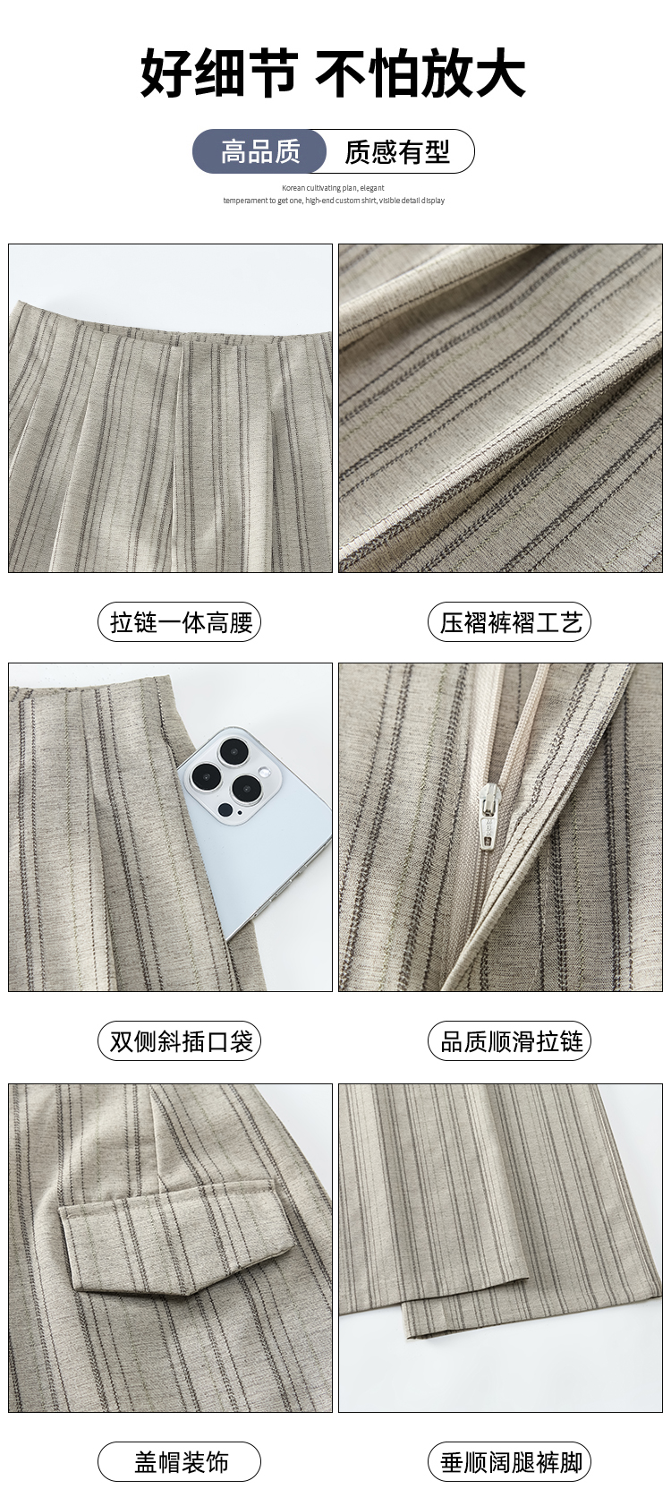 볼륨 측면 정장 와이드 레깅스 바지 2026 봄 여름 새로운 하이웨이스트 스트레이트 8 점 작은 키 뒤집다 측면 캐주얼 바지