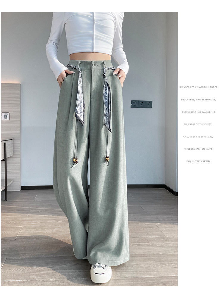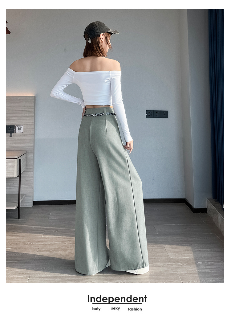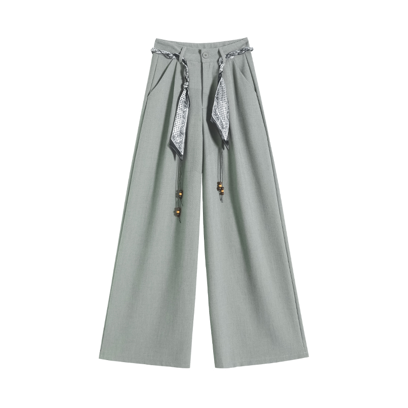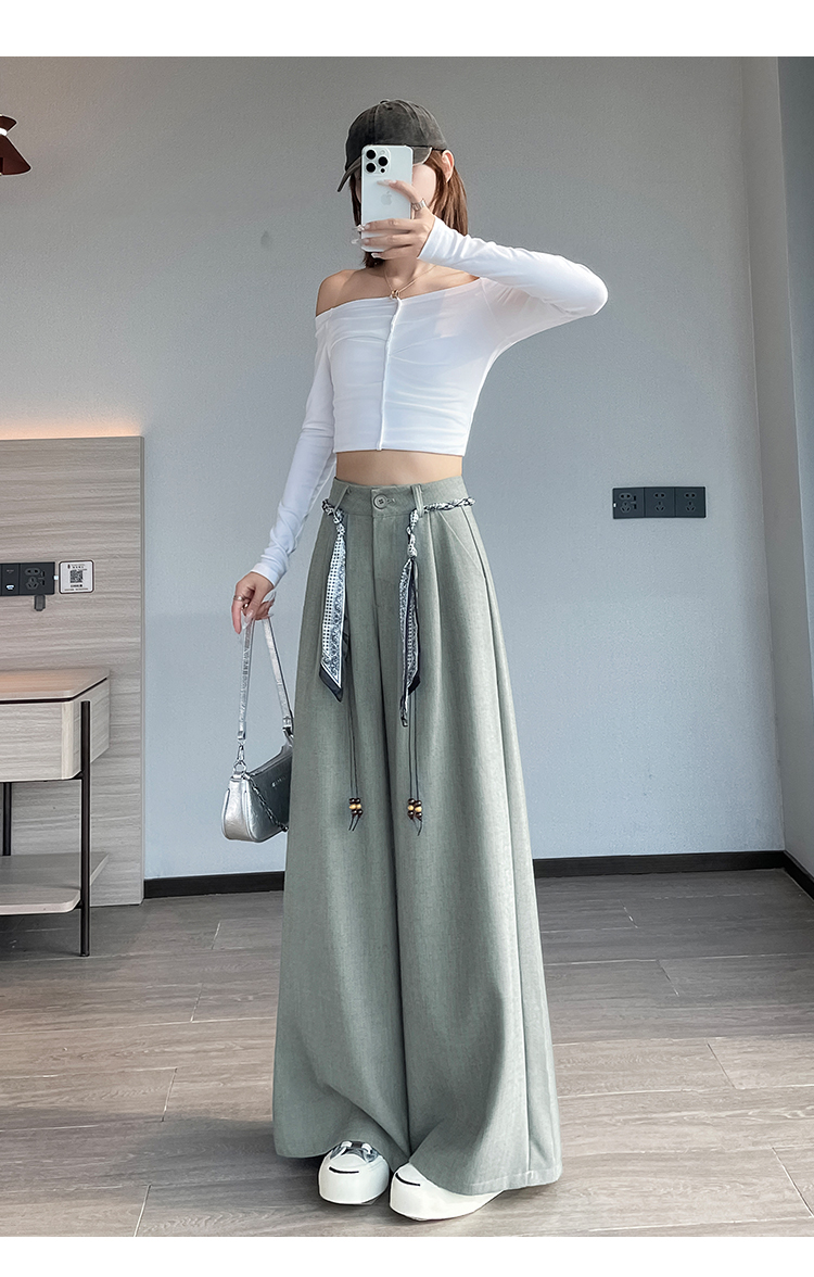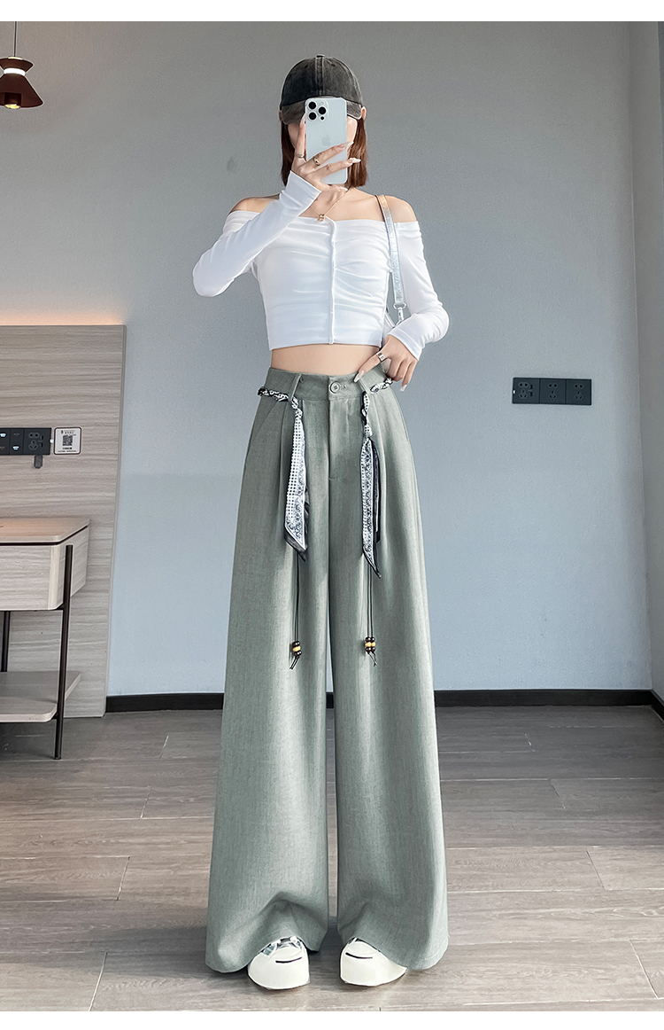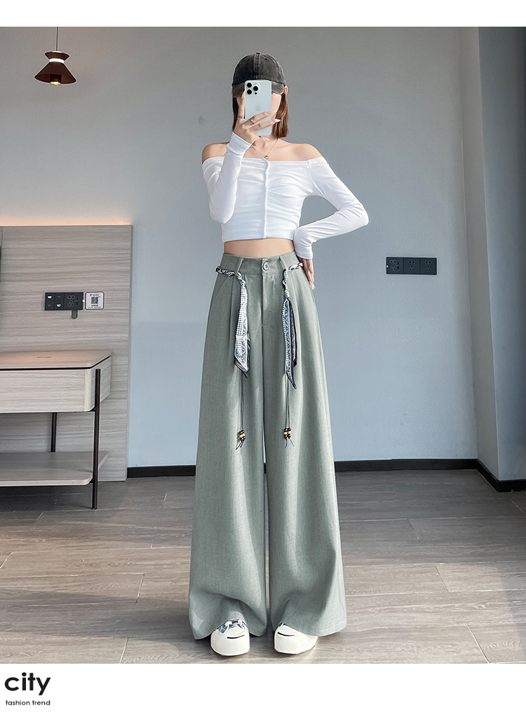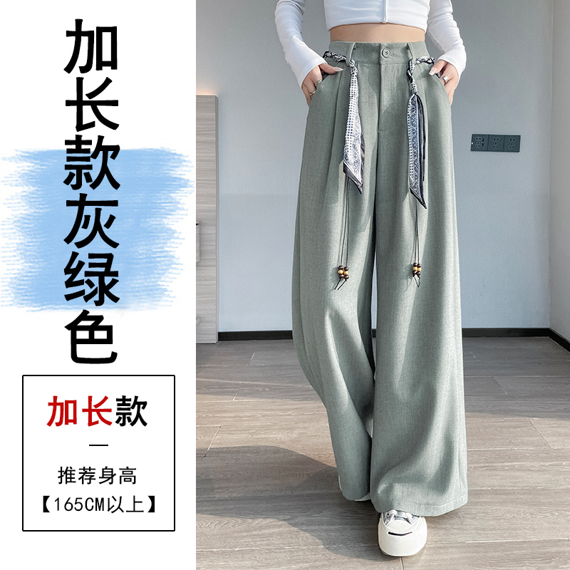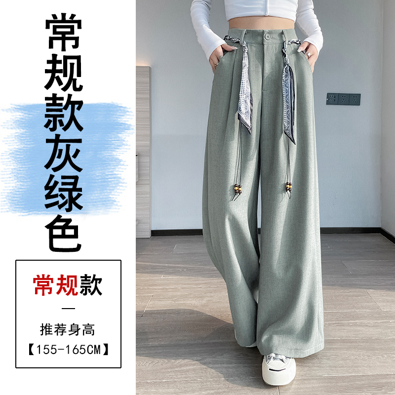 회색 녹색 넓은 다리 정장 바지 여성 2026 봄 새로운 하이웨이스트 슬림해 보이는 도루 센스 짜임 벨트 스트레이트 캐주얼 바지