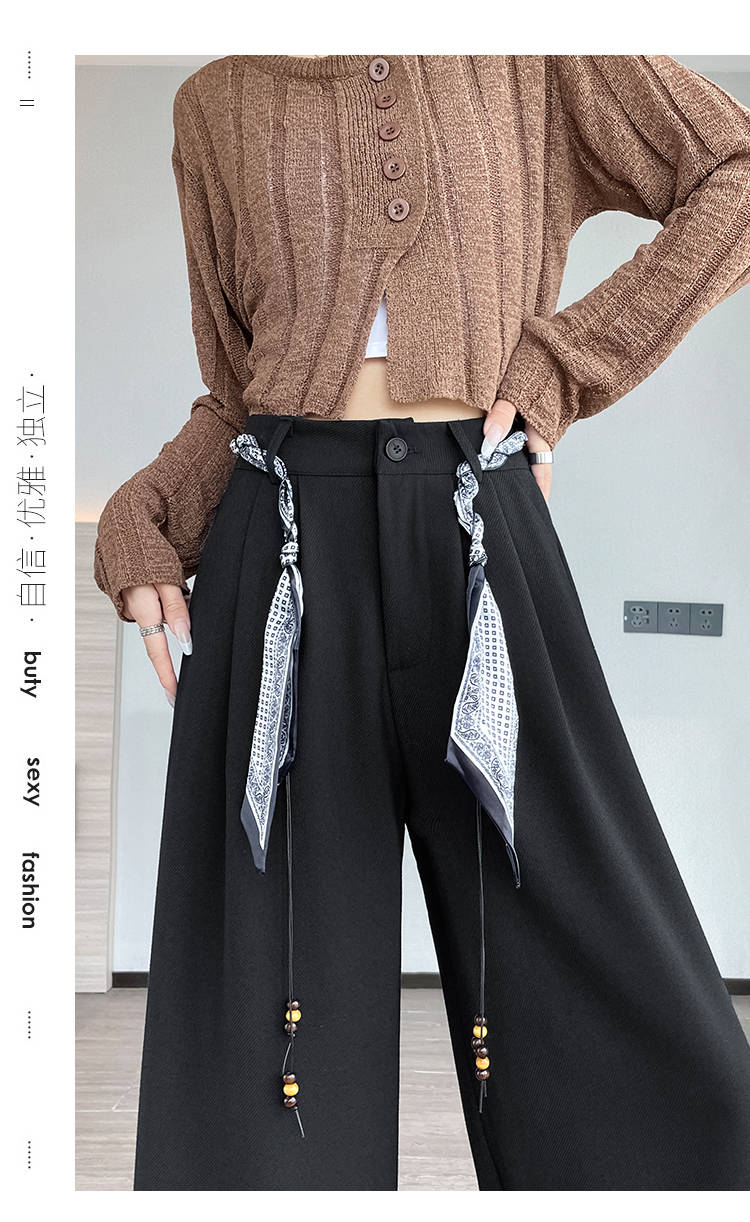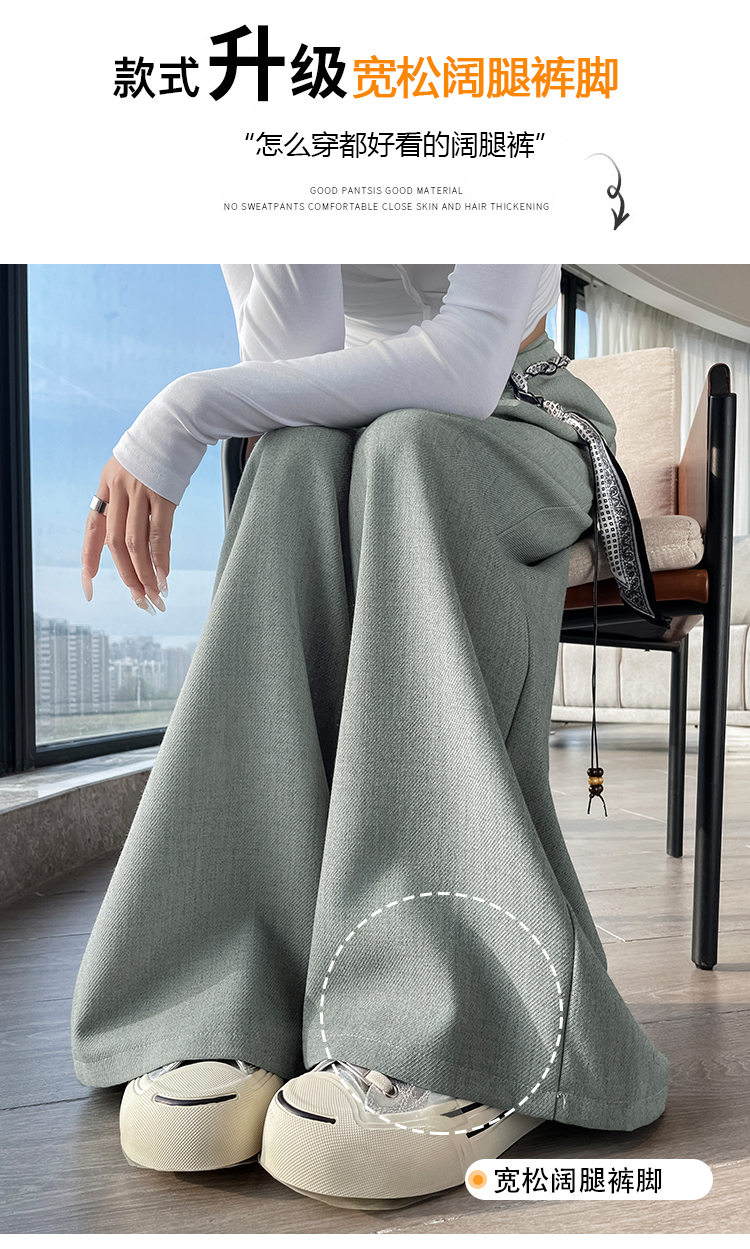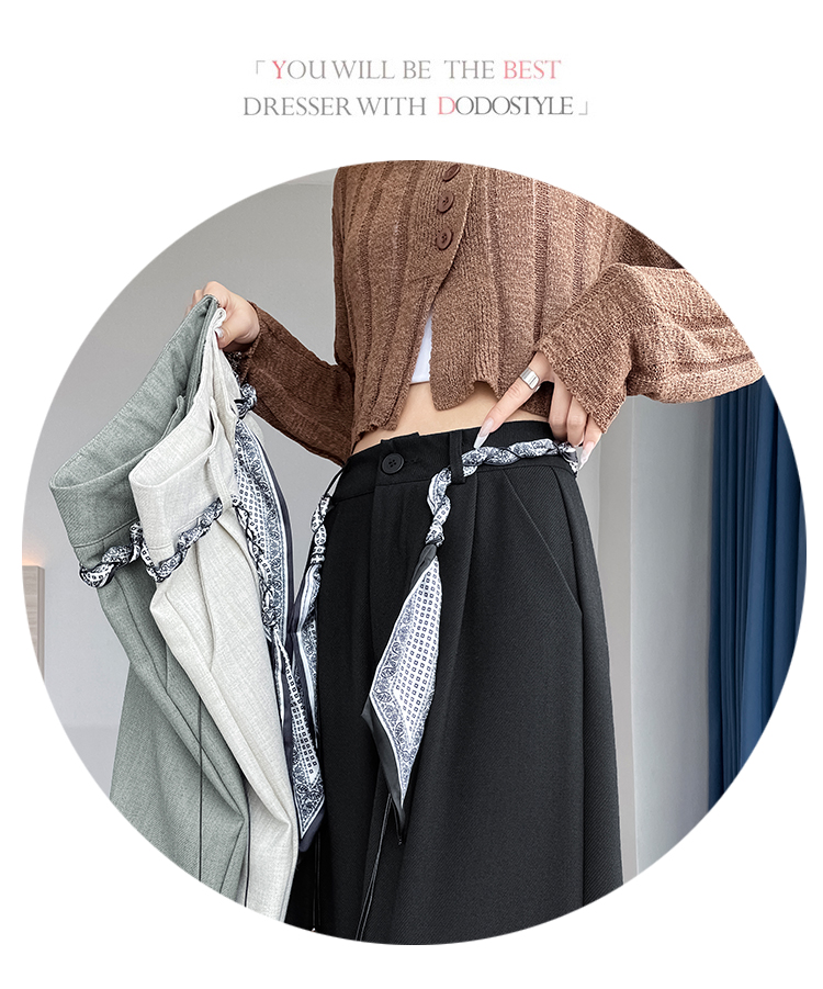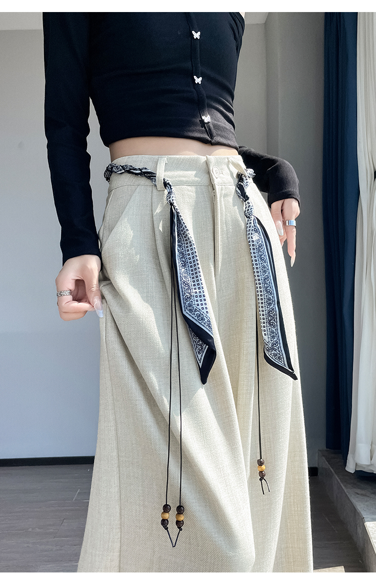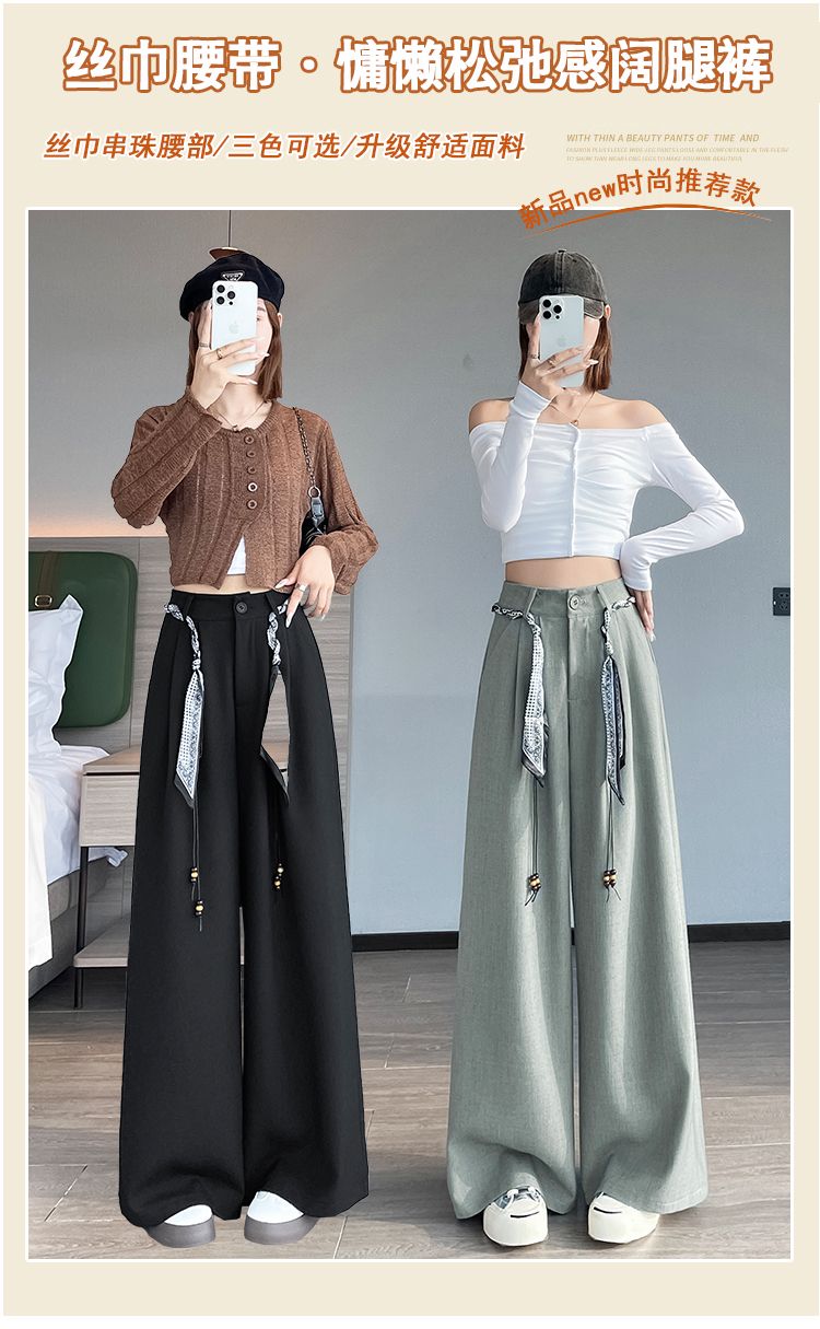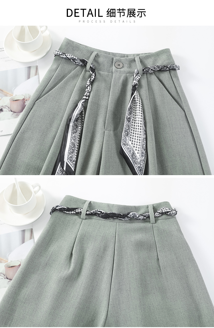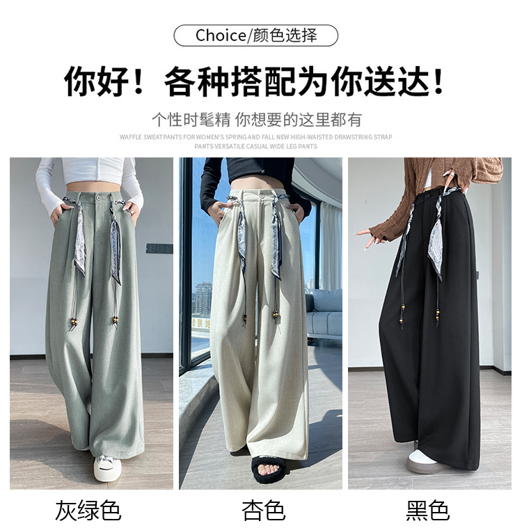 회색 녹색 넓은 다리 정장 바지 여성 2026 봄 새로운 하이웨이스트 슬림해 보이는 도루 센스 짜임 벨트 스트레이트 캐주얼 바지