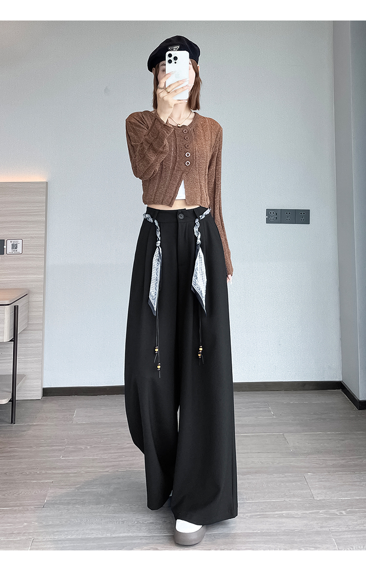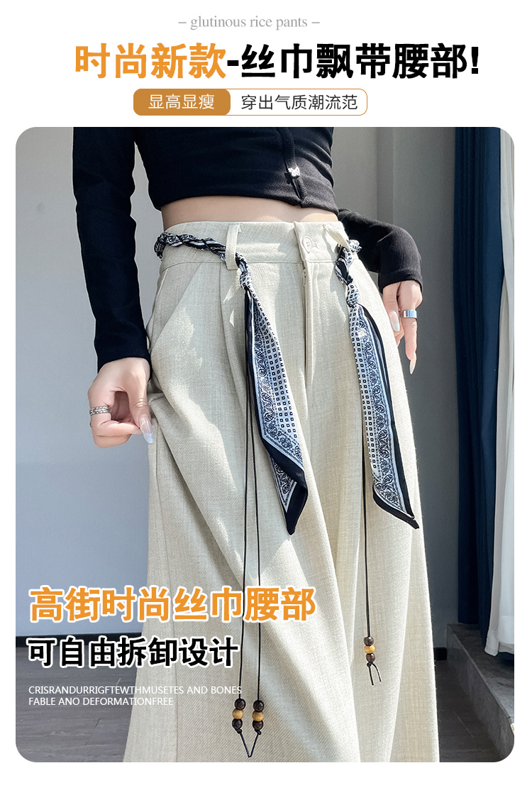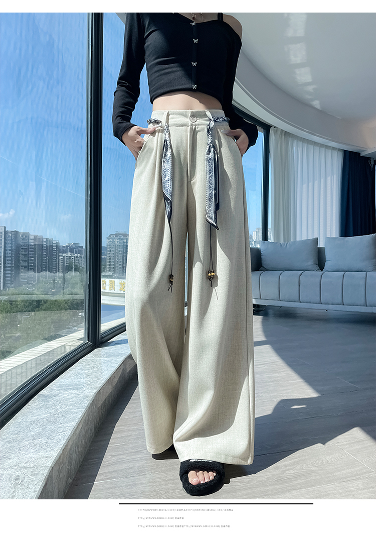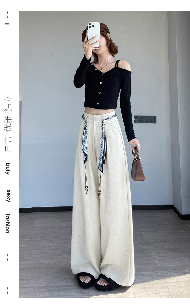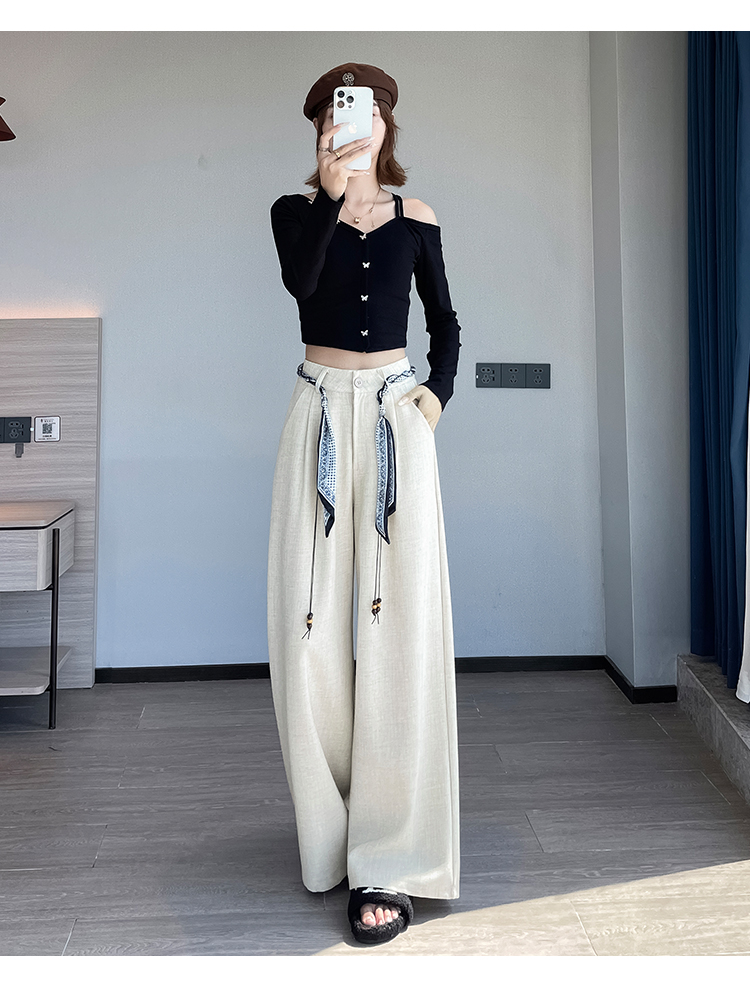 실사 2026 여름 얇은 스타일 주간 실크 면 린넨 와이드 레그 팬츠 레이스 스트랩 하이웨이스트 도루 가을 센스 바닥 청소 바지 여성