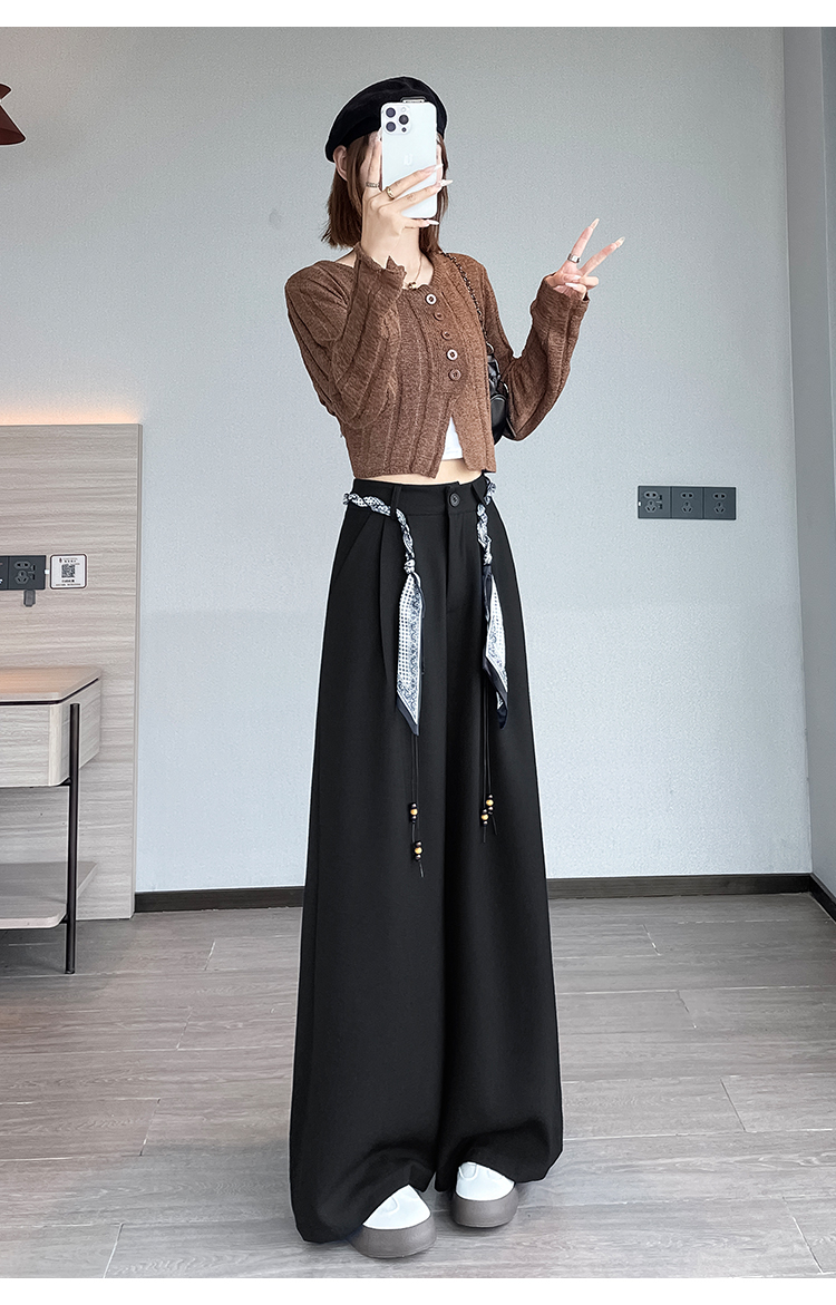 실사 2026 여름 새로운 핫픽스 정장 와이드 레그 팬츠 느긋한 하이웨이스트 도루 센스 캐주얼 스트레이트 바닥 청소 긴 바지 여성