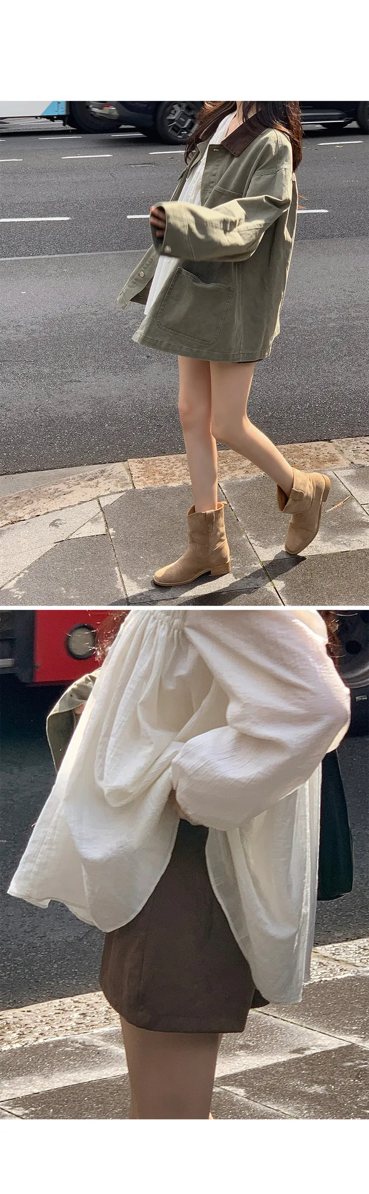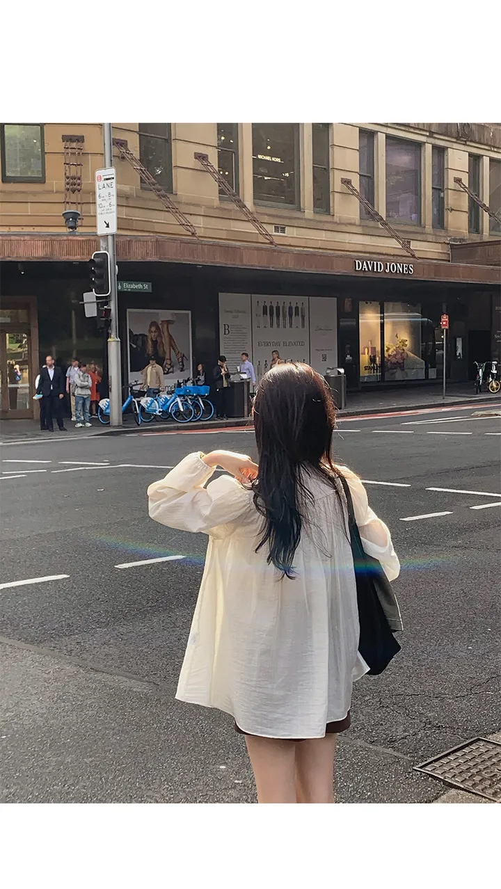 있음 선적 한국 chic 품격 미니멀리즘 광장 칼라 레이스업 허리 수축 셔츠